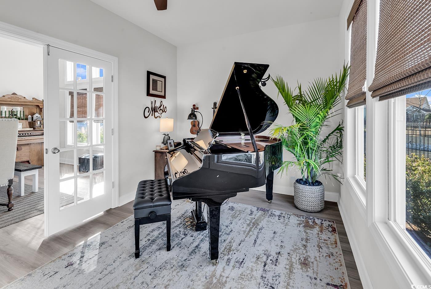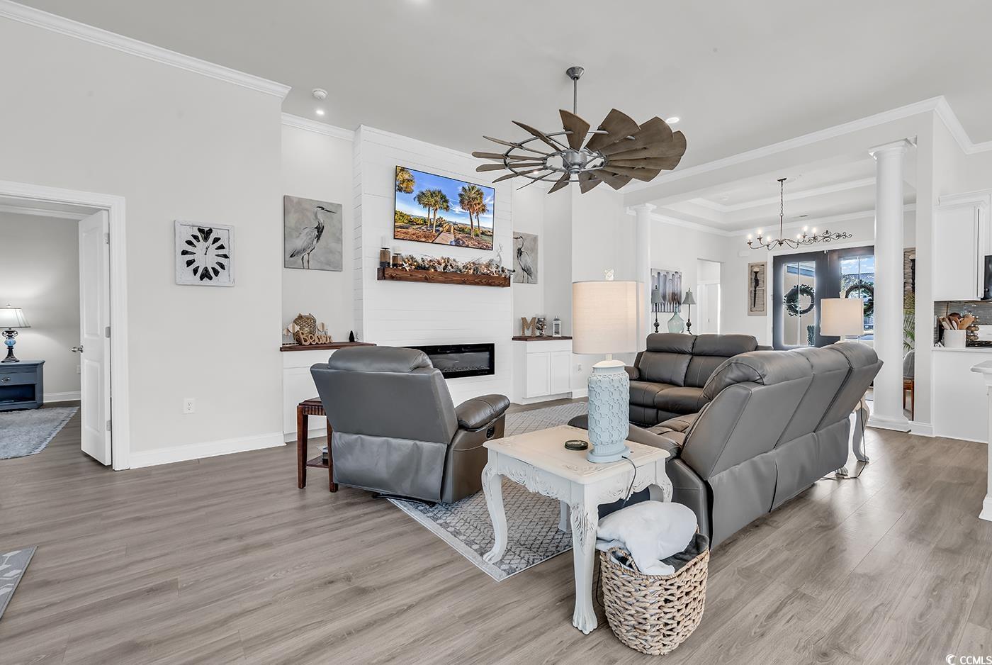 Welcome to Bright Lakes, a gated natural gas community in the heart of Carolina Forest. This single-level Smart Home offers an open, modern layout with upscale finishes throughout, perfect for families or those who work from home. Features include double glass entry doors, custom lighting, Luxury Vinyl Plank flooring, and a sleek fireplace with interchangeable lighting and shiplap surround. The chef-inspired kitchen boasts quartz countertops, tiled backsplash, and an oversized island. A bright flex space provides ideal home office or bonus room options. The split floor plan places the primary suite privately at the rear, featuring tray ceilings, a spacious walk-in closet, and an oversized tiled shower. Enjoy outdoor living on the screened porch leading to a covered patio and grilling area. Side-load garage with extended driveway offers excellent curb appeal and ample parking. Community amenities include a large center, pool, and kids park. Convenient to shopping, dining, hospitals, and miles of walking paths.