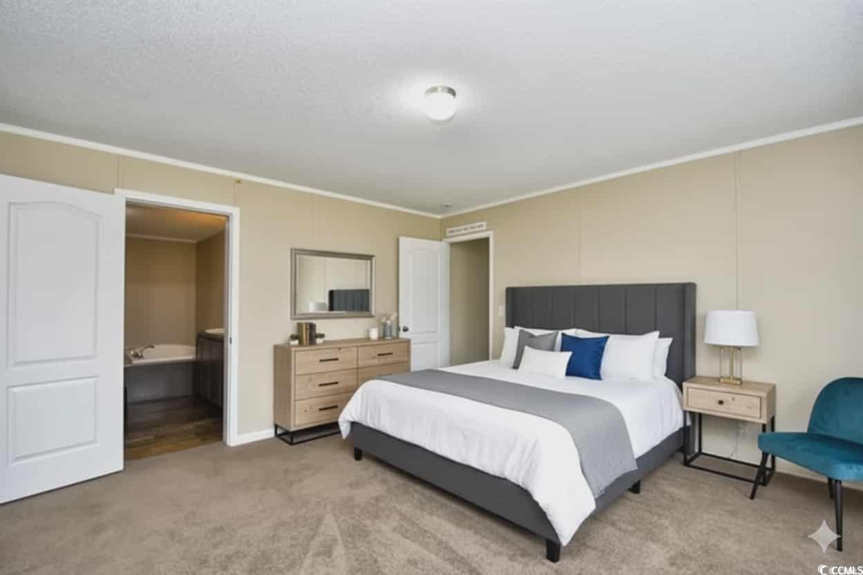 This property is now available at a reduced price, offering excellent value for buyers looking to make a smart investment and take advantage of the opportunity to customize and add your personal touch. Nestled in a prime location just blocks from the beautiful sandy beach, this home is all about convenience and coastal charm. Located in a golf cart-friendly community, this spacious 5-bedroom, 2-bathroom home has never been rented or lived in full-time, making it a rare find. Designed for easy one-level living, the split floor plan offers privacy and functionality. Step onto the gazebo-style front porch and into the open-concept main living area, where the kitchen, dining, and living spaces flow seamlessly, perfect for entertaining or relaxing. The expansive primary suite features its own sitting room, a large ensuite bathroom, and a walk-in closet. The community features low HOA fees and offers exceptional amenities including a pool, clubhouse, and a dedicated storage lot in the back for RVs, trailers, boats, and jet skis, at no extra charge. Timber Ridge Village is located just minutes from the ocean and close to all that North Myrtle Beach and the surrounding area has to offer. Here you will find endless choices of activities, including golf, restaurants, shopping and entertainment for the whole family! This is beachside living at its best!