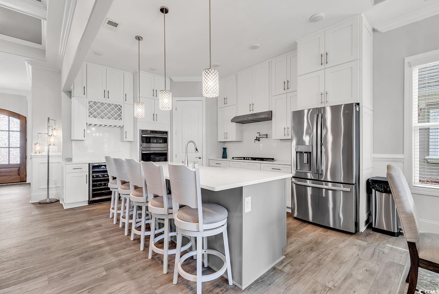 This is a truly exceptional home with a lot to offer! Key Features: Immaculately Kept and Cared For: Suggests pride of ownership and excellent condition. Picturesque Curb Appeal: Creates a strong first impression. Wonderful Outdoor Kitchen and Living Area: Perfect for entertaining and enjoying the outdoors. Includes a built-in grill, sink, and outdoor fridge on the screened porch. Impressive Lighting: Abundant natural light and well-chosen fixtures enhance the ambiance. Captivating Kitchen: Located off the entrance, suggesting it's a focal point. Custom Coiffured Ceiling in the Family Room: Adds architectural interest and sophistication. Rare Large Ceiling Fan: A unique and potentially striking feature in the family room. Large Primary Bedroom: Offers ample space and comfort. Double Walk-In Closets in Primary Bedroom: Provides generous storage. Spa-Like Bathroom in Primary Suite: Suggests a luxurious and relaxing retreat. 3-Bedroom Ensuites on the Main Level: Offers privacy and convenience for family or guests. Upstairs Ensuite Over the Garage: Provides a separate and private space. Special "Playroom" Upstairs: Versatile space for children or adults. Oversized 3-Car Garage: Offers plenty of parking and storage. Screened Porch Overlooking a Well-Kept Pond: Provides a serene outdoor living space with beautiful views. Numerous Extras: Underscores the value and unique aspects of the home that need to be seen to be fully appreciated. Overall Impression: This home is a high-quality property designed for comfortable living and entertaining. The combination of well-appointed interiors, a fantastic outdoor space, and unique features makes it stand out. The mention of "so many extras" parlays that the attention to detail and thoughtful additions throughout the home are significant selling points. To truly appreciate this "one-of-a-kind masterpiece," as the description states, a personal viewing would indeed be essential to experience all the details and value it offers
