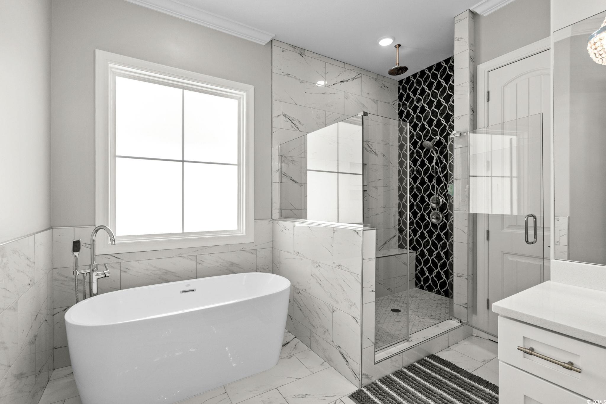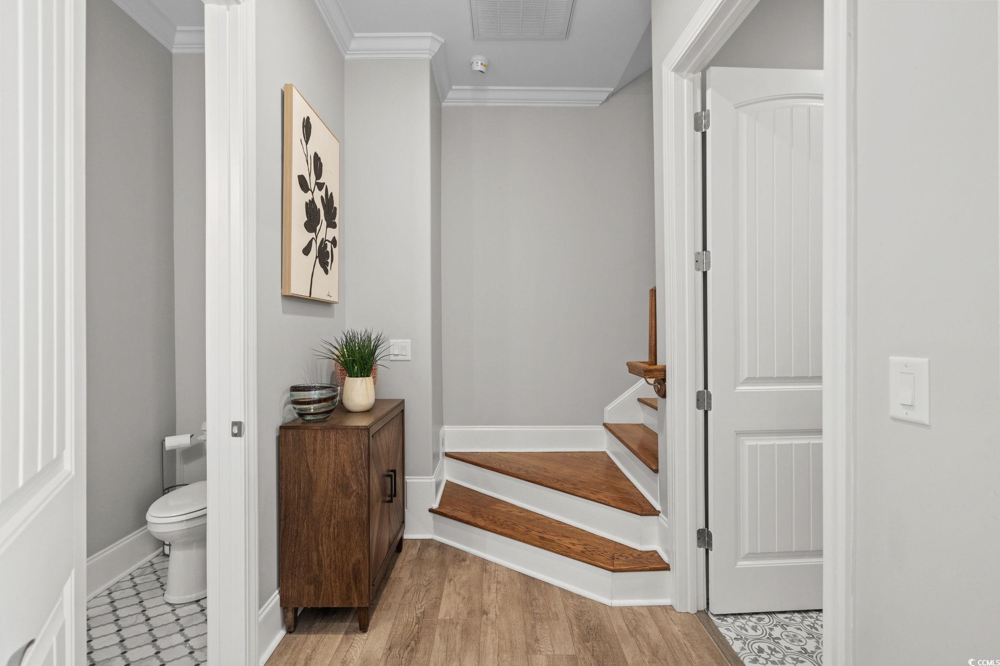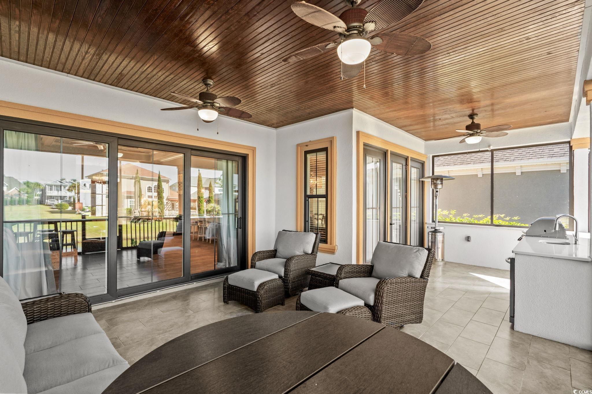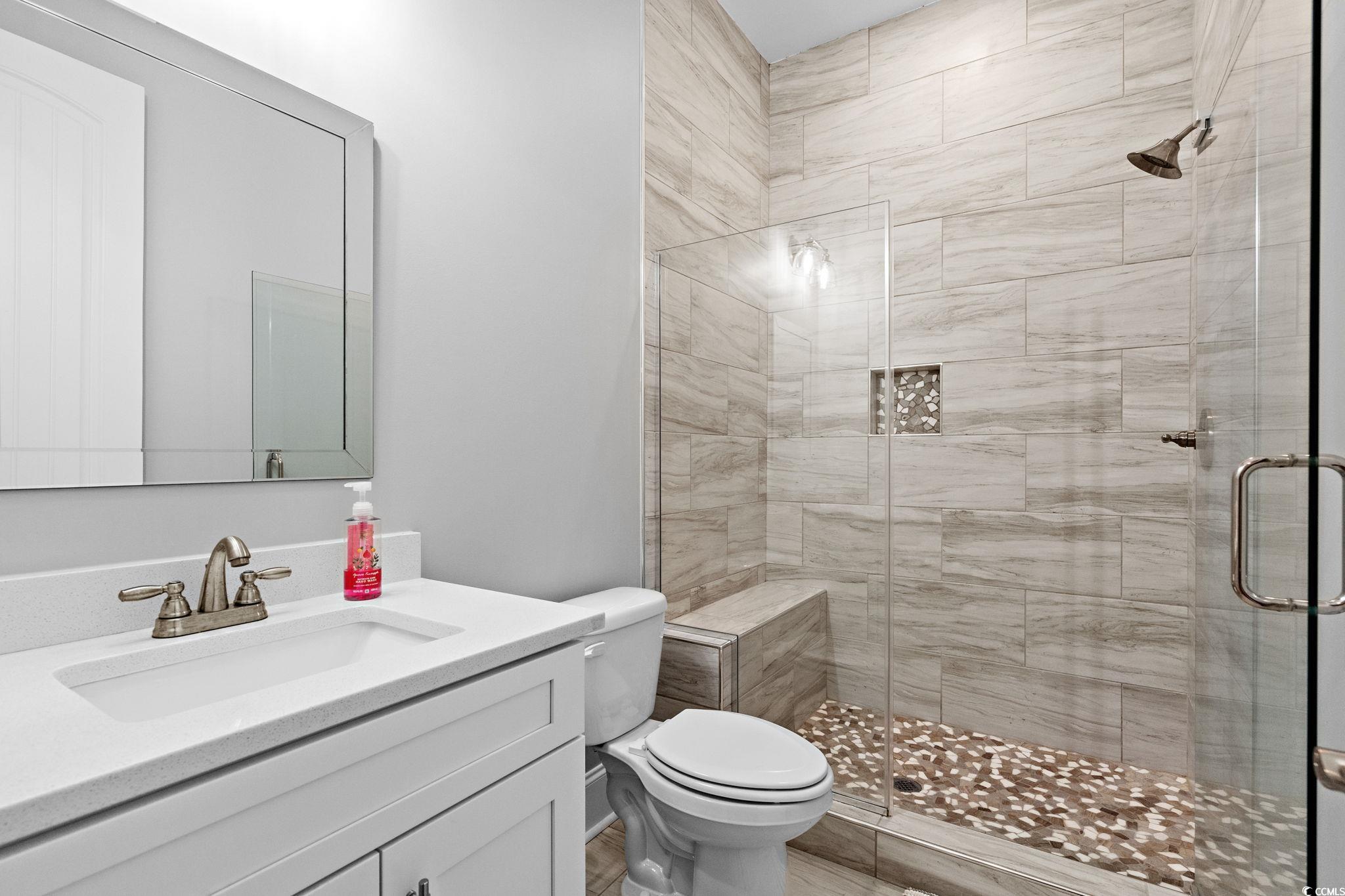 This stunning 4-bedroom, 4.5-bath Contemporary Craftsman home perfectly blends elegance, comfort, and modern design. This home offers an effortless flow and thoughtful layout for everyday living and entertaining. Inside, you'll find beautiful crown moldings, tray ceilings, bullnose corners, and luxury flooring throughout. The inviting living area features a cozy fireplace and abundant natural light from custom windows designed to capture serene pond and fountain views. The gourmet kitchen is a true showpiece featuring distinctive quartz countertops that extend seamlessly as a backsplash for a clean, modern look. Stainless-steel appliances include a gas cooktop, built-in wall oven and microwave. A large center island with breakfast bar, extended dining area, and solid wood cabinetry running to the ceiling complete this elegant culinary space. The spacious primary suite includes dual closets plus a separate shoe closet. The spa-like bath offers a stand-alone tub, an oversized shower with a built-in bench, and sophisticated finishes. Upstairs, a large bonus room with a full bath can serve as a second master suite, guest space, or media room. Outdoor living shines here with a covered porch featuring a ceiling fan, a summer kitchen, and relaxing pond views. Additional highlights include seamless gutters, raised slab foundation, and energy-efficient certification. Located in the gated community of Carolina Waterway Plantation, residents enjoy access to a furnished clubhouse with kitchen and banquet room, outdoor grill area, pool, playground, gazebo, tennis courts, walking trails, boat ramp, and RV/boat storage. Experience modern craftsmanship and luxury coastal living. Schedule your private tour today!