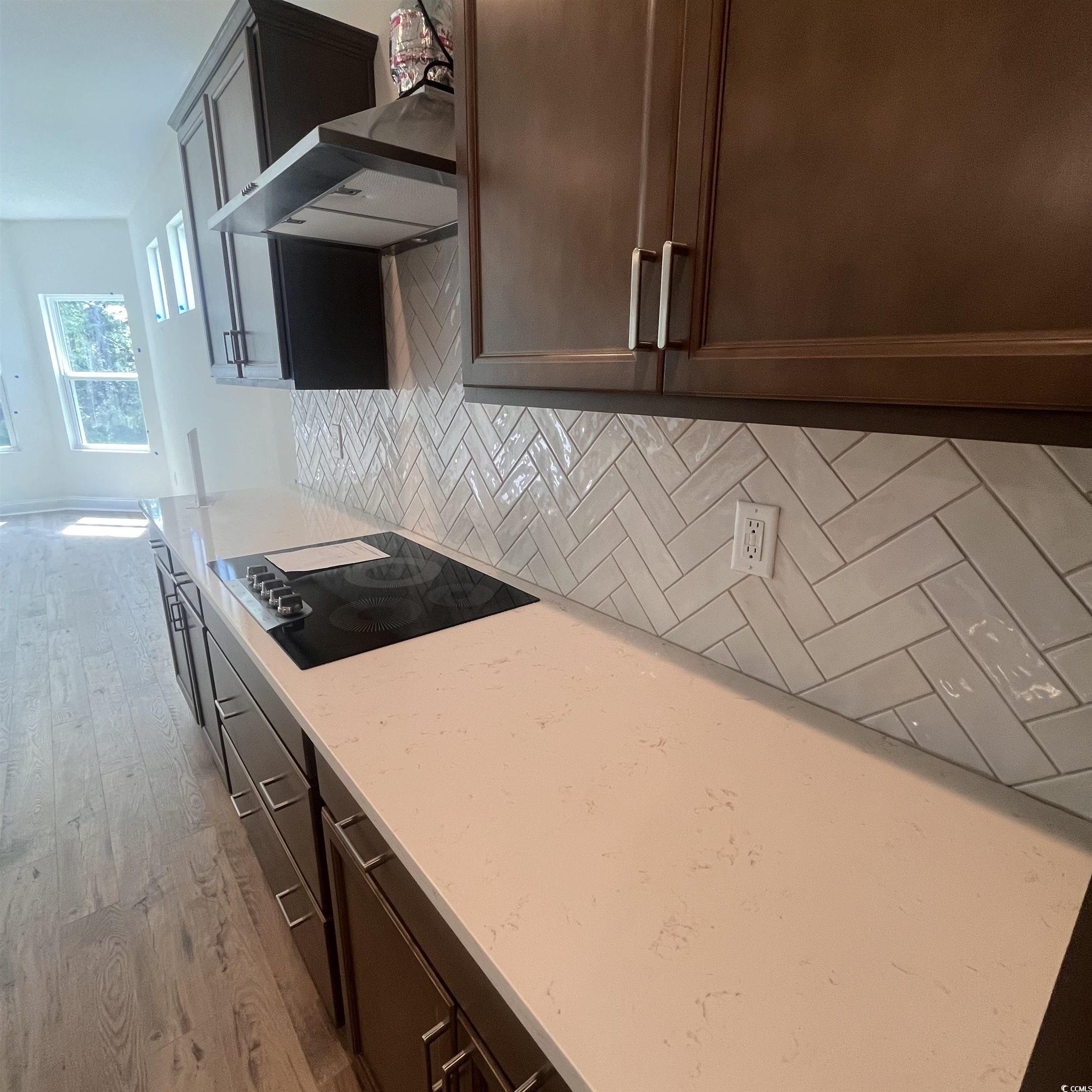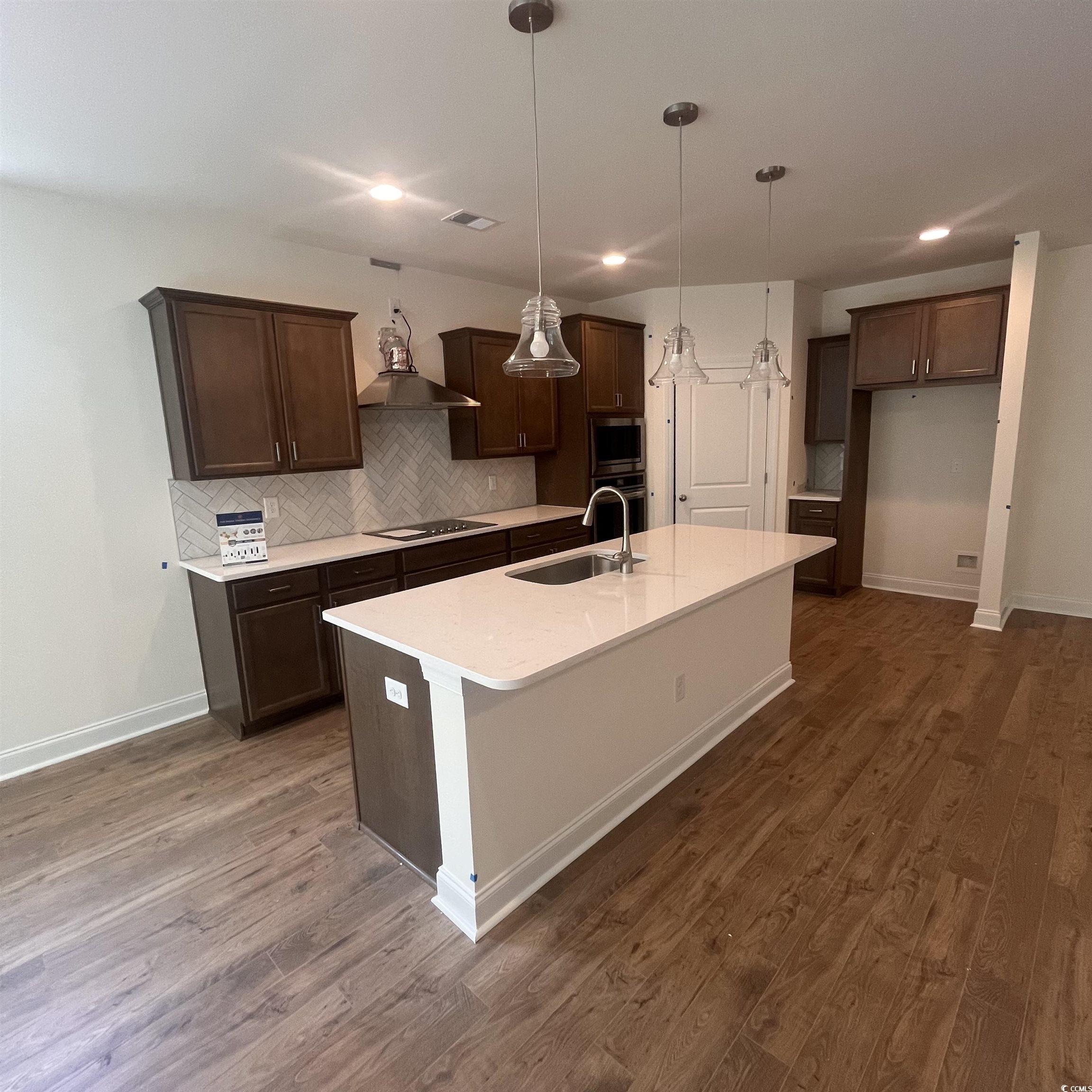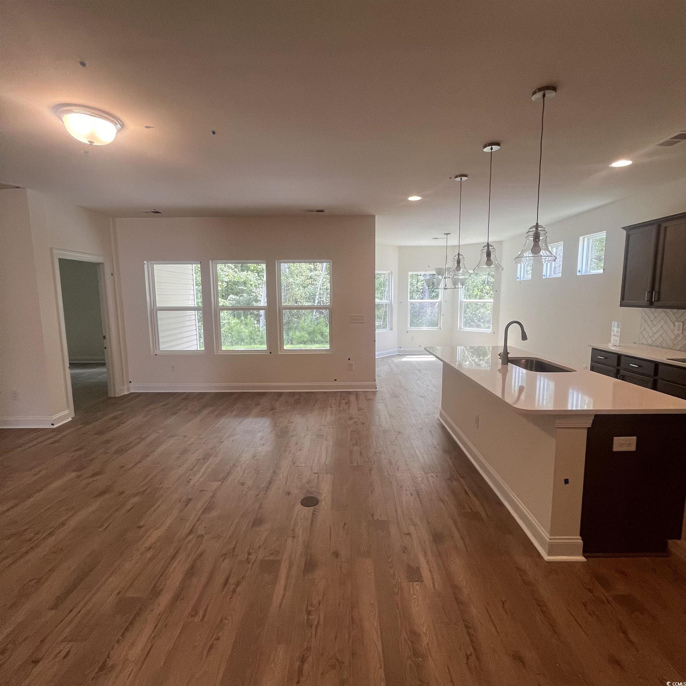 The Belair 2- One of the most popular models at Calabash Station.This brand new home will have all the upgraded finishes like a model. Deluxe walk in shower, Deluxe Kitchen with double oven/microwave, vented hood over flat stovetop. Level 2 quartz countertops, brushed nickel hardware, Herringbone style 3x8 backsplash, upgraded baseboards, floor outlet in family room and in walk in pantry, extended patio. Dining room with bay windows. Luxury laminate planking throught first level. Study is on first floor with french doors. Third bedroom is upstairs with 3rd bathroom. Upgraded stainless appliances. Hood range. Laundry cabinets added, utility sink added in laundry room. A lovely drop zone added. Tile in all the wet rooms. This house backs up to the woods. Must see in person! Come by! Home is ready for it's new owner. Come view it today!
