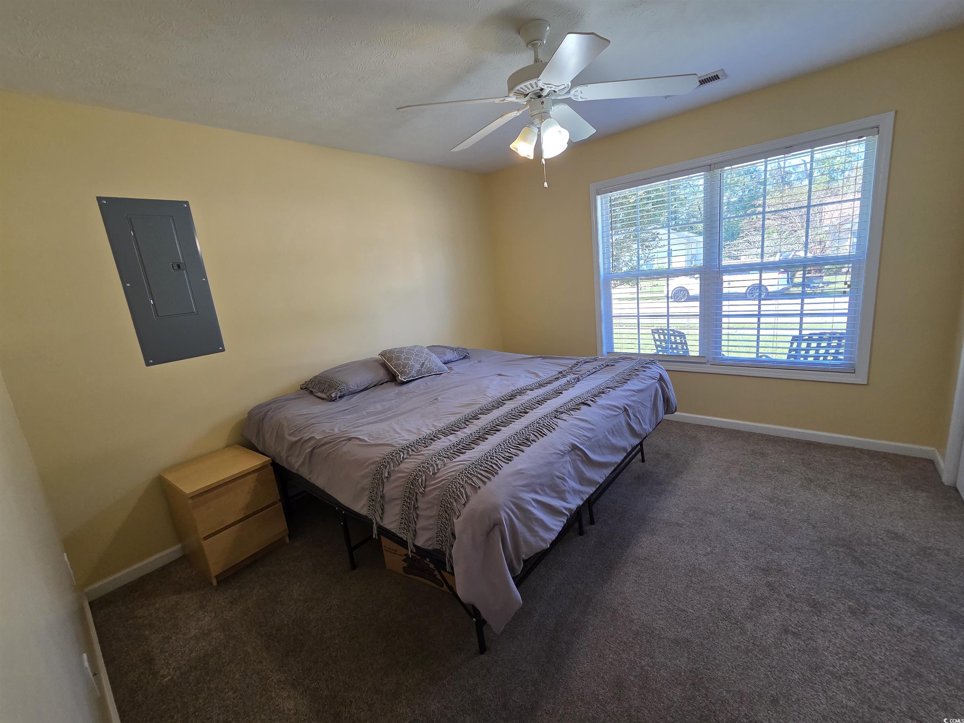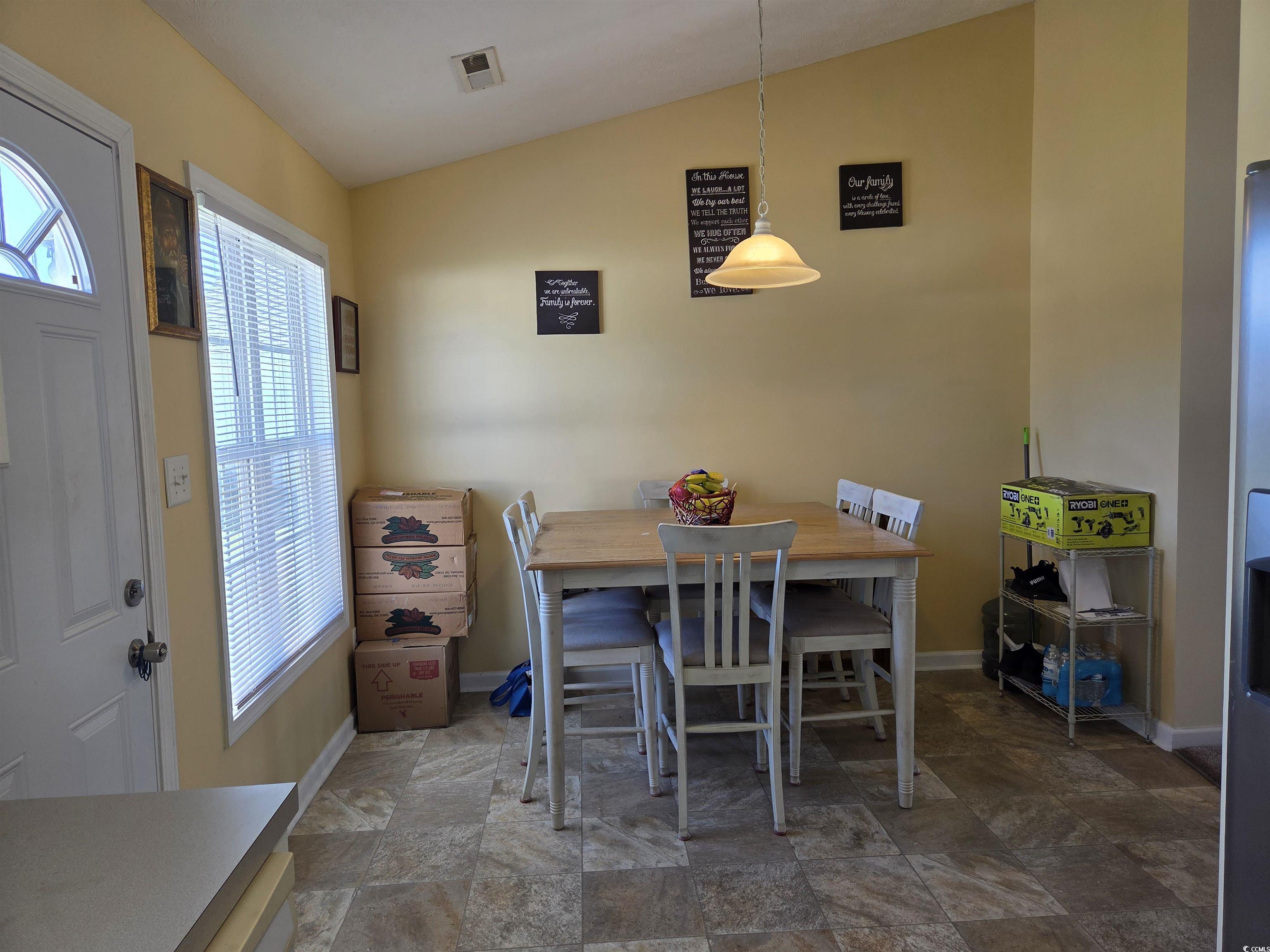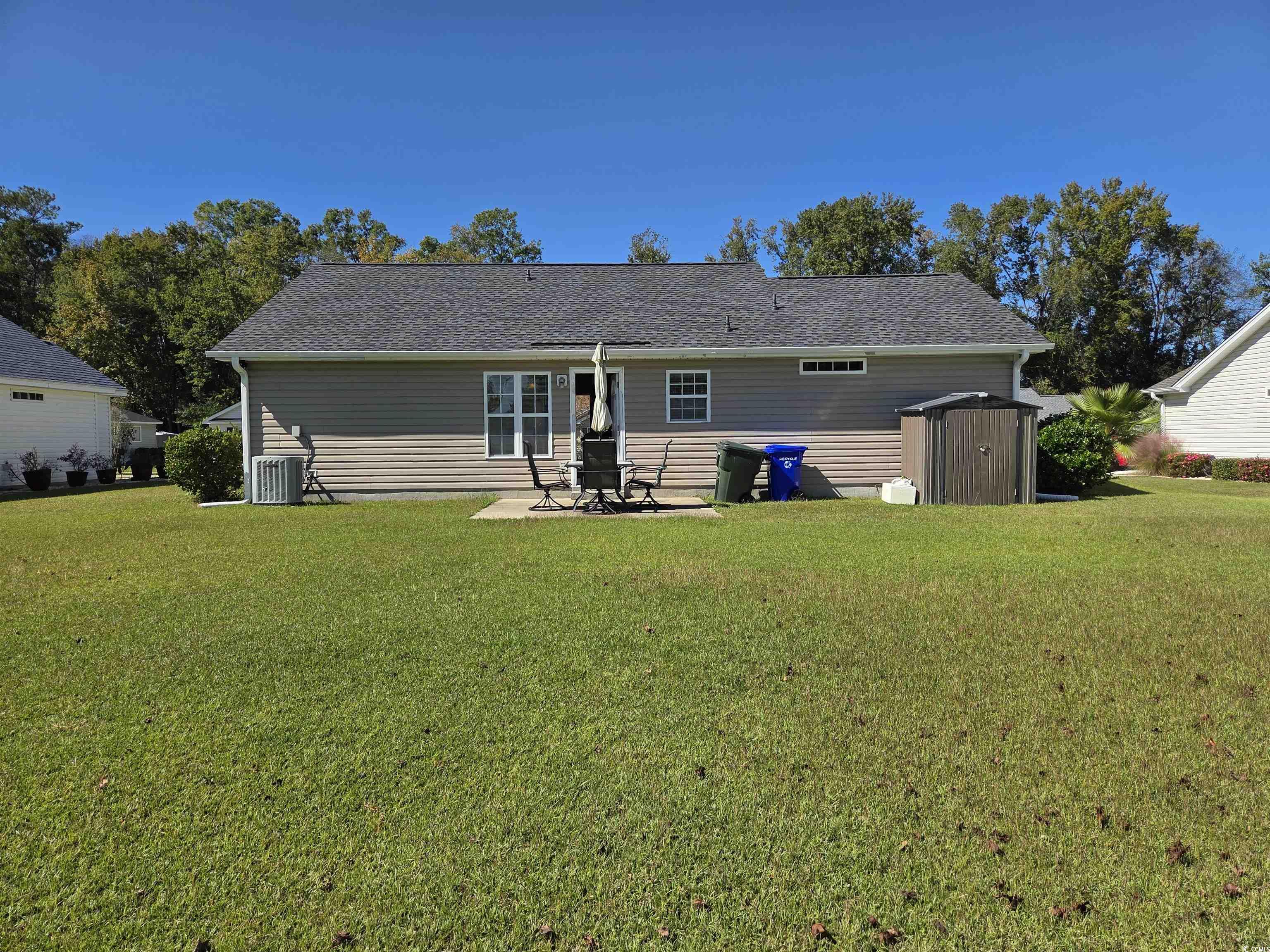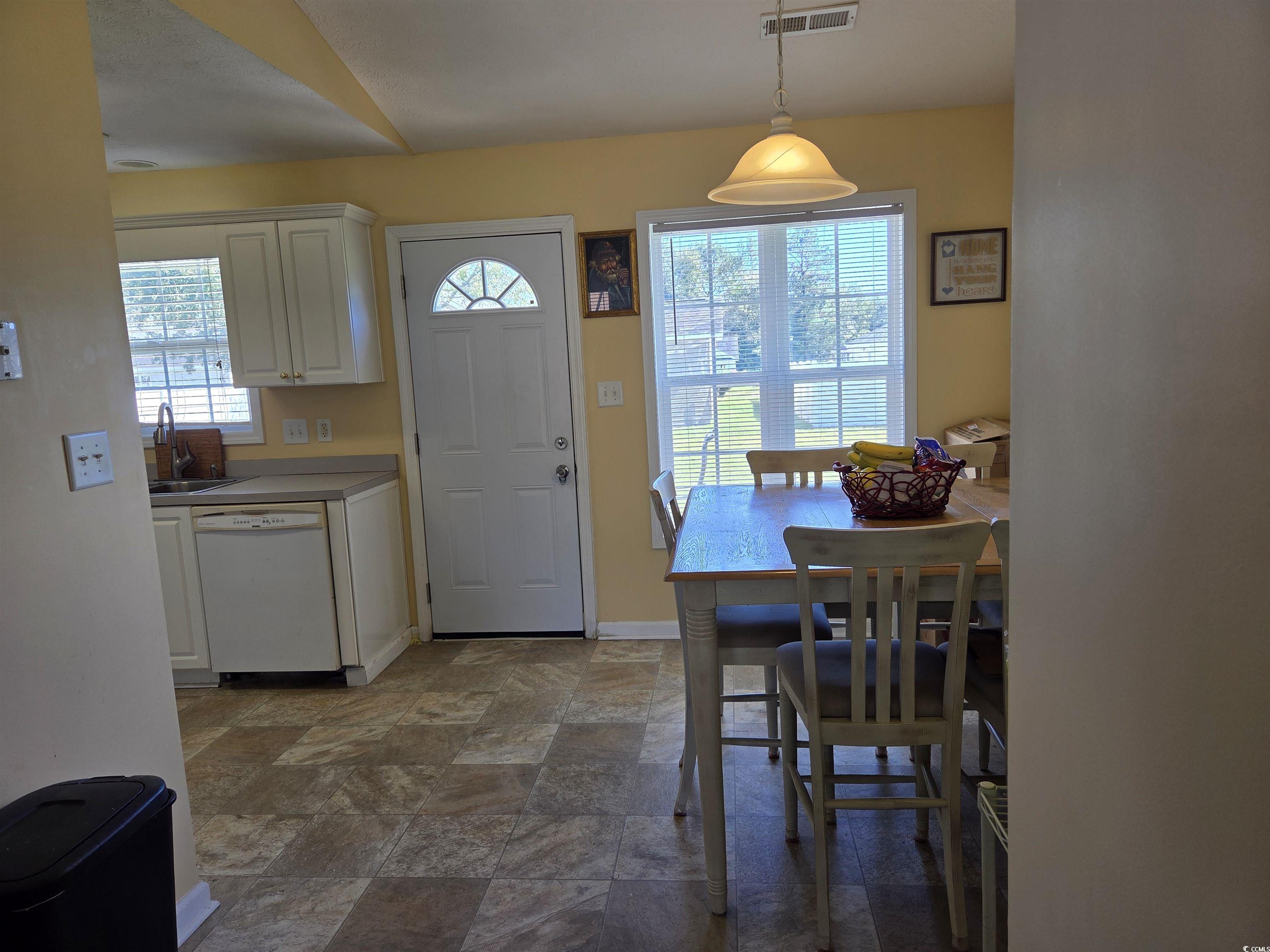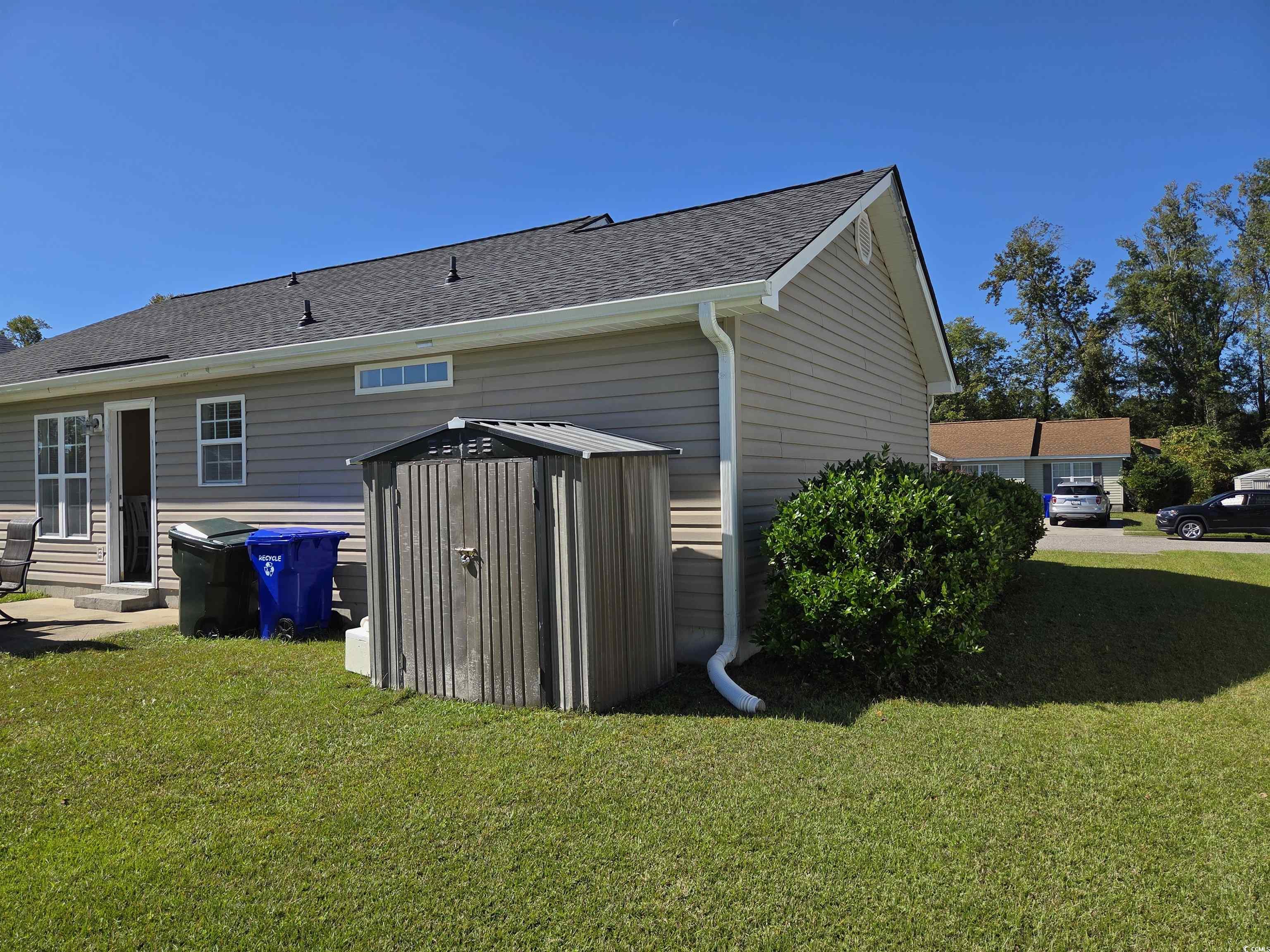 Great ranch style home with new roof in 2023, new gutters in 2024, freshly painted inside in 2023, vaulted ceilings, split floor plan, inviting covered porch, plenty of storage with large walk-in closets, two linen closets, coat closet, and detached storage shed. The open concept flow from living room to kitchen/dining room combo makes this an easy home to entertain and maintain. The location is perfect less than 3 miles to the Historic Downtown Conway, less than 1 mile to Conway High School, about 7 miles to Coastal Carolina University/Horry Georgetown Technical College, and just 20 miles to the beautiful beaches of Myrtle Beach! Enjoy all the wonderful local restaurants, theater, shops, beautiful Riverwalk park, and marina nearby! The house is in a quiet neighborhood called Elmhurst that is tucked back from the hustle and bustle with NO HOA! The house is priced to sell and ready for a new owner to make it their own with some minor cosmetic upgrades! Ask about Special Financing options and a home warranty!