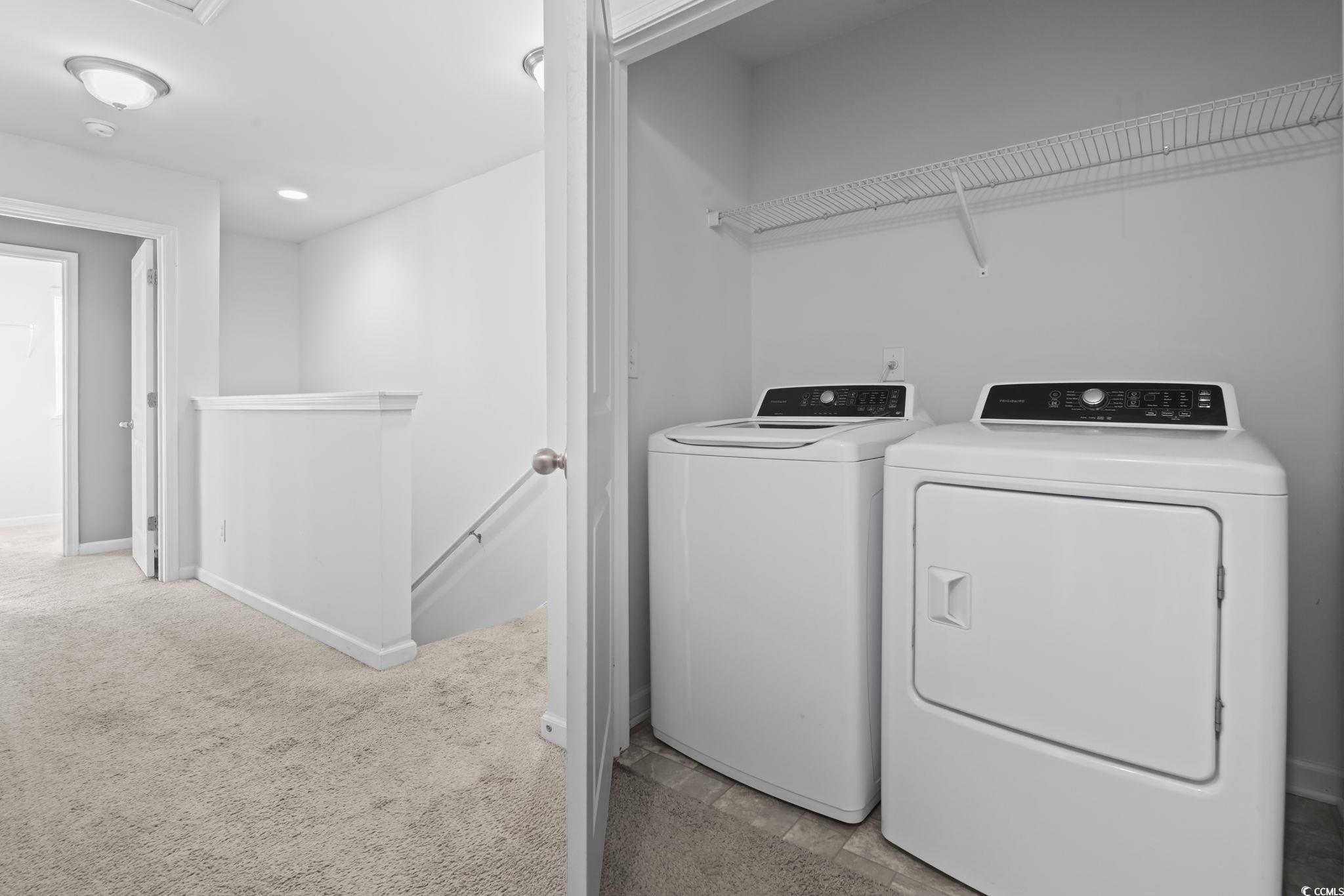 Welcome to this beautifully maintained 3-bedroom, 2.5-bath townhome located in the desirable Fairways at Wild Wing—a quaint and quiet community just minutes from Coastal Carolina University, shopping, dining, and more. The main level features a spacious open layout with a convenient half bath and access to the one-car garage. The kitchen includes stainless steel appliances, granite countertops and a large island to provide plenty of seating in addition to the combined dining area. Upstairs, you’ll find all three bedrooms, including a laundry room for added ease. The primary suite is a true retreat, showcasing vaulted ceilings, an abundance of natural light, a large walk-in closet, and a beautifully appointed en suite bath with double sinks and a walk-in shower. The second and third bedrooms are both generously sized and perfect for guests, children, or a home office. Enjoy relaxing by the community pool. Whether you're looking for a primary residence or investment opportunity, this home offers comfort, style, and a prime location!