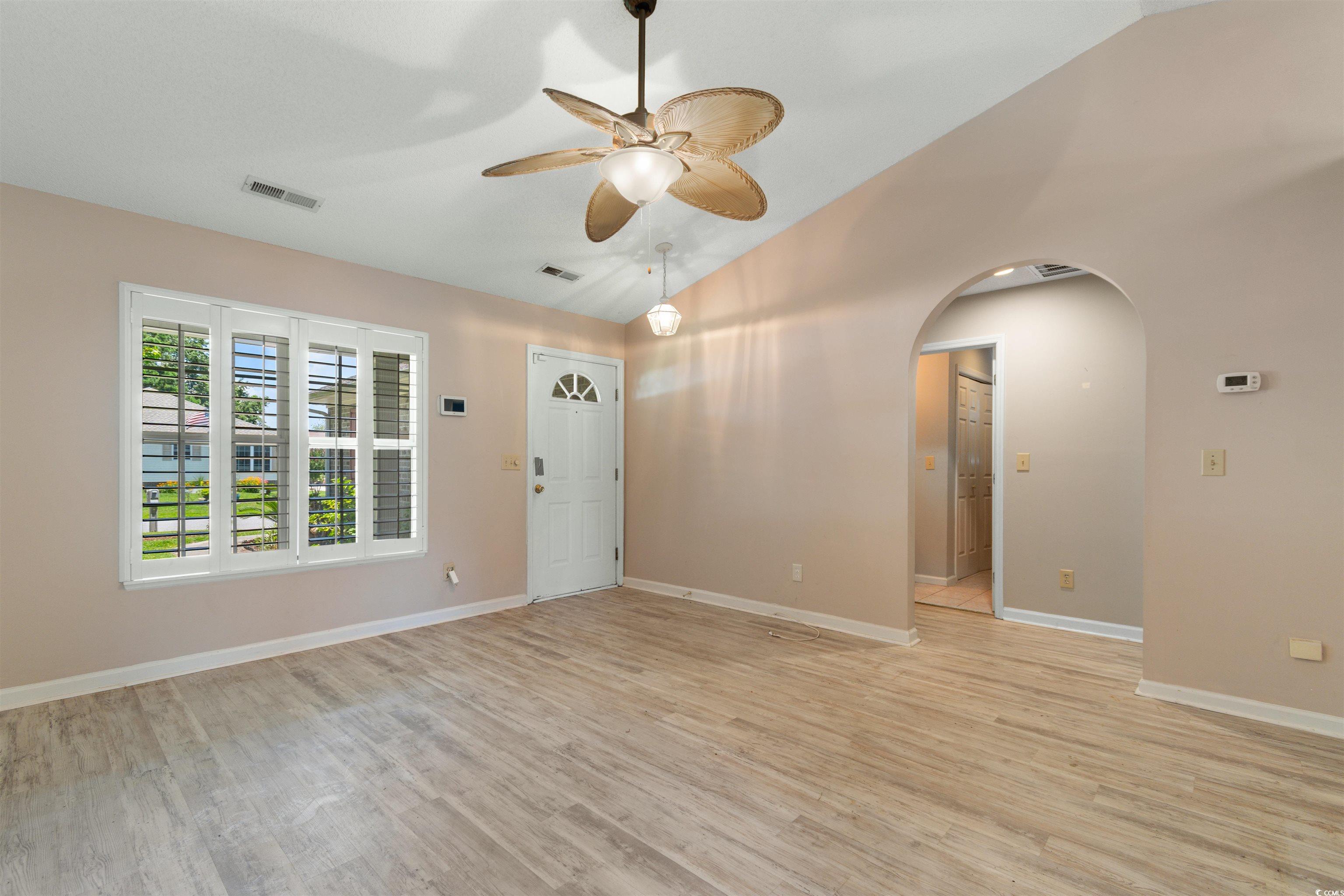 Welcome to this charming 3-bedroom, 2-bathroom home located in the desirable Holly Sands community of Little River, SC. This inviting home features an open floor plan with vaulted ceilings, creating a spacious and airy atmosphere throughout. The eat-in kitchen offers plenty of cabinetry and counter space, perfect for meal prep and casual dining. The master bedroom is generously sized and includes an ensuite bathroom with a walk-in shower, providing a private retreat. Two additional bedrooms share a full bathroom, making this home ideal for families or guests. The home opens up to a large rear patio, providing a perfect space for outdoor entertaining or simply relaxing in the serene surroundings. Holly Sands is a well-established, peaceful neighborhood known for its beautiful natural environment and friendly community. The area is conveniently located just minutes from the beach, offering easy access to local shops, restaurants, and entertainment venues. Residents can enjoy activities such as boating, fishing, and exploring the nearby Intracoastal Waterway, while golf enthusiasts will appreciate the nearby courses. With its combination of comfort, convenience, and a prime location, this home offers the perfect opportunity for those seeking a peaceful lifestyle in the heart of the Grand Strand area.