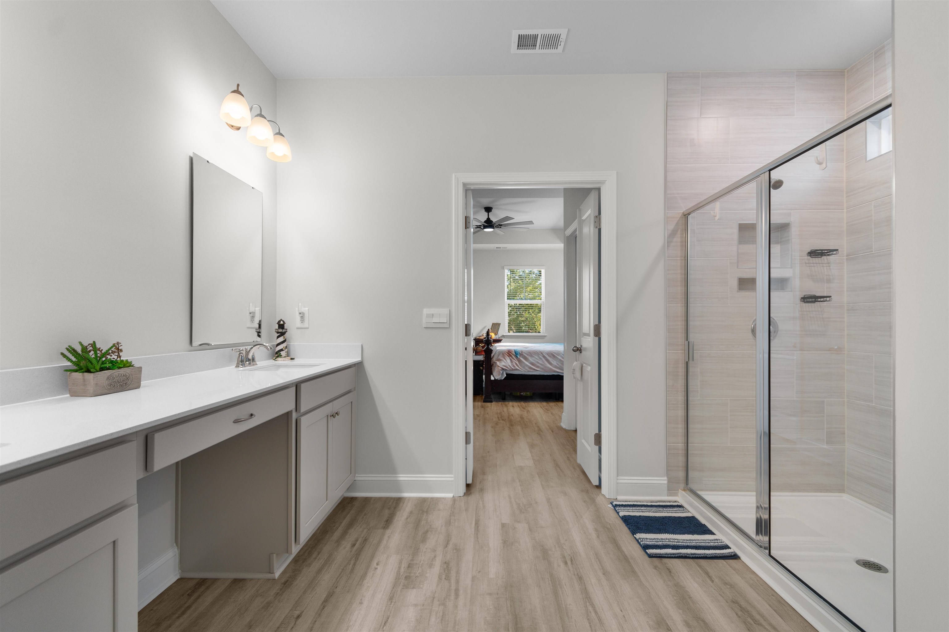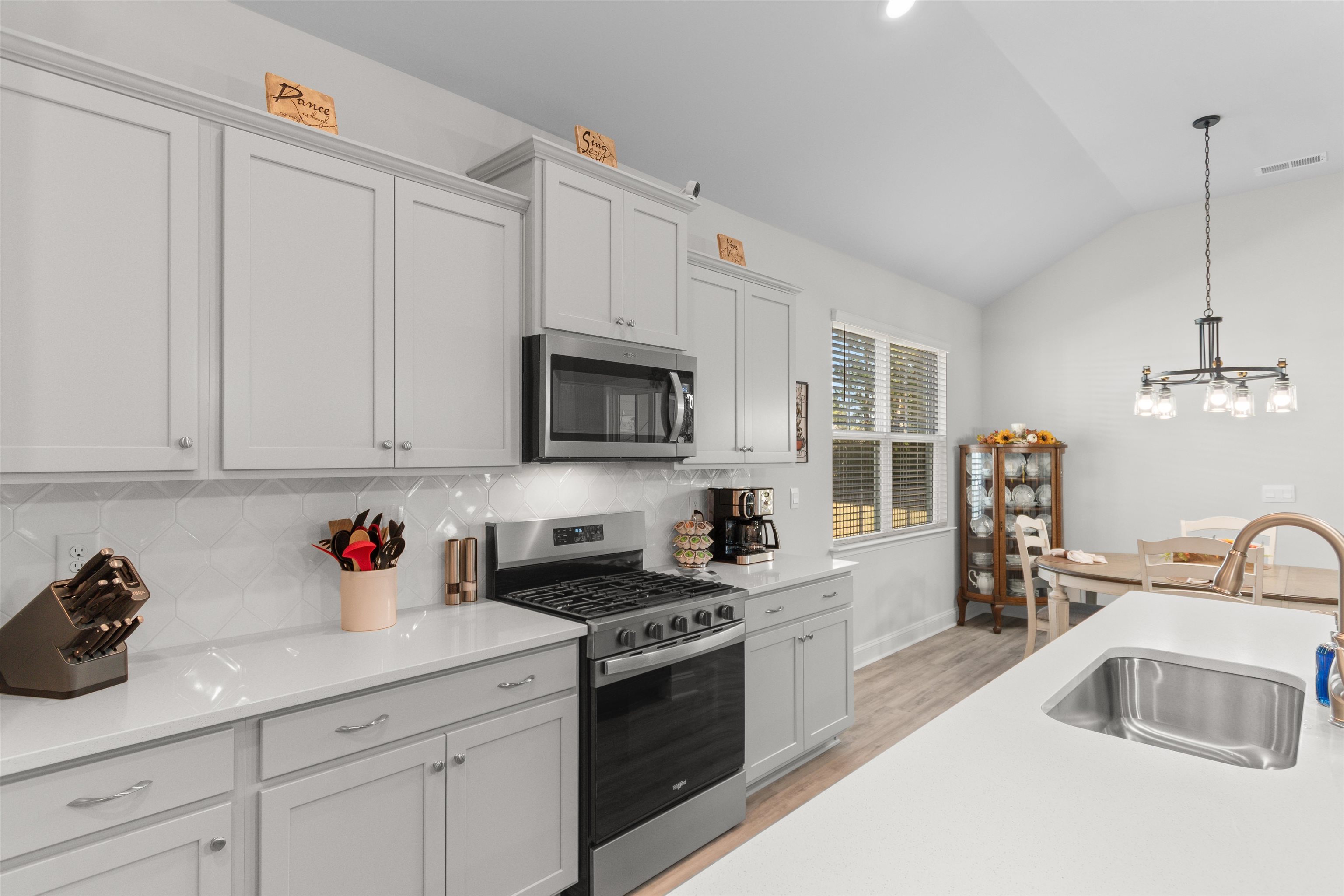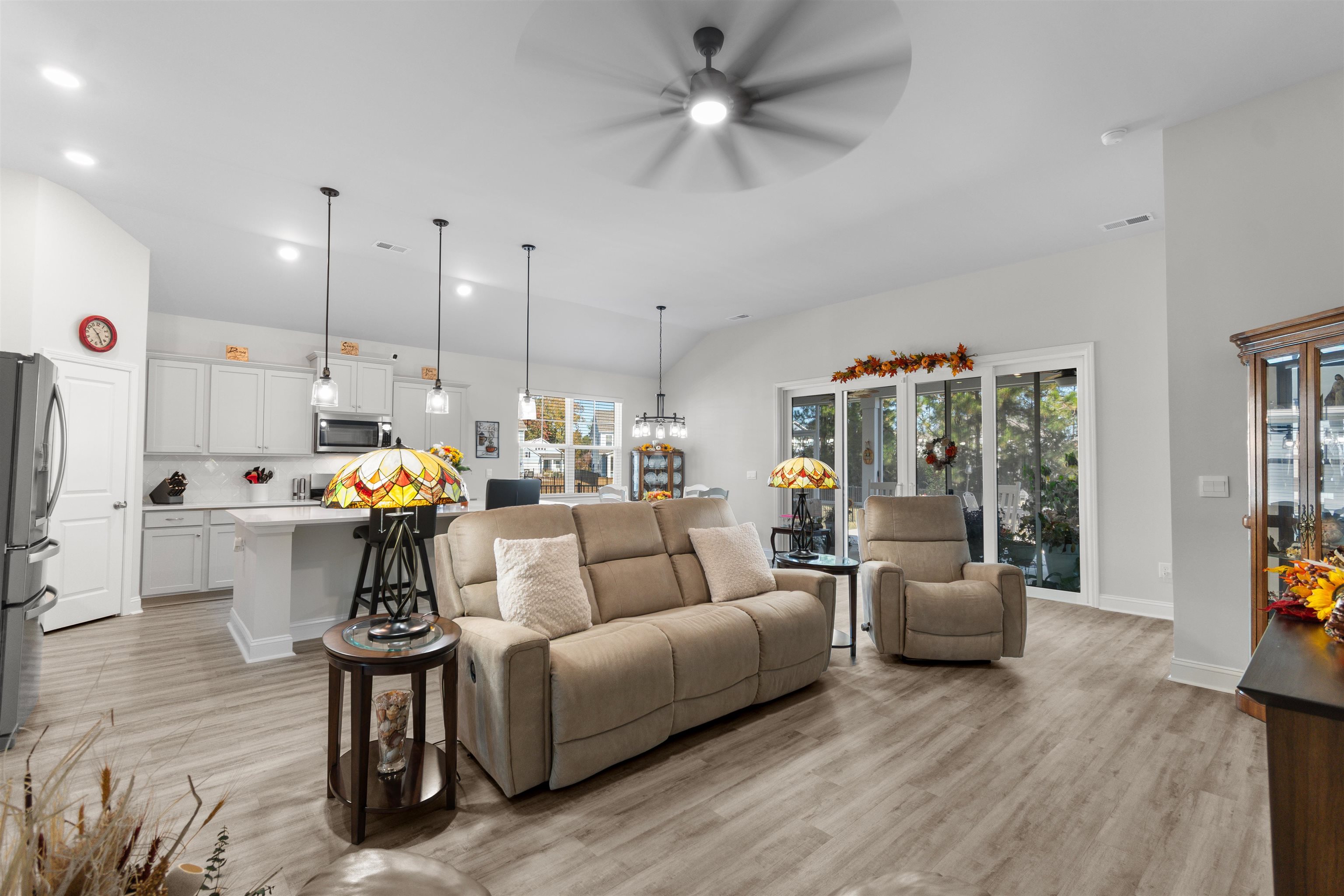 Experience modern one-level living in this bright 4-bedroom, 2-bath home with a 2-car garage, designed for comfort and everyday ease. High ceilings, updated lighting, and durable LVP flooring create a fresh, inviting feel throughout. The open living, dining, and kitchen area flows seamlessly, featuring quartz countertops, a large island, stainless steel appliances, gas range, walk-in pantry, and abundant storage. The privately positioned primary suite offers a tray ceiling, walk-in closet, and a well-appointed bath with dual sinks and walk-in shower. Three additional bedrooms provide flexible space for guests, work, or hobbies, while a dedicated laundry room and drop zone add everyday functionality. The true standout is the backyard. A wide sliding glass door fills the great room with natural light and frames tranquil pond views. Step onto the spacious screened porch and extended patio overlooking the water. With no homes directly behind and a fenced yard surrounded by beautiful landscaping, the setting feels open, peaceful, and private. Built in 2025 and better than new, this home blends thoughtful upgrades, a functional layout, and an exceptional outdoor retreat, all just minutes from Conway Medical Center, Coastal Carolina University, Tanger Outlets, dining, and shopping.