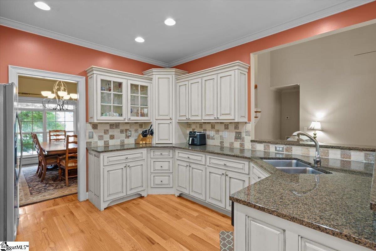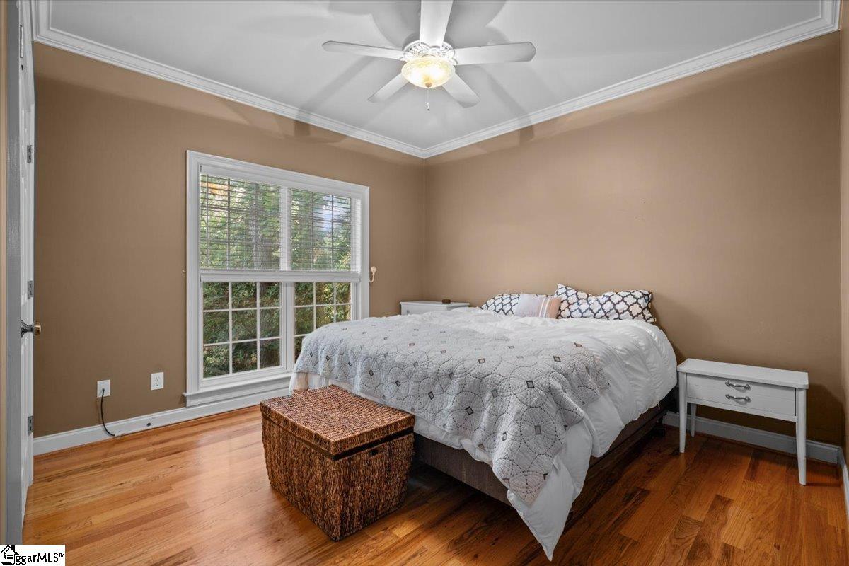 BEAUTIFUL BASEMENT HOME PRICED TO SELL! NEW ARCHITECTURAL ROOF in 2025! Discover 112 Dunrobin Lane -a spacious family home on an oversized lot with a main-floor primary suite AND main-floor guest suite! Upstairs you'll find two more bedrooms plus a spacious flex room.This desirable floor plan also includes vaulted ceilings, crown molding, wainscoting and beautiful hardwood floors! Check out the FULL BASEMENT with the WORKSHOP and WORK-OUT ROOM: enjoy endless possibilities from a media room or play space, a home gym, home office, or extra storage downstairs. Enjoy peace & quiet on the deck while overlooking the large, wooded backyard. In the heart of Five Forks, you'll appreciate the circular driveway, pool community amenities, and top-rated schools — the perfect blend of comfort, convenience, and community, all at a fabulous price! Welcome to Highland Creek, where your new home awaits you.