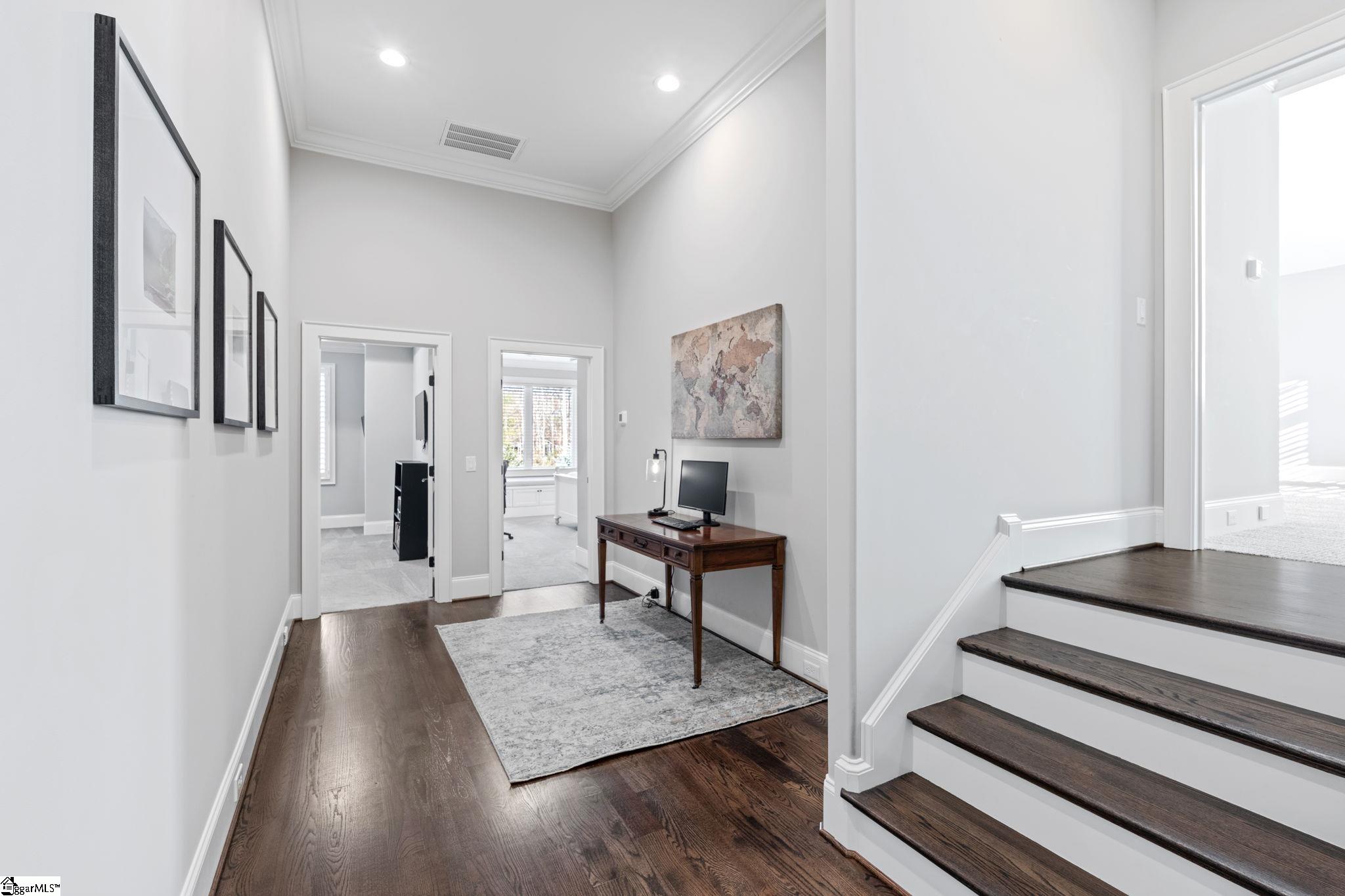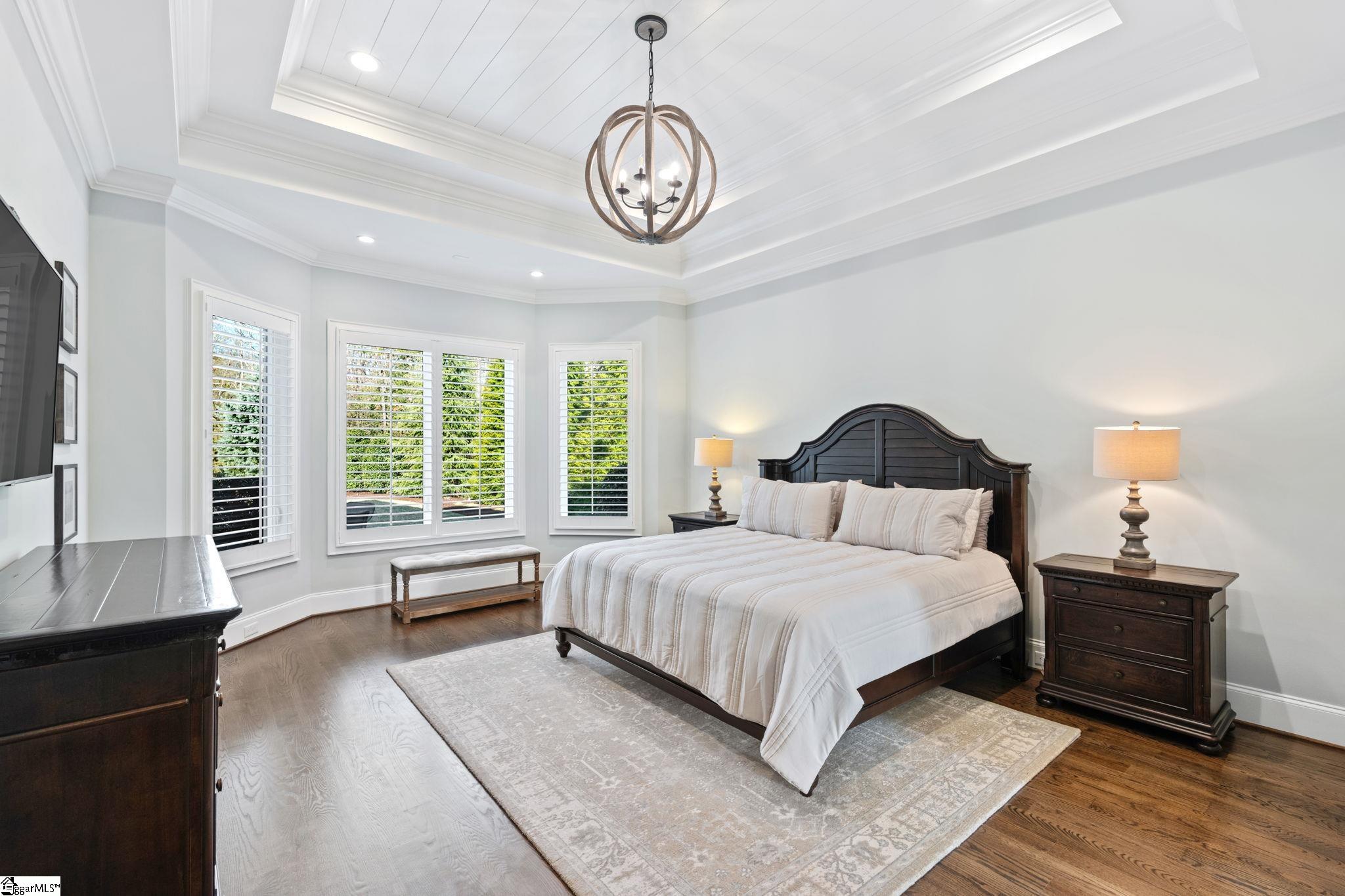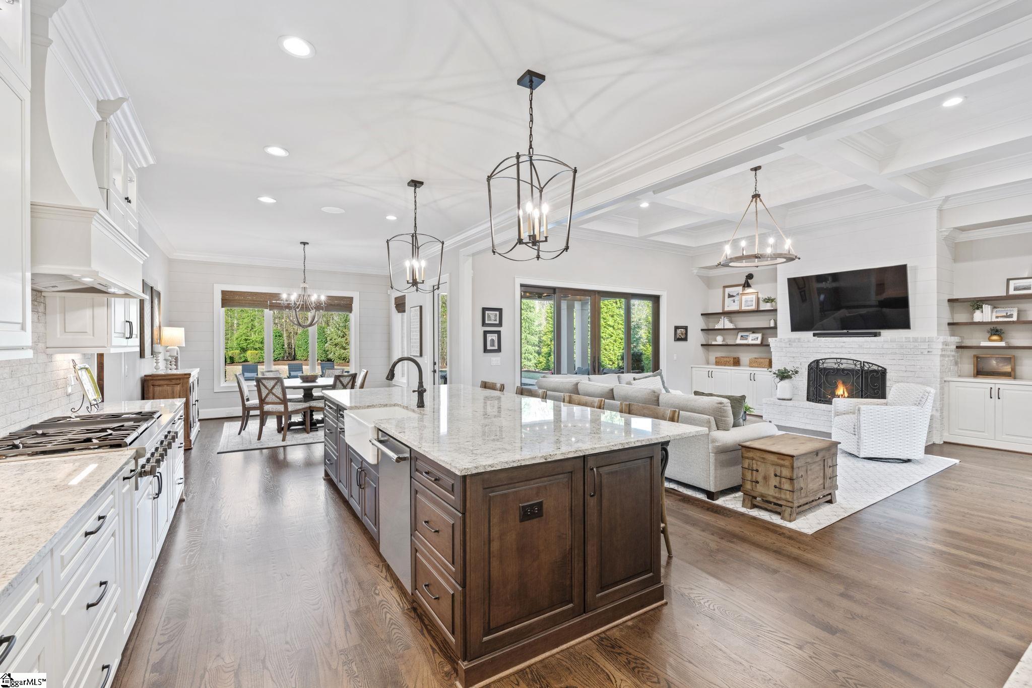 Casual and timeless elegance define this 4-bedroom + bonus, 4.5-bathroom custom home on over a half-acre in the exclusive gated community of Godfrey Ridge. Built in 2019 by First Choice Custom Homes, this residence exemplifies exquisite craftsmanship. From the moment you enter through the barrel-ceiling foyer, you are greeted by site-finished hardwood floors throughout most of the home, abundant natural light, and 10’+ ceilings on every level. At the heart of the home, the spacious and inviting family room flows seamlessly into the gourmet kitchen, creating the perfect balance of luxury and relaxation. Custom cabinetry flanks the stately gas fireplace, while oversized sliding doors open to the patio and pool beyond. The chef’s kitchen is exceptional, featuring a sprawling island, top-of-the-line Thermador appliances, ample cabinetry, both natural and task lighting, and a massive walk-in pantry with intelligently designed shelving and a sink. The dining area, adjacent to the kitchen and living room, keeps the home centered on gathering and connection. The primary suite occupies its own wing on the main level and features trey shiplap ceilings, extra-tall windows overlooking the private yard, and a luxurious ensuite bathroom with dual vanities, soaking tub, oversized Roman shower with multiple heads, and extensive custom cabinetry. Two walk-in closets with designer-appointed shelving complete this peaceful retreat. Also on the main level is an additional bedroom with a walk-in closet, a full bathroom, dual drop zones off the garage and pool entrance, and multiple storage closets. The expansive laundry room elevates everyday chores with abundant upper and lower cabinetry, granite countertops, dedicated hanging space, a sink. and a home office - making laundry something you’ll actually enjoy! Upstairs, two generously sized bedrooms each include full ensuite bathrooms and walk-in closets with custom shelving. The loft office and half bath sit alongside a large storage closet that provides access to a huge unfinished attic, partially cooled with foam insulation which is ideal for storage. Just a half flight above, a vast bonus recreation room with soaring ceilings and abundant natural light offers limitless possibilities for a home gym, theater, gaming, or entertaining. The exterior of this home is equally impressive and exquisite. A covered patio overlooks the gunite pool with a generous sun shelf, bubblers, fountain, and travertine decking. The over-half-acre lot features mature, thoughtfully curated landscaping with full front and back sprinklers. Additional highlights include a whole-home generator, 3-car garage with epoxy flooring and high-end cabinetry, and a tankless water heater with recirculation line for instant and endless hot water. Zoned for award-winning schools and conveniently located near I-85 and Woodruff Road, this home is a rare find. Schedule your showing today.
