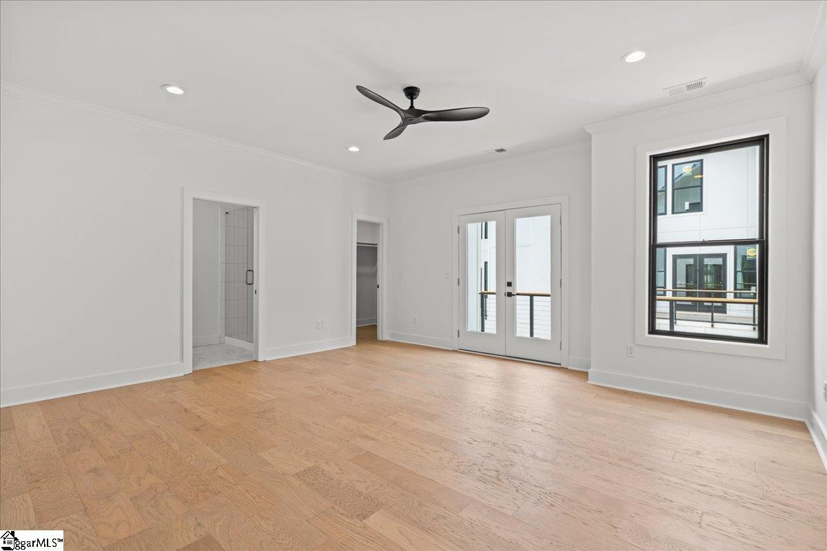 This brand-new townhouse offers over 2,000 square feet of thoughtfully designed living space just minutes from downtown Greenville. Featuring three bedrooms and two and a half bathrooms, this home blends modern design with functional comfort. The main floor welcomes you with an open kitchen and living area ideal for entertaining, complete with hardwood floors and quartz countertops that add a polished touch. Step outside to a grilling patio and outdoor space perfect for weekend barbecues or a peaceful morning coffee. Upstairs, the spacious primary suite includes its own private balcony and hardwood flooring, creating a serene spot to unwind. The large loft area offers flexible space for a home office, media room, or additional lounge. Two generously sized secondary bedrooms share a Jack and Jill bathroom, giving everyone in the household a bit more breathing room. There’s no shortage of storage here—with a two-car attached garage and a dedicated exterior storage area ideal for bikes, tools, or weekend adventure gear. Guest parking on site makes hosting friends and family a breeze, and the community’s proximity to Prisma Health Greenville Memorial Hospital, Fluor Field, Falls Park on the Reedy, and local favorites like Summer Moon Coffee means you're never far from what matters. Whether you’re looking to live in comfort or explore short-term rental possibilities, this home is ready to meet the moment—with style, space, and a whole lot of convenience.