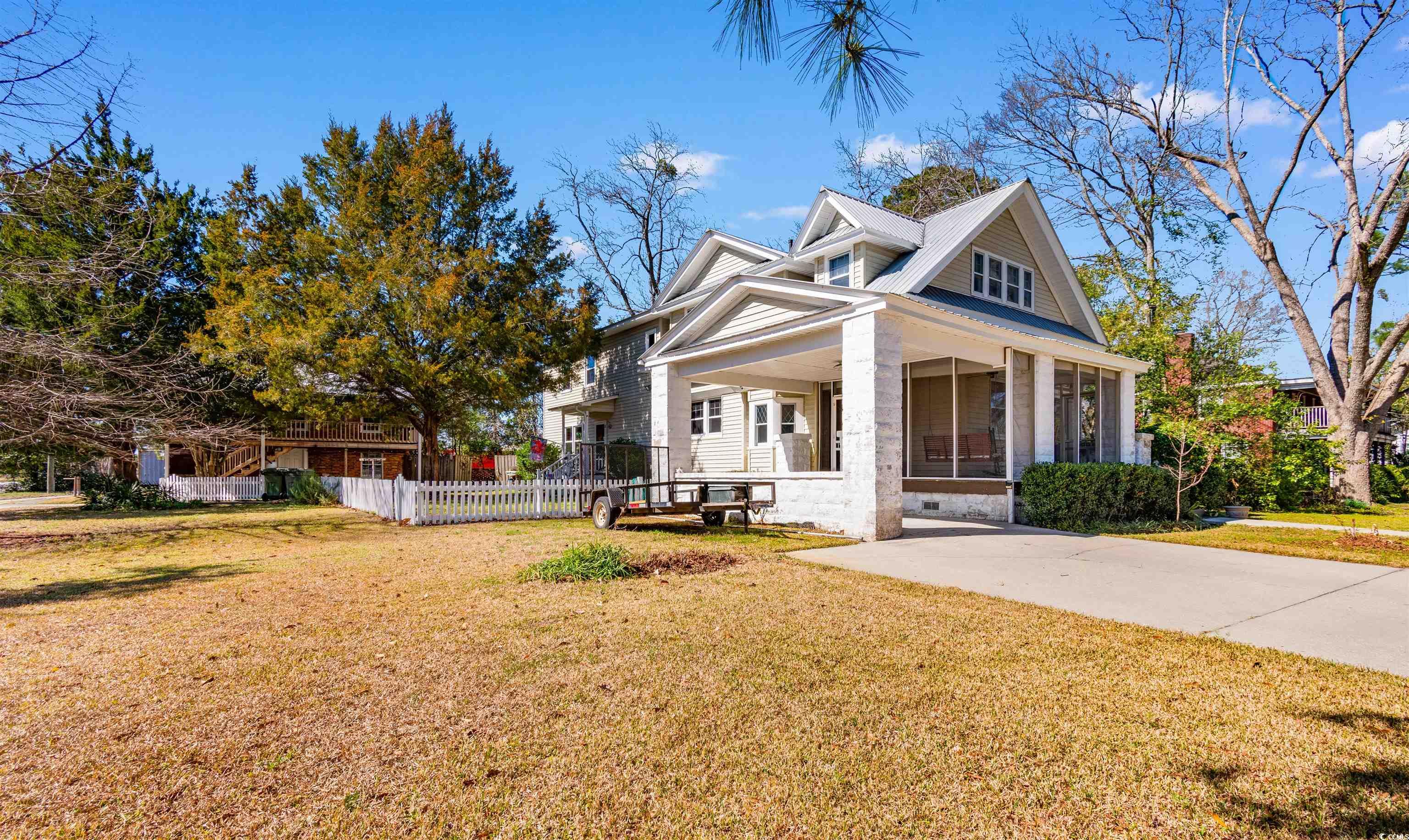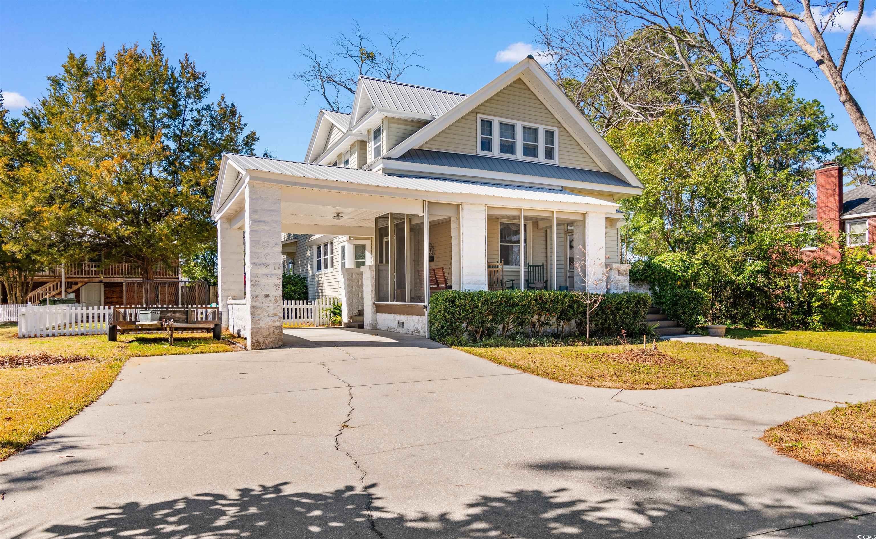Step into timeless charm with this historic Andrews treasure! Built in 1910 and thoughtfully expanded in 1990, this 4-bedroom, 4-bathroom home blends classic Southern character with modern comfort. Situated on a spacious corner lot, the main residence showcases original hardwood floors, custom built-ins, crown molding, and two staircases that add to its historic appeal. A cozy fireplace, metal roof, and abundant natural light highlight the home’s warmth and durability. The detached garage offers even more flexibility with a fully equipped 1-bedroom apartment—complete with its own kitchen and living room—perfect for guests, extended family, or rental income potential. Whether you’re drawn to the history, the craftsmanship, or the versatile living spaces, this property offers a rare opportunity to own a true piece of Andrews history with plenty of charm and character.