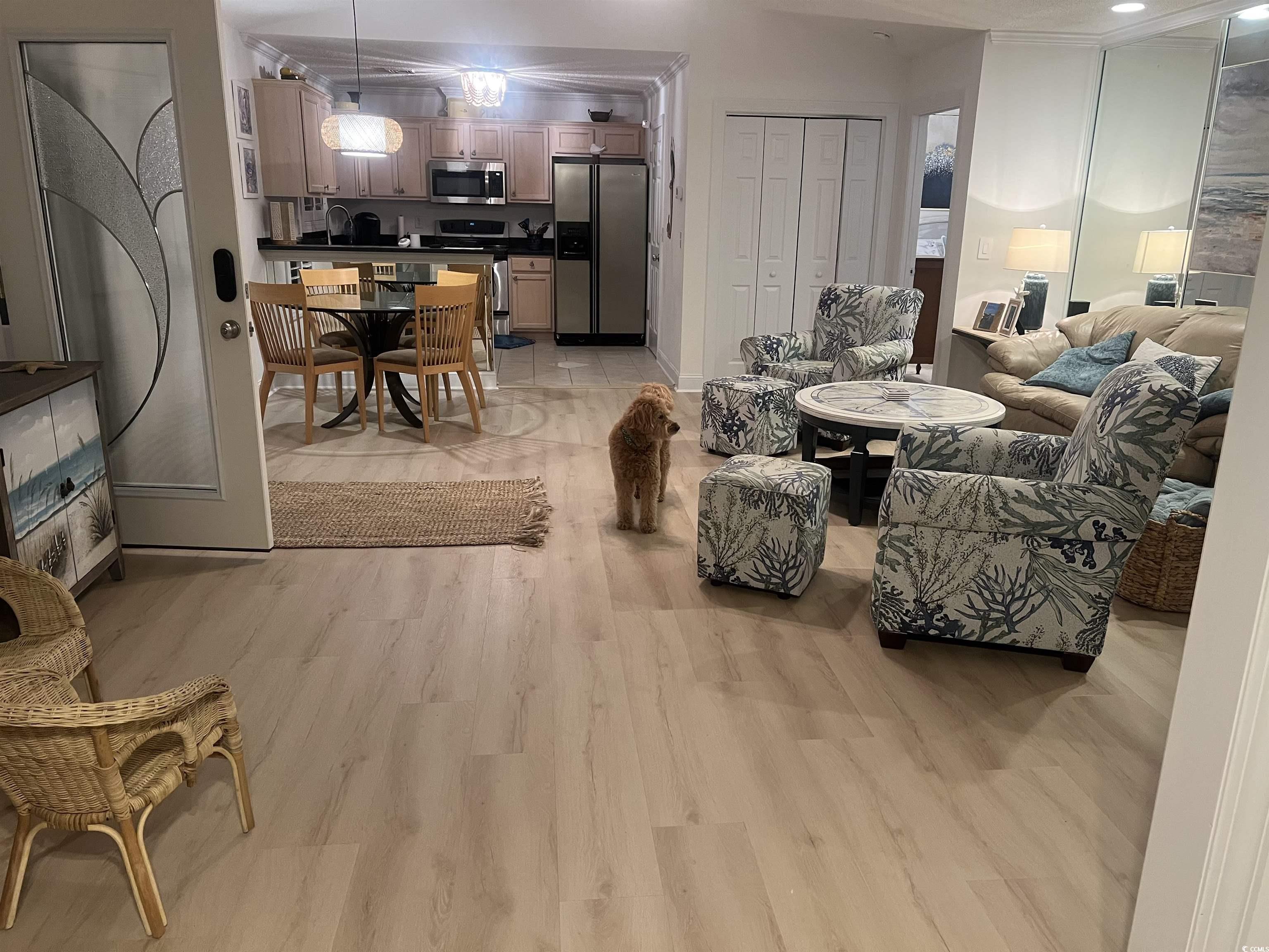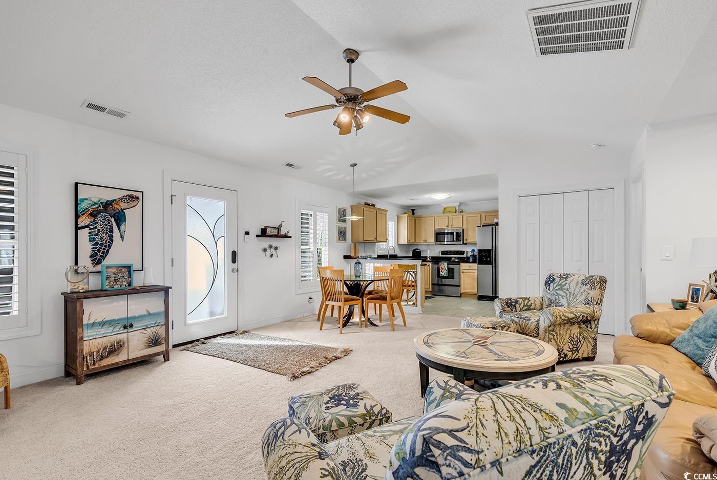 “Back on the market through no fault of the property or the seller—the previous contract fell through due to the BUYER'S OTHER HOME sale not closing” Carpets in the living space have been replaced with luxury vinyl plank. There are before and after pics. This fully furnished 3-bedroom, 3-bathroom raised beach home sits east of Hwy 17 on a quiet road in Surfside Beach. With two separate living spaces, it’s perfect as a primary home, vacation getaway, or rental. The upper level offers 2 beds, 2 baths, a Carolina room, modern kitchen, and bright living area. The lower level has 1 bed, 1 bath, a full kitchen, living space, and its own laundry—ideal for long-term rental. Features include a 2019 roof, 2017 HVAC, double garage, outdoor shower, and no HOA. Each bedroom has an en-suite bath. Enjoy a community pool next door without the maintenance, plus you're a quick golf cart ride to the beach and close to restaurants, shops, and all Surfside has to offer. This home also comes with a 1 year transferable home warranty!