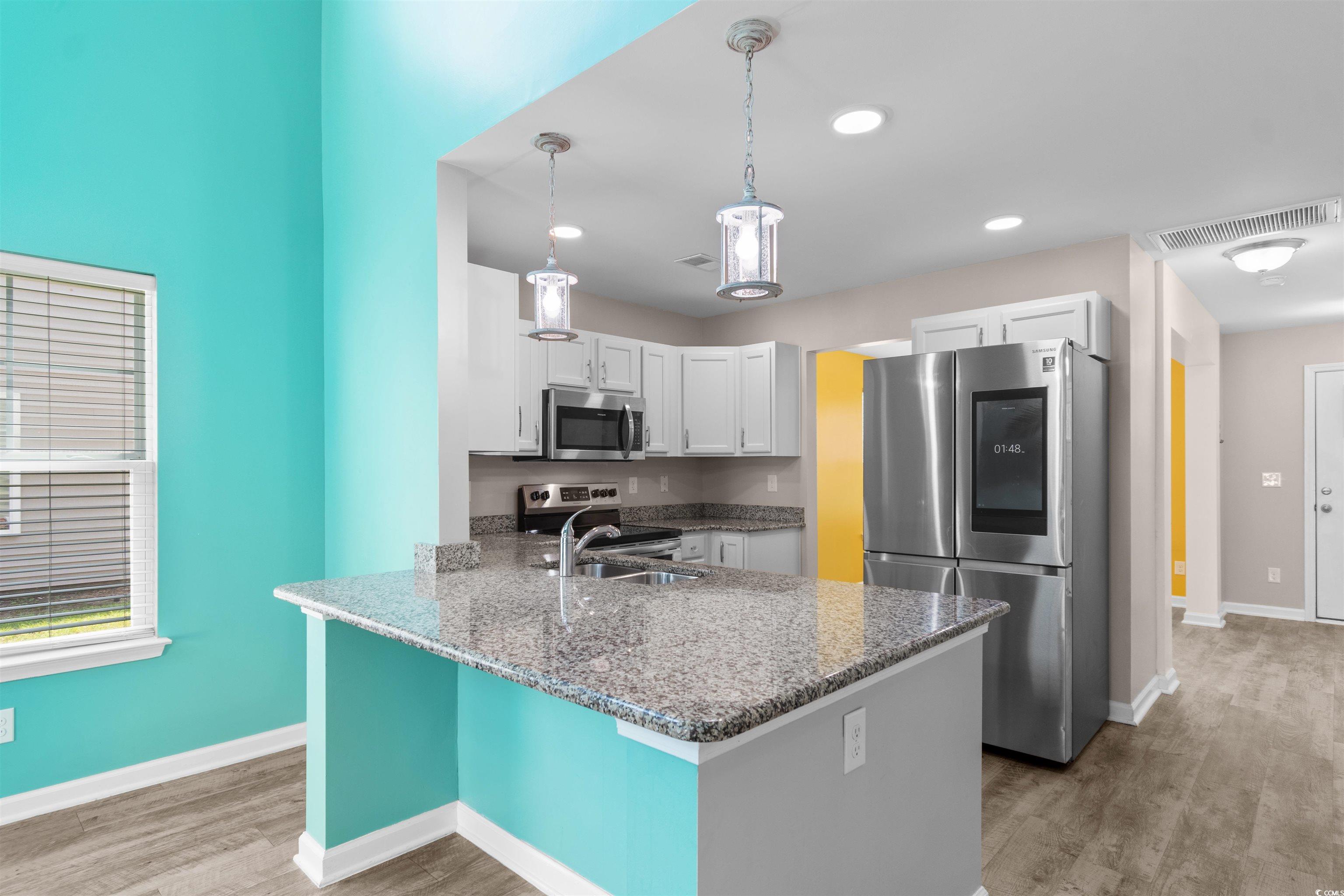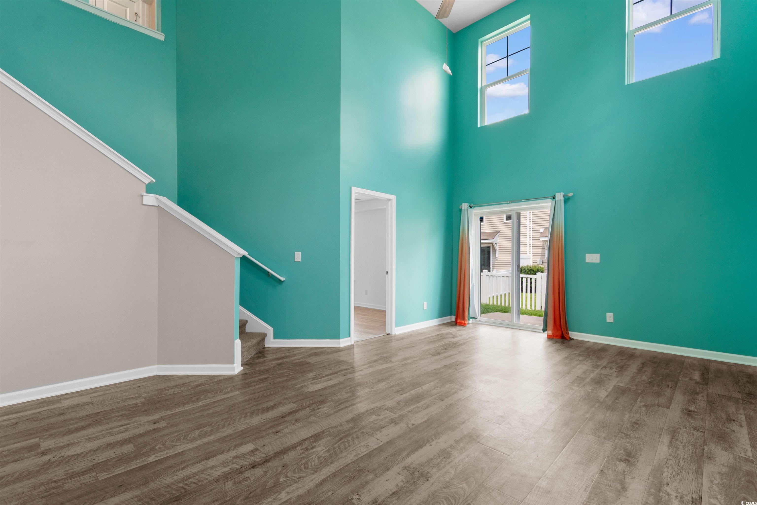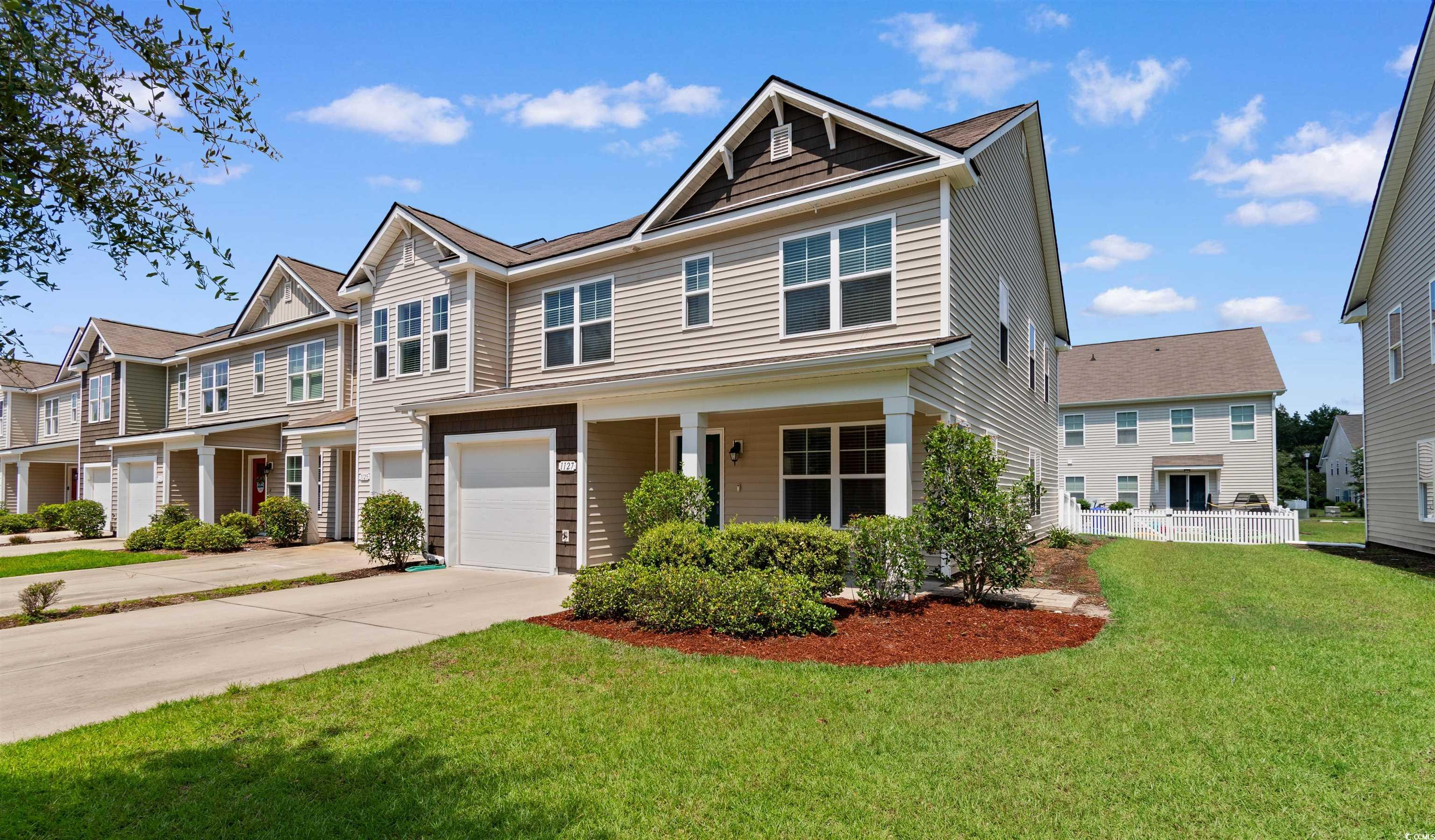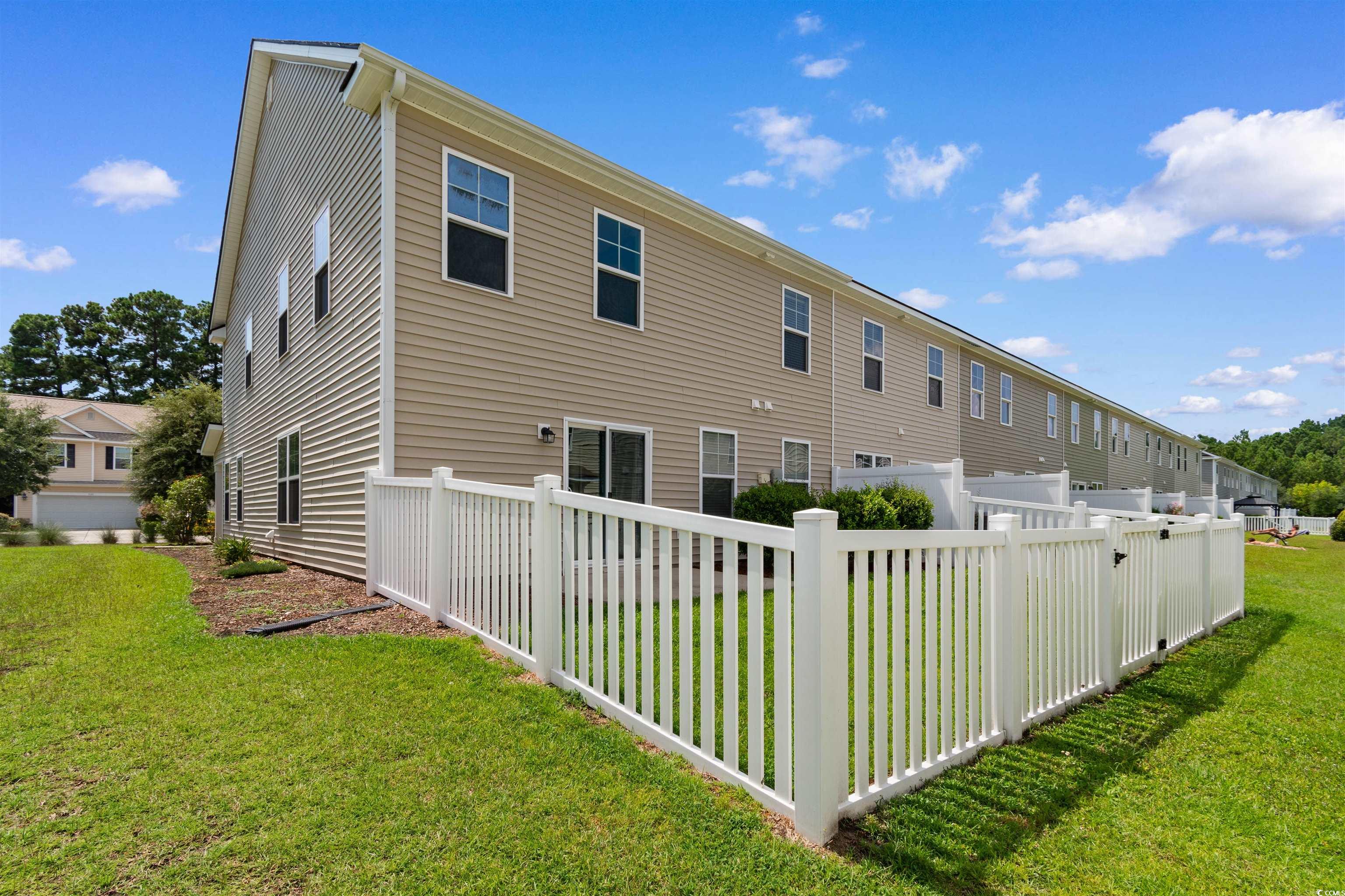 Beautiful 4 Bedroom, 3.5 Bath End-Unit Townhome with Garage This spacious 4-bedroom, 3.5-bath townhome offers the perfect blend of comfort, style, and convenience. As an end unit, the home is filled with natural light through additional windows, creating a bright and inviting atmosphere. The first floor features the primary suite, complete with a dual vanity ensuite bath and walk-in closet with brand-new carpet. The open-concept living area boasts soaring vaulted ceilings in the great room, a gourmet kitchen with granite countertops, stainless steel appliances, and white cabinetry, plus a dining room conveniently located off the entry. A guest half bath is also located on the main level. Upstairs, you’ll find three generously sized bedrooms and two full bathrooms. Two bedrooms share a Jack & Jill bath, while the laundry room (washer & dryer included) adds extra convenience. Luxury vinyl flooring flows throughout the home (with new carpet on the staircase), and the attached single-car garage offers built-in shelving for extra storage. Enjoy outdoor living with a covered front porch and a fenced backyard, ideal for pets or children. The community features a swimming pool and includes lawn care in the monthly HOA, making maintenance a breeze. This location is close to shopping, restaurants, outlet mall shops, Coastal Carolina University, medical/hospital, historic Conway, golf, and much more!
