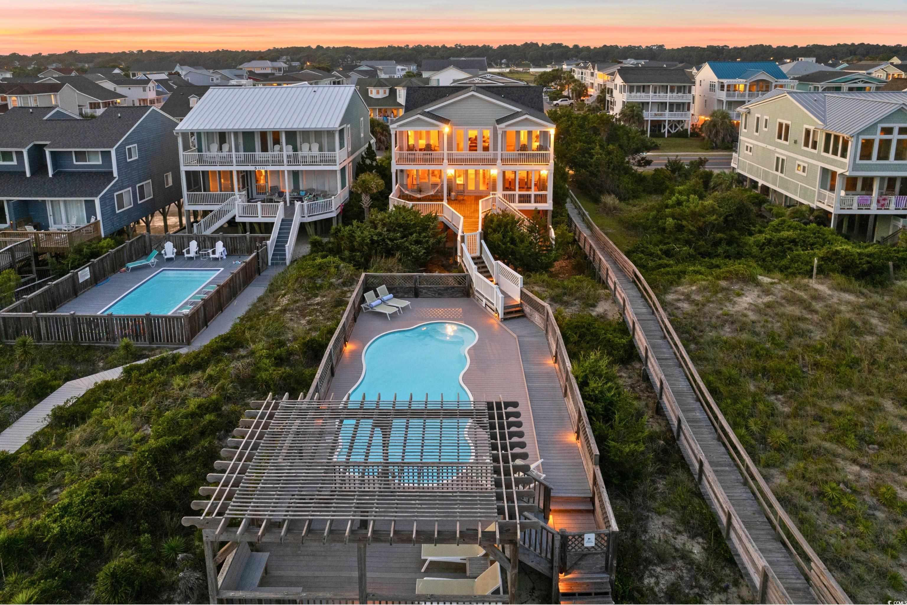 Experience Unmatched Coastal Living in This Breathtaking Oceanfront Retreat Welcome to this stunning 5-bedroom, 4.5-bathroom oceanfront home, perfectly positioned to capture sweeping, unobstructed views of the Atlantic. Elegantly redesigned and thoughtfully updated since 2013, this coastal sanctuary blends timeless style with modern durability—ideal for both peaceful retreats and unforgettable gatherings. Premium upgrades ensure comfort and confidence, including a hurricane-rated roof (2021), energy-efficient tilt-and-remove windows, Hardie board siding with added insulation, and brand-new HVAC systems (2025). Every detail has been meticulously considered. Inside, the fully renovated interior embraces a refined coastal aesthetic. The expansive main level features a light-filled great room that flows seamlessly into the dining area and chef's kitchen—leading out to a spacious second-level deck where 180-degree ocean vistas steal the show. Upstairs, a vaulted-ceiling lounge offers additional gathering space, complemented by three beautifully appointed bedrooms. The luxurious primary suite is a true escape, complete with a fully tiled spa-style bath, frameless walk-in shower, and tiled ceiling for a serene, elevated experience. Outdoor living is equally impressive: a private dune walk with gazebo overlooks the sparkling oceanfront pool, which features a new Hayward pump. A dedicated brick grilling patio with a Weber propane grill, landscape lighting, and oceanfront screened porch create the perfect setting for day-to-night relaxation. Enjoy easy access to the beach via a private sand path. Additional features include an outdoor shower, rinse station, and two secured storage areas for beach gear. Conveyed mostly furnished—including premium outdoor seating and poolside loungers—this turnkey home is move-in ready. While not currently in a rental program, it offers exceptional potential for income or personal enjoyment.