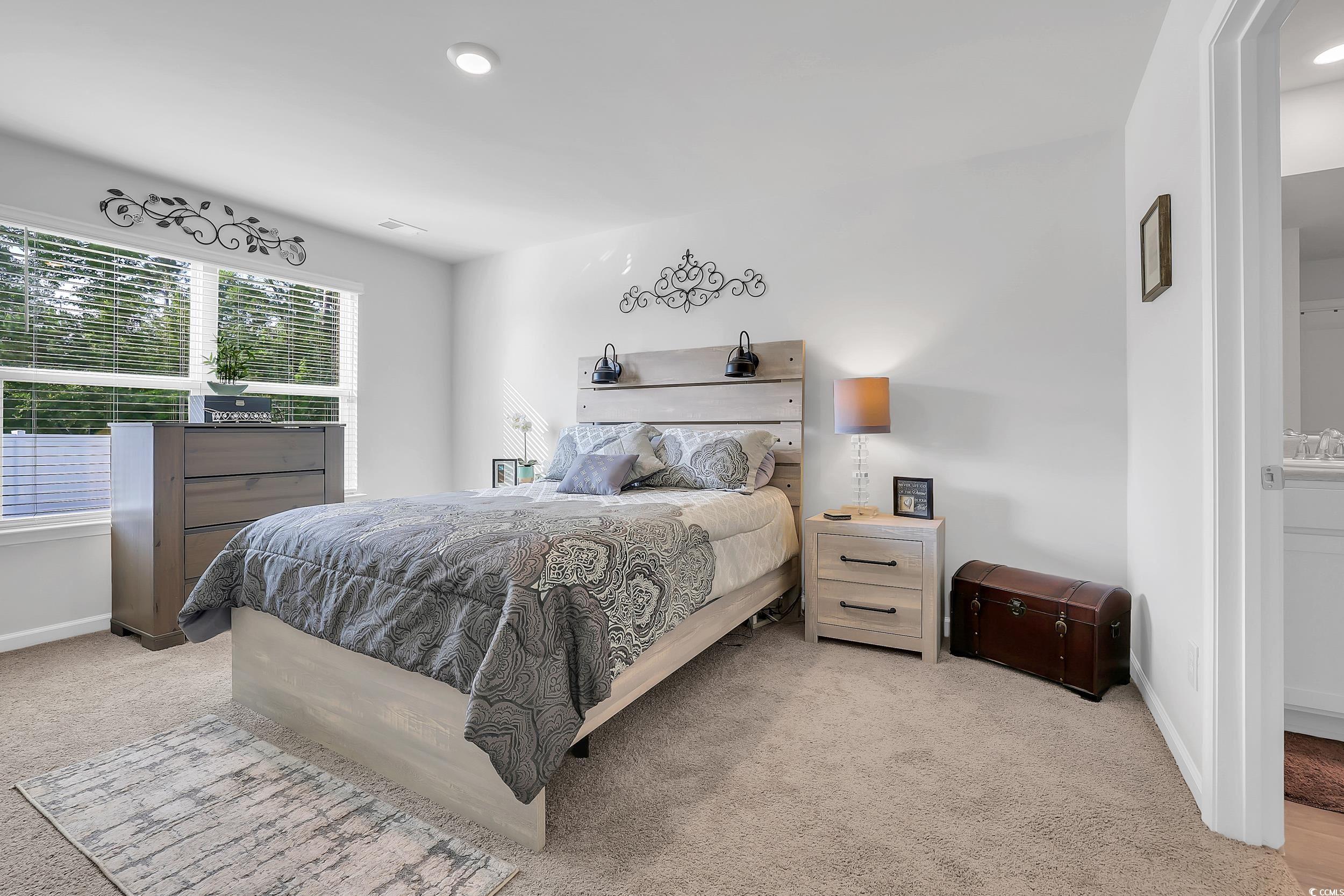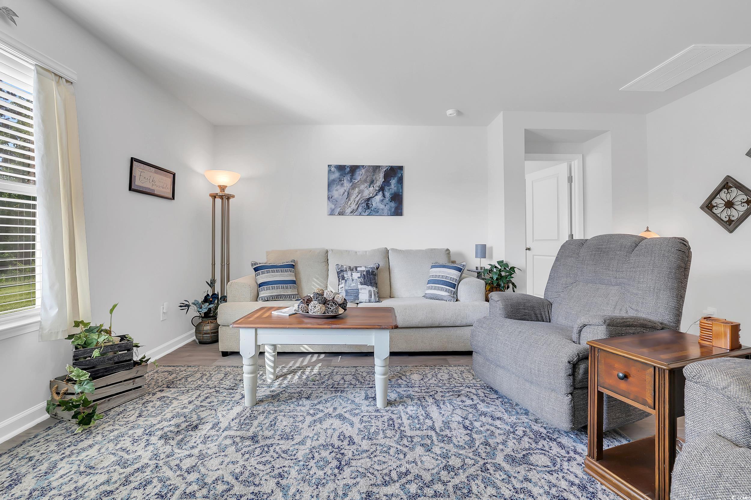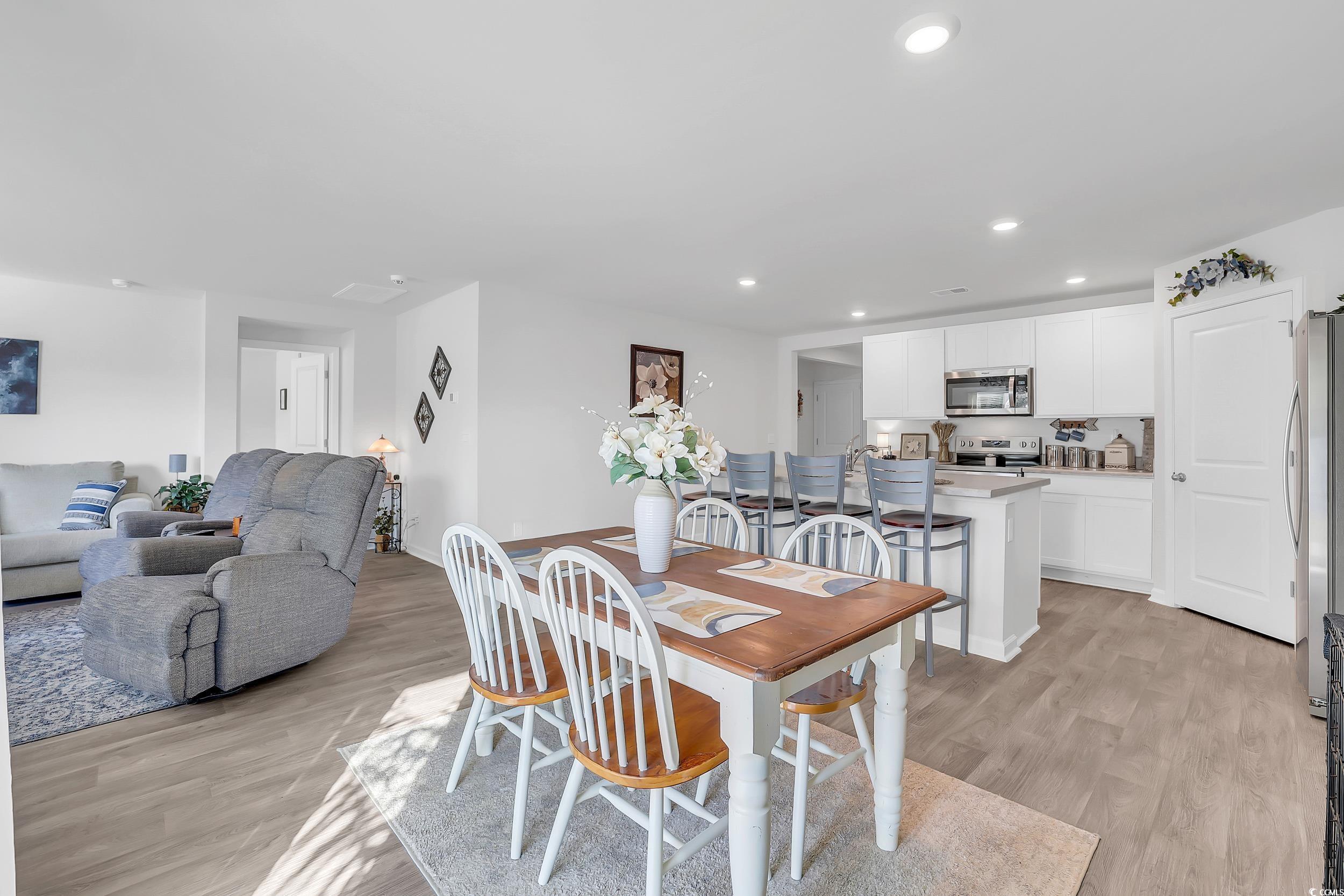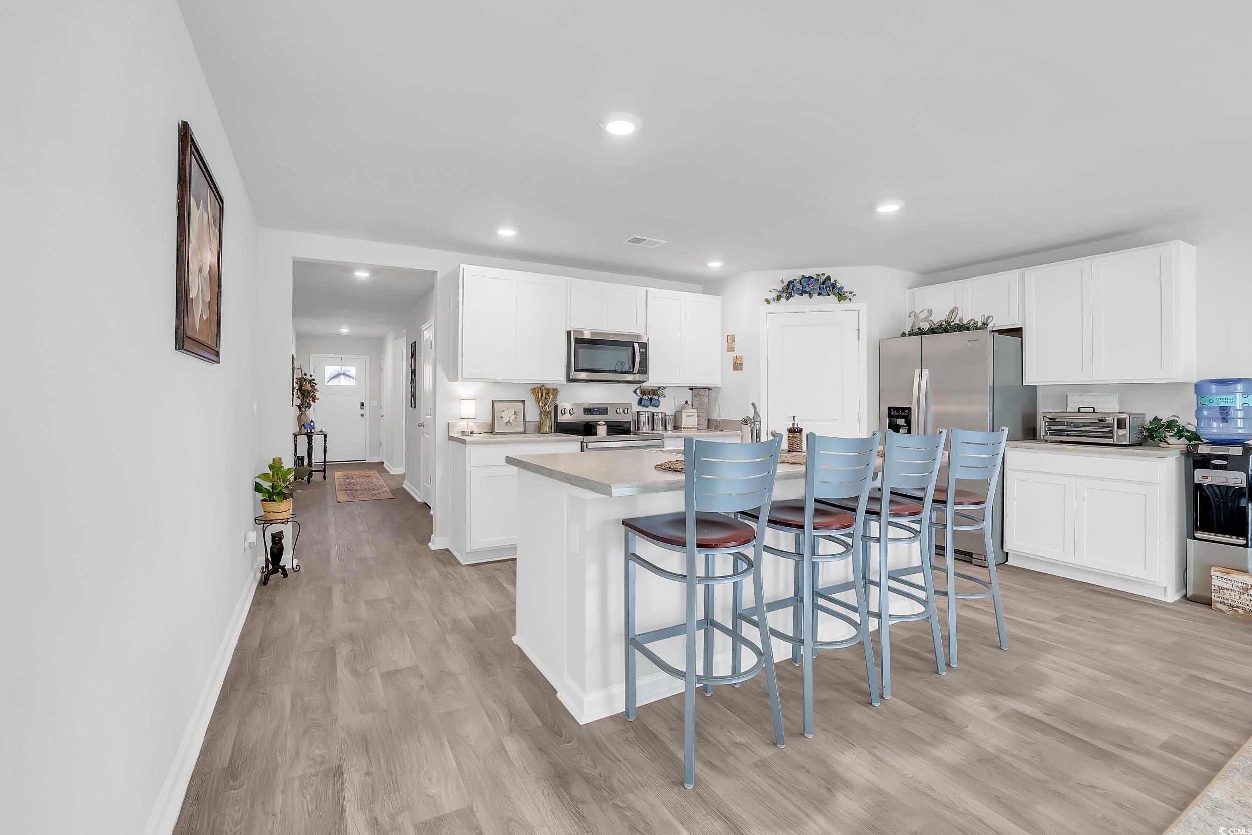 Welcome home! Tucked away in a peaceful cul-de-sac, this home offers privacy, charm, and the perfect location! This beautifully designed residence offers an open-concept layout that seamlessly connects the living room, dining area, and kitchen—perfect for hosting friends and family. The kitchen is a dream with stainless steel appliances, a walk-in pantry, an oversized island, and elegant pendant lighting. Durable and stylish vinyl flooring flows throughout the main living areas, baths, and laundry room. The private owner's suite is thoughtfully tucked away at the back of the home, featuring a spacious walk-in closet and a large bath complete with a double vanity, 5-foot shower, and linen closet. Enjoy the Carolina breeze from your covered back porch, ideal for relaxing afternoons or morning coffee. Blinds on all standard windows. Included are five indoor ceiling fans, an outdoor fan, satin chrome cabinet hardware for the kitchen and both bathrooms, and paint for the garage. Best of all, this is America's Smart Home! Stay connected and in control with an industry-leading smart home package that includes a video doorbell, smart thermostat, door lock, and front porch light—all accessible from your smartphone or with Alexa voice control. This home is ready for you—modern, welcoming, and designed for the way you live today!