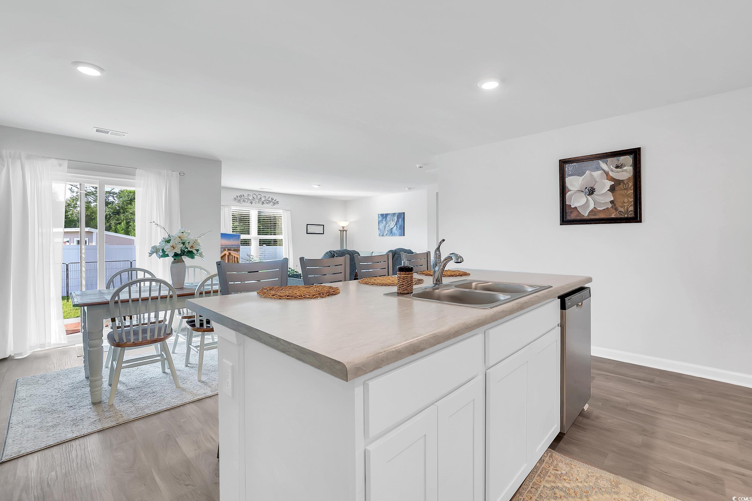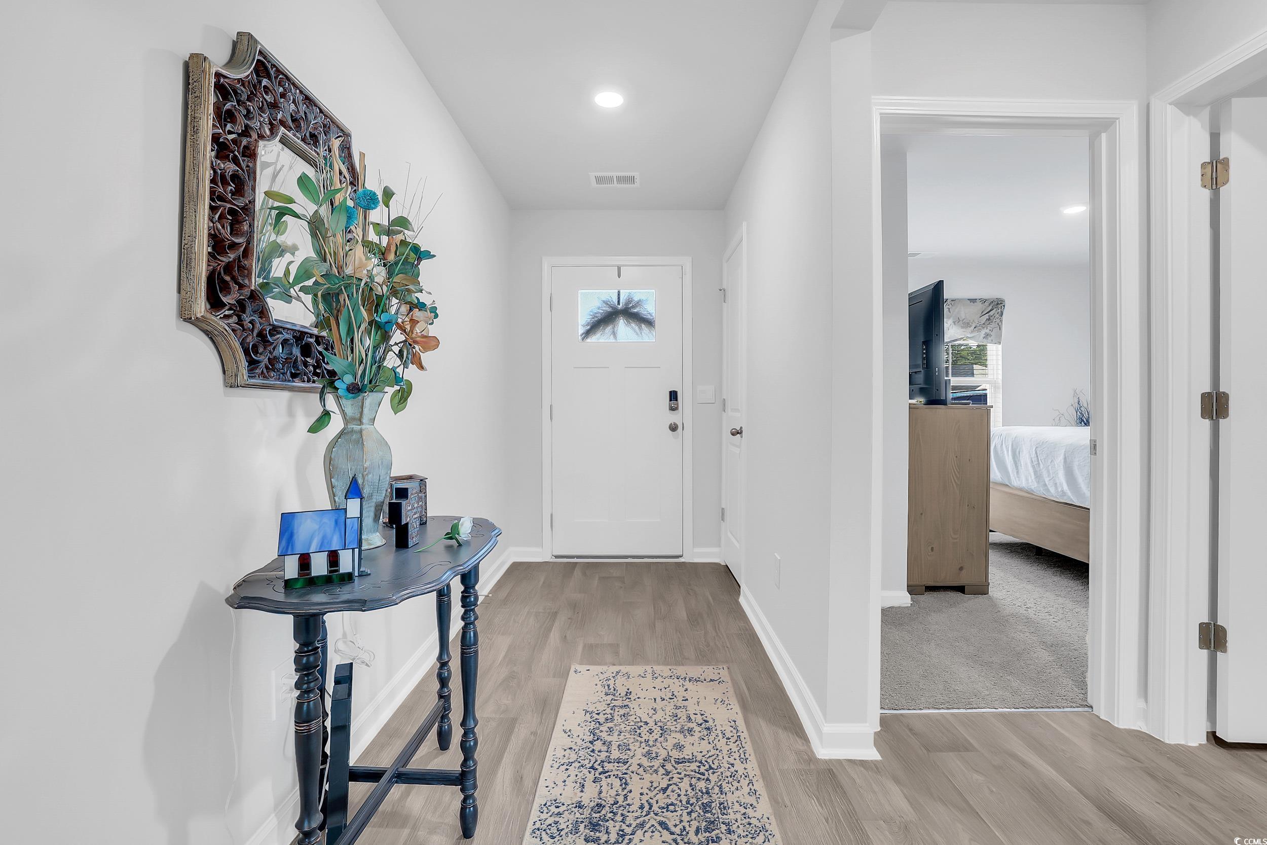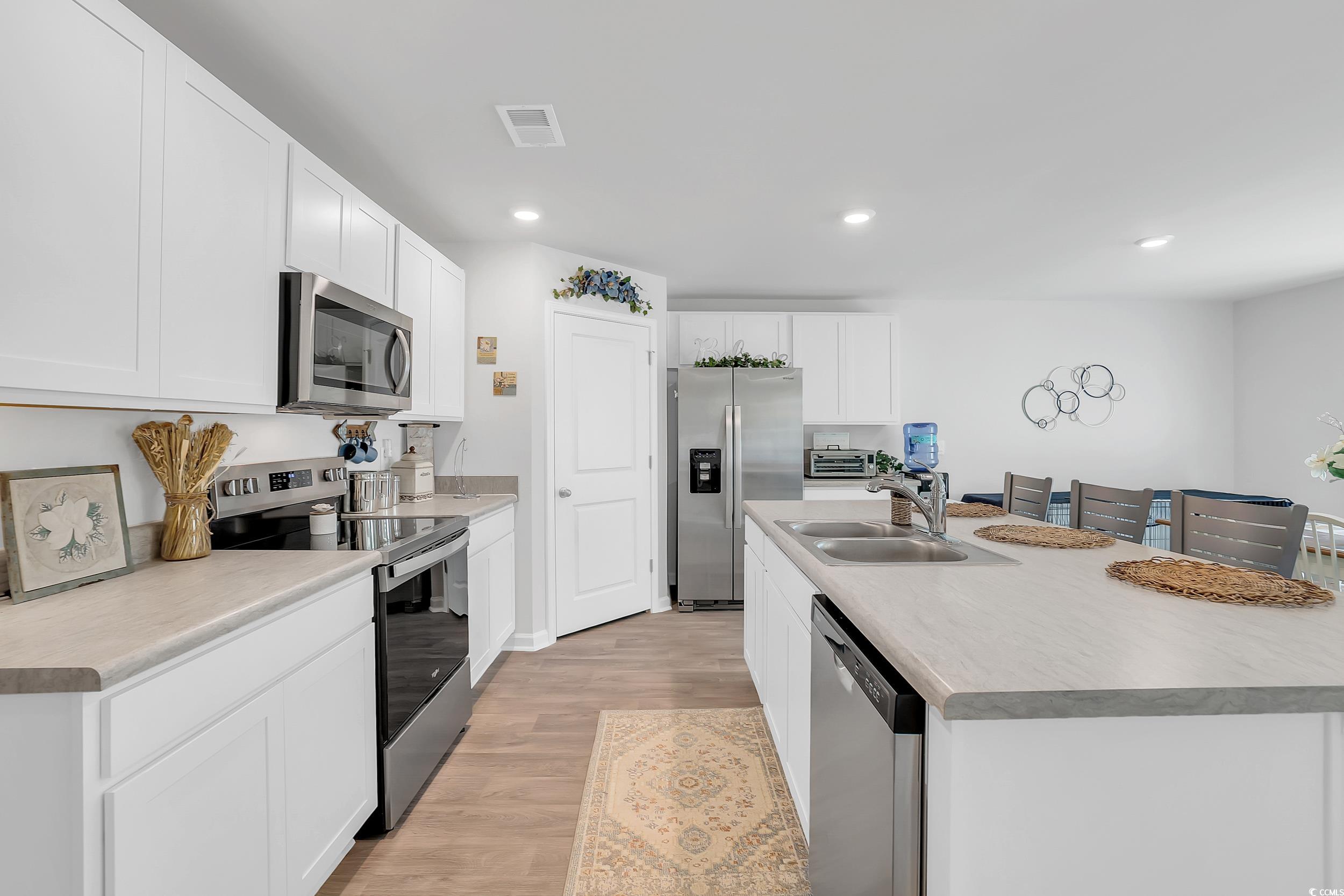 Welcome home! Tucked away in a peaceful cul-de-sac, this home offers privacy, charm, and the perfect location! This beautifully designed residence offers an open-concept layout that seamlessly connects the living room, dining area, and kitchen—perfect for hosting friends and family. The kitchen is a dream with stainless steel appliances, a walk-in pantry, an oversized island, and elegant pendant lighting. Durable and stylish vinyl flooring flows throughout the main living areas, baths, and laundry room. The private owner's suite is thoughtfully tucked away at the back of the home, featuring a spacious walk-in closet and a large bath complete with a double vanity, 5-foot shower, and linen closet. Enjoy the Carolina breeze from your covered back porch, ideal for relaxing afternoons or morning coffee. Blinds on all standard windows. Included are five indoor ceiling fans, an outdoor fan, satin chrome cabinet hardware for the kitchen and both bathrooms, and paint for the garage. Best of all, this is America's Smart Home! Stay connected and in control with an industry-leading smart home package that includes a video doorbell, smart thermostat, door lock, and front porch light—all accessible from your smartphone or with Alexa voice control. This home is ready for you—modern, welcoming, and designed for the way you live today!