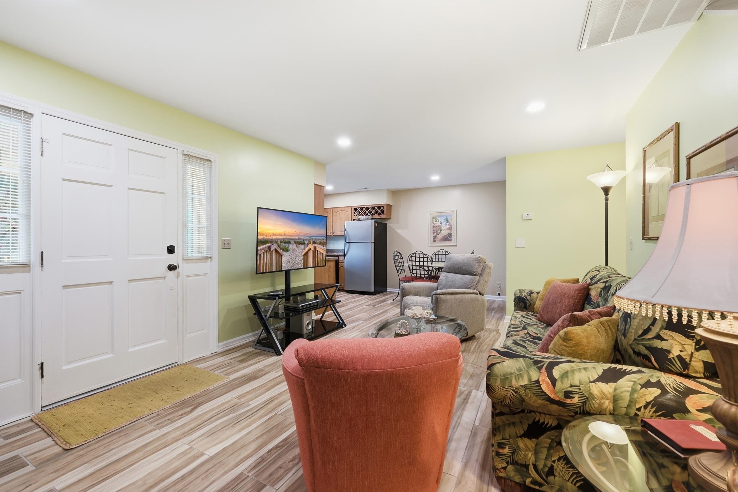 Rare opportunity to own a beautifully maintained end-unit townhouse in the heart of Ocean Drive—just ½ block from Main Street and all the restaurants, entertainment, and beach lifestyle that make North Myrtle Beach so special. And best of all… NO HOA. This 3BR/2BA home offers a flexible and comfortable layout with the primary bedroom on the main level, along with a private den featuring French doors that open to the rear patio—perfect for relaxing or entertaining. The main living area features luxury plank tile flooring, smooth ceilings, recessed lighting, and a cozy fireplace, all flowing together in an open living/dining/kitchen combination. The kitchen includes a deep double sink, and a mix of stainless steel and black appliances. All bedrooms feature walk-in closets, providing plenty of storage throughout. Enjoy the glass-enclosed front porch, rear patio, and a detached storage shed large enough to accommodate a golf cart—ideal for getting around Ocean Drive like a local. Upstairs, you’ll find two additional bedrooms and a full bathroom, offering great space for guests or family. This home is being sold fully furnished, making it an excellent option for a second home, beach getaway, or investment property. Major updates include a new roof (2023), new air handler (2025), water heater (2019), exterior paint (2021), and new gutters. Fresh interior paint and well-maintained T1-11 wood siding add to the home’s charm and durability. Properties like this—east of 17, this close to Main Street, and with NO HOA—rarely come available. Don’t miss your chance to own a piece of Ocean Drive.