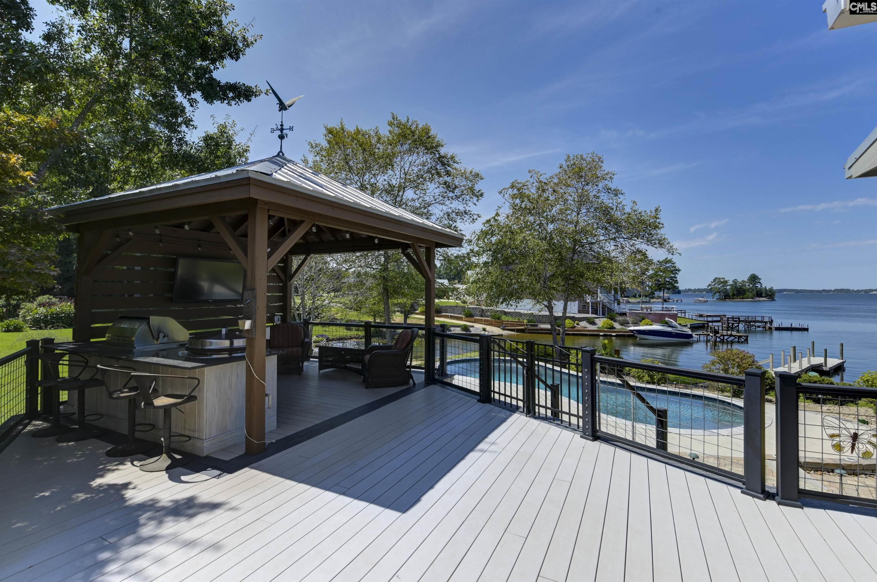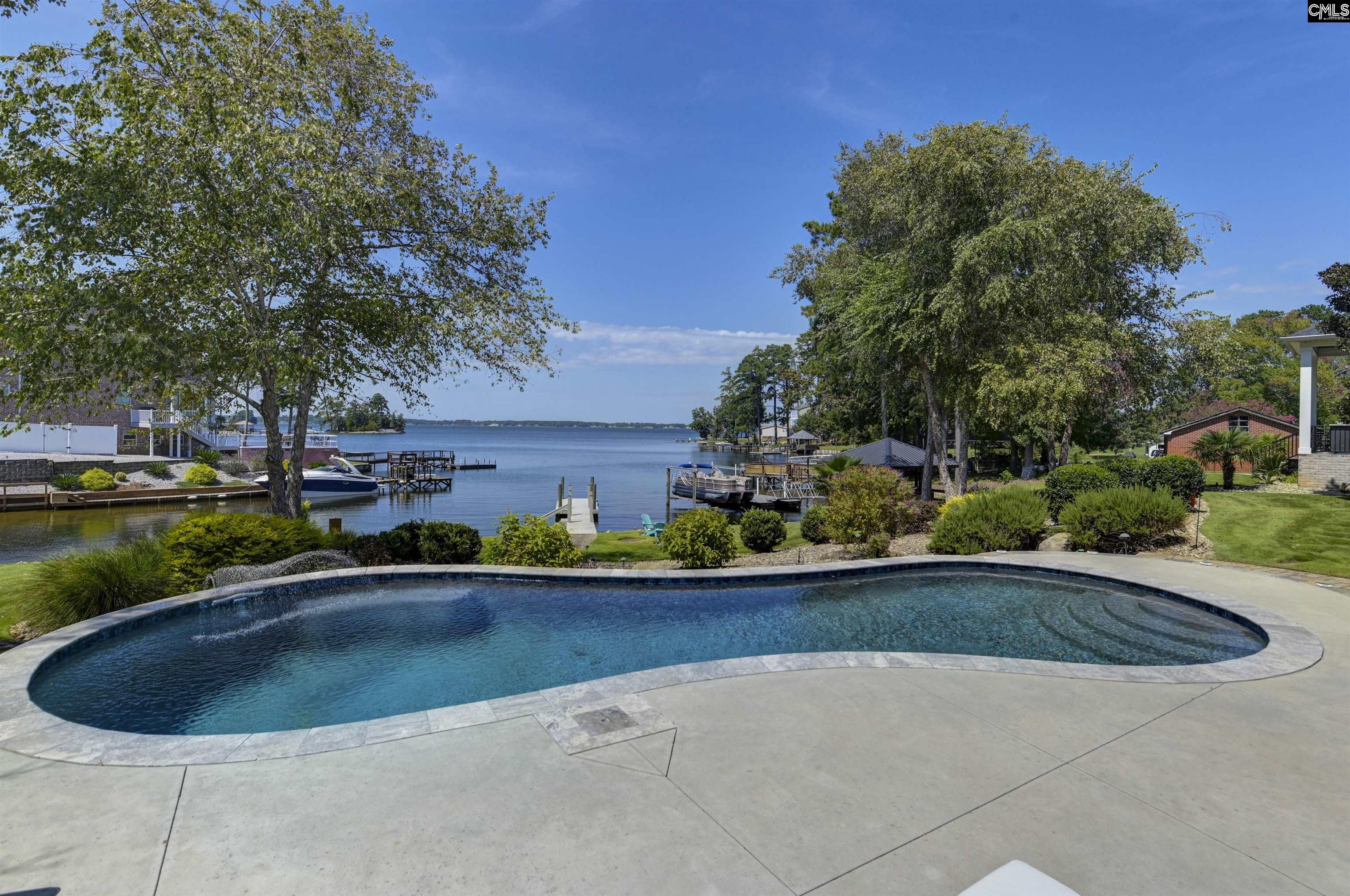 Spectacular “One of a kind” property on Lake Murray. Unmatched outdoor living areas, to maximize the lake living lifestyle! Private dock features the shelter of a cove, with the views of big water. The charm, character & unique interior is both inviting and warm. The great room and kitchen feature a dramatic vaulted metal ceiling & high end modern gas fireplace give off a cool urban vibe. This main living area opens to the screen porch which offers additional areas to enjoy the lake views and enjoy lakefront dining. Heart Pine flooring is found throughout most of the home, as well as the floating staircase to the second floor. The living room has incredible light, a tongue and groove vaulted ceiling, tile floor and opens onto the lakefront deck. Enjoy big lake views from every room. Gourmet island kitchen with leathered marble counters, stainless steel appliances, Induction cooktop, wine chiller, prep sink, as well as oversized workstation sink. Primary suite features a spa-like bathroom, with custom tile multi head shower, double vanity, separate water closet and walk in closet with washer/dryer conveniently located inside. Just off the primary suite is a hot tub to luxuriate in. The oversized second suite is on the second level, with lake views, vaulted ceiling, great natural light and a private bath with a soaking tub. There is a plan available to split this space into 2 bdrms. Designer neutral color palette throughout make this home easy to move into and enjoy from day one! You’ll love the number of areas to enjoy the outdoors, from the covered front porch, screened back porch, spacious lakefront decking, covered outdoor cooking area, gunite salt water swimming pool and patio, to the lakeside firepit area! A double bay garage, 400 sqft, with it’s own mini split unit, can make this space useable for much more than storing cars and tools. The property has lake fed irrigation, landscape lighting, mature landscaping and decorative iron fencing. This is a special lake property, like no others!Agent owned. Disclaimer: CMLS has not reviewed and, therefore, does not endorse vendors who may appear in listings.
