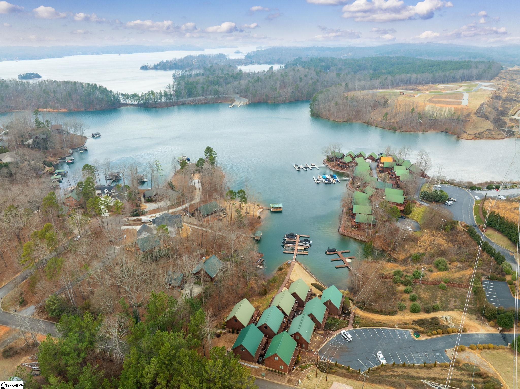 Stunning A-frame waterfront home located in a deep-water cove on Lake Keowee, showcasing the pristine emerald water and beautiful views of the Blue Ridge Mountains. Includes deeded boat slip (#8) with jet ski storage lift in place just steps away. The main level features an open floor plan with exposed wood beams, soaring cathedral windows, gas fireplace, luxury LVT flooring, and a kitchen with granite countertops and stainless appliances. Spacious primary suite on main with private bath. Upper loft bedroom includes its own full bath. Walk-out lower level offers room for 85” TV with built-in surround sound, two additional bedrooms, and a shared full bath. Both main and lower levels feature new Alta motorized blackout shades. Enjoy full-width decks on both levels plus a stone patio with brand-new 65” TV and gas fire pit — perfect for entertaining. Also included in this price is a buildable lot with deeded boat slip (#7). All furniture and hot tub negotiable with purchase. Rentals not allowed per HOA. Ideal for full-time living or a lake retreat — this one is a must-see.