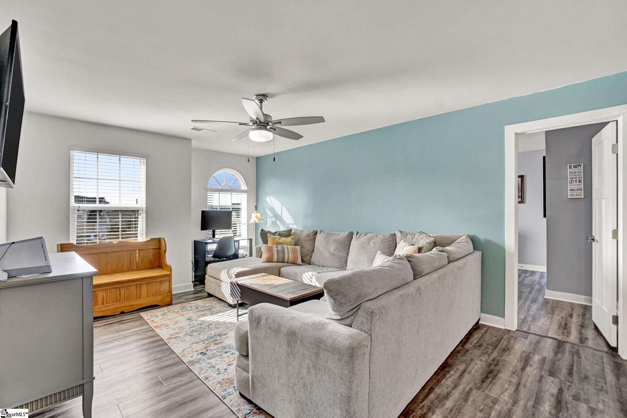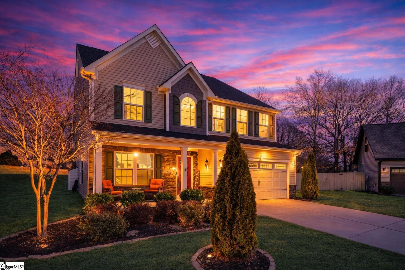 Some homes feel busy. Others feel calm. 113 Monocacy Way is the kind of place where life settles in easily. Tucked at the end of a quiet cul-de-sac and framed by mature trees, this nearly new home has been thoughtfully cared for and beautifully maintained. Stacked stone details give it charming curb appeal, and the front porch feels made for slow mornings, hanging ferns, and a pair of rocking chairs. Step inside and you immediately notice the clean lines and attractive flooring that carries throughout the home. There is no carpet in the family room or any of the bedrooms, a detail that adds both style and everyday practicality. Just off the entry, the front flex room is currently used as a home office, though it easily transforms into a study, homeschool space, creative room, or quiet retreat. Across from it, the dining room is being used as a workout space, a perfect example of how this floor plan flexes to meet real life. Whether formal dining, fitness, play, or work-from-home needs, these rooms adapt beautifully. The family room is light-filled and welcoming, designed for gathering and everyday living. A traditional ceiling fan has replaced the previous fixture, giving the space a timeless and comfortable feel as it flows effortlessly into the kitchen. The kitchen is both functional and inviting, featuring granite countertops, abundant cabinetry, and a generous work island with seating, the kind of spot where mornings begin with coffee and days are planned with ease. Just off the kitchen, the sunroom overlooks the private backyard and opens directly to the patio, making outdoor dining and grilling feel seamless. Outside, the yard offers space for pets to roam, children to play, or a swing set tucked beneath the shade of mature trees. The usable yard extends beyond the gentle slope, providing more room than you might expect at first glance. Back inside, a well-placed mudroom off the garage creates an ideal drop zone for daily comings and goings. Upstairs, all bedrooms are thoughtfully grouped for privacy and comfort. The guest rooms are well sized with ample closet space, and the guest bathroom includes double sinks. The primary bedroom is spacious and restful, complete with a private bath featuring a large walk-in shower with classic subway tile. With no carpet in the bedrooms, the home continues its low-maintenance, move-in-ready appeal. A large second-level laundry room offers additional storage and functionality, making everyday routines easier. The upstairs loft adds yet another layer of flexibility. This space can become a media room, game room, homework area, or simply a second living space where everyone can spread out and unwind. Located in The Oaks at Shiloh Creek, just minutes from Interstate access, 113 Monocacy Way offers easy commutes to Greenville, Anderson, and Clemson, all while being zoned for award-winning Anderson One schools. Powdersville continues to grow, with shopping, dining, and community amenities nearby, including the YMCA just a short drive up Highway 81. Well maintained, thoughtfully designed, and quietly versatile, this home offers the space, flexibility, and location today’s buyers are searching for. It is a place where daily life feels organized, comfortable, and just a little more peaceful.