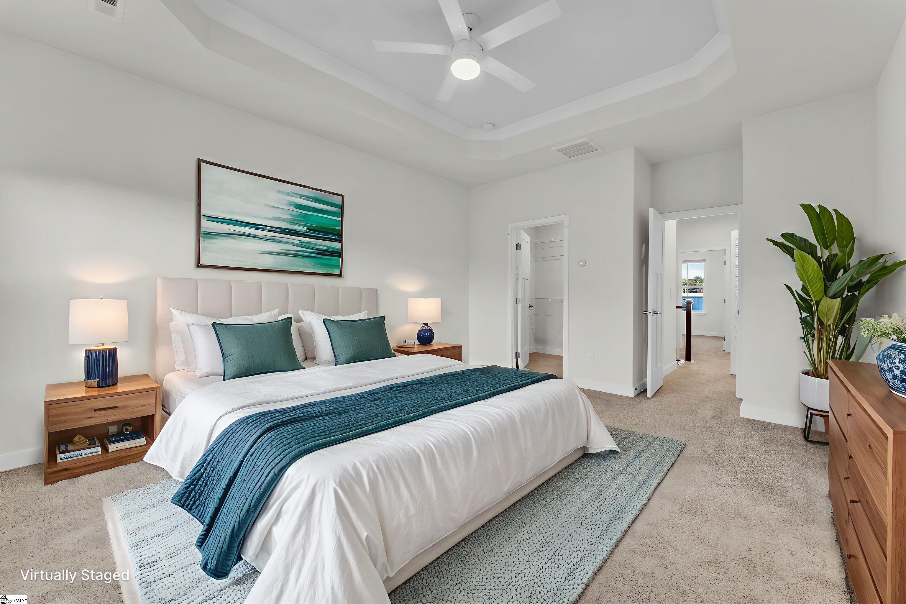 Ideally situated in one of Greenville’s most sought-after areas, this beautifully designed 4 bedroom, 3.5 bath townhome offers nearly 2,200 square feet and is located in the popular LAUREL CREEK RESERVE in Midtown Greenville. The SWAMP RABBIT TRAIL borders the community, providing easy access to walking and biking, as well as nearby parks, restaurants, coffee shops, breweries, and retail. Downtown Greenville, COSTCO, WHOLE FOODS, TRADER JOE’S, WOODRUFF ROAD shopping, and I-385 and I-85 are all just minutes away. The entry level garage level includes a two car rear entry garage, storage, a bedroom, and a full bathroom, making it ideal for guests, a home office, or workout space. The main living level features an open layout with LUXURY VINYL PLANK FLOORING, HARDWOOD STAIRS, high ceilings, and plenty of natural light. CUSTOM FABRIC SHADES are installed on all windows throughout the home. The kitchen offers QUARTZ COUNTERTOPS, a LARGE CENTER ISLAND, WHITE CABINETRY, STAINLESS STEEL APPLIANCES, and a GAS COOKTOP. All appliances convey, including the washer and dryer. A PRIVATE BALCONY is located just off the kitchen and dining area a PANTRY and half bath finish off this floor. On the THIRD FLOOR, you will find the PRIMARY SUITE, two additional bedrooms, and the LAUNDRY ROOM. The primary suite includes a TILED BATHROOM with a FRAMELESS SHOWER, GARDEN TUB, DOUBLE VANITY, and a spacious WALK-IN CLOSET. The remaining bedrooms and hallway on this floor feature CARPET. Community amenities include a DOG PARK, PAVILION WITH FIRE PIT, and direct access to the SWAMP RABBIT TRAIL. LAUREL CREEK RESERVE is a quiet, well-located community and truly one of VERDAE’S hidden gems a MUST SEE.