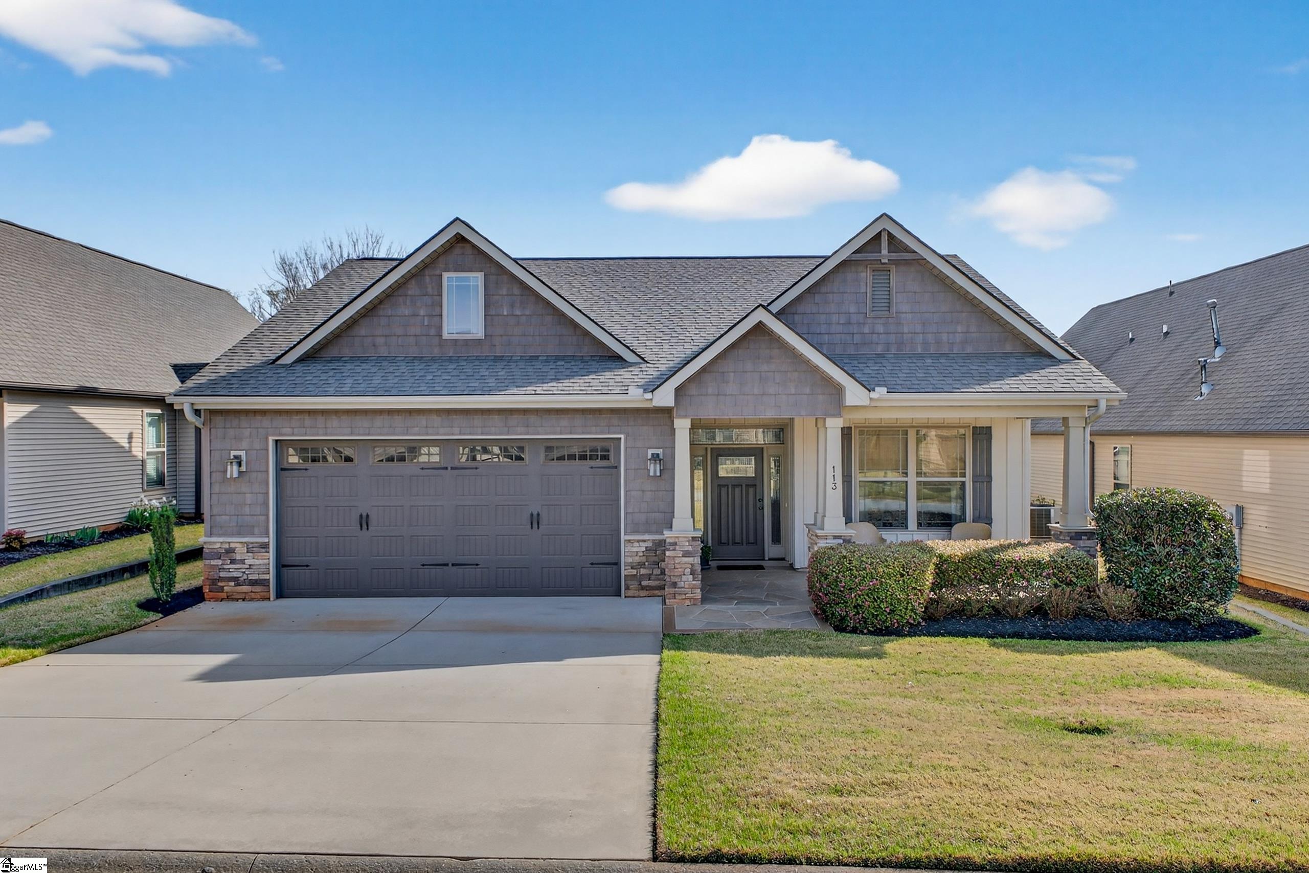 BEAUTIFUL WATERSTONE COTTAGE - You will love coming home to this 4 bedroom, 3 bath CRAFTSMAN COTTAGE in the lovely neighborhood of Waterstone Cottages. This low maintenance home strikes the perfect balance of beauty and ease of single level living with the flexibility of additional living space and storage upstairs. Beginning with the lovely front porch with stamped concrete and continuing inside the OPEN FLOOR PLAN. The main level features a large living room and the dining room convenient to the well appointed kitchen with upgraded cabinets, island with seating, QUARTZ countertops, tile backsplash, and stainless steel appliances. The MAIN LEVEL MASTER SUITE includes a spacious walk-in closet, double vanity, and a LARGE TILE SHOWER and soaking tub. The second and third bedroom and full bath are also on the main level. Upstairs you will find a lovely forth bedroom with a large closet and full bath. The huge loft bonus room can be used for so many hobbies or an additional living space or media room. The screened porch with a ceiling fan and tile flooring is perfect for relaxing or entertaining. Outside you will enjoy the professionally manicured and maintained lawn. Waterstone Cottages is a wonderful, low maintenance neighborhood conveniently located between Pelham Road and Roper Mountain Road for quick access to shopping and restaurants. Enjoy a walk on the neighborhood WALKING TRAIL or go across the street to PITTMAN PARK. Zoned for AWARD-WINNING SCHOOLS. The neighborhood amenities include LAWN CARE and LANDSCAPE MAINTENACE. You will not be disappointed when you make this house the top of your list. COME SEE THIS BEAUTIFUL WATERSTONE COTTAGE TODAY!