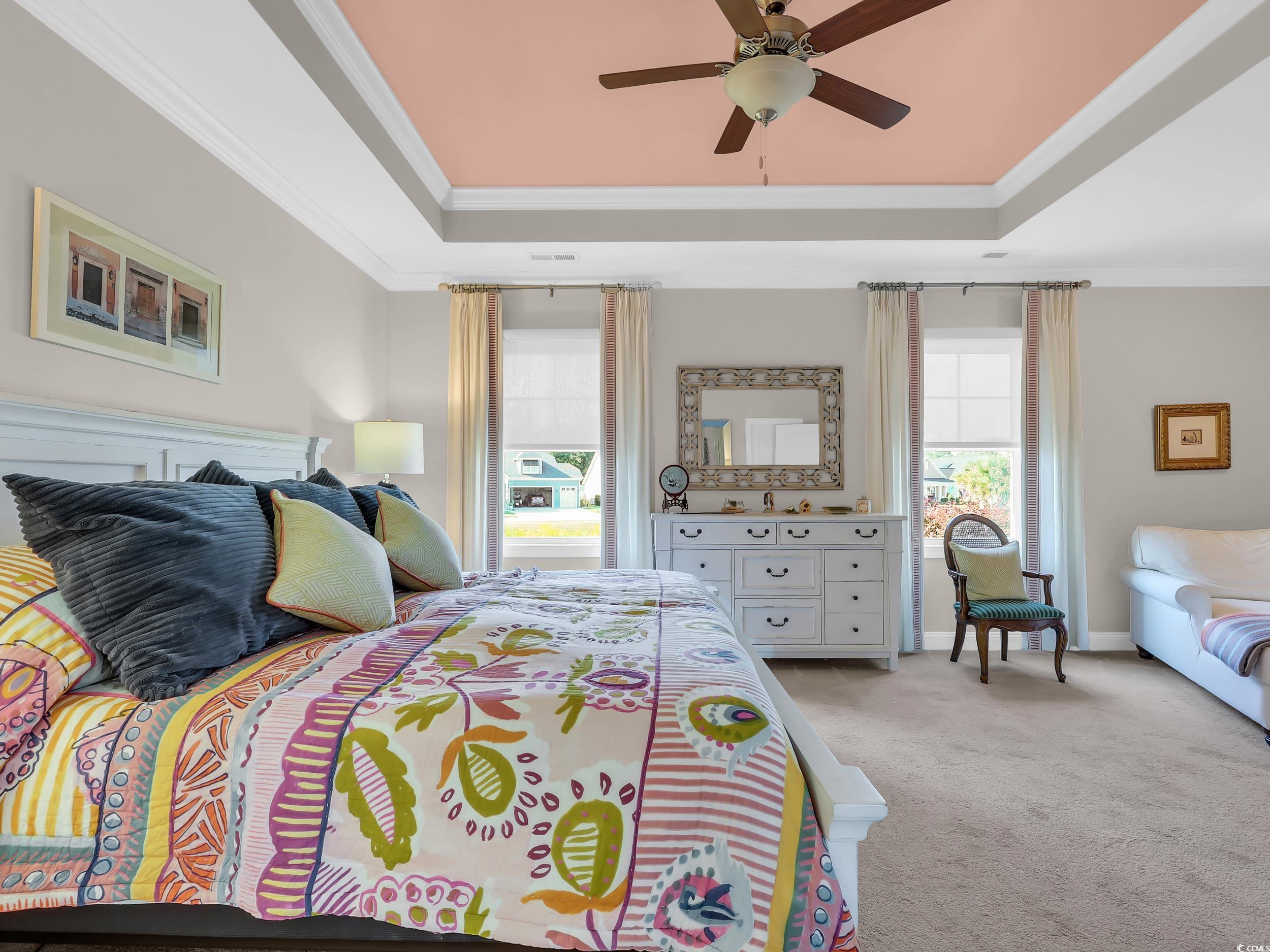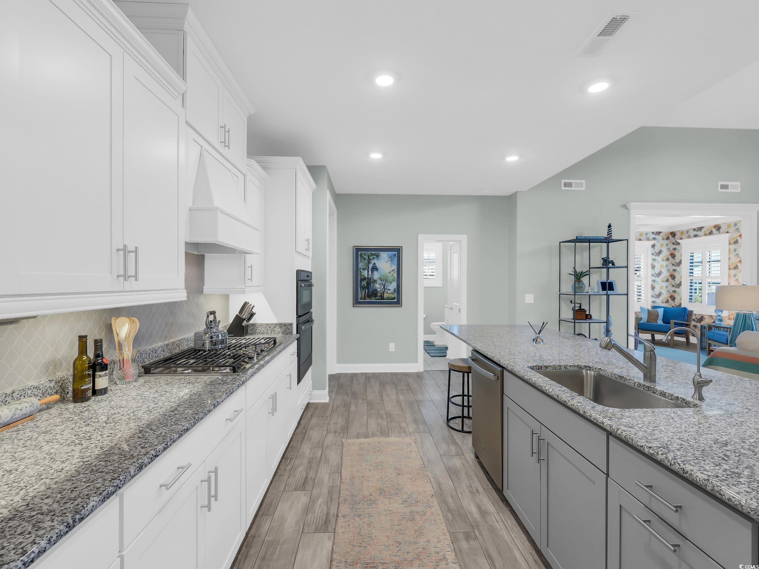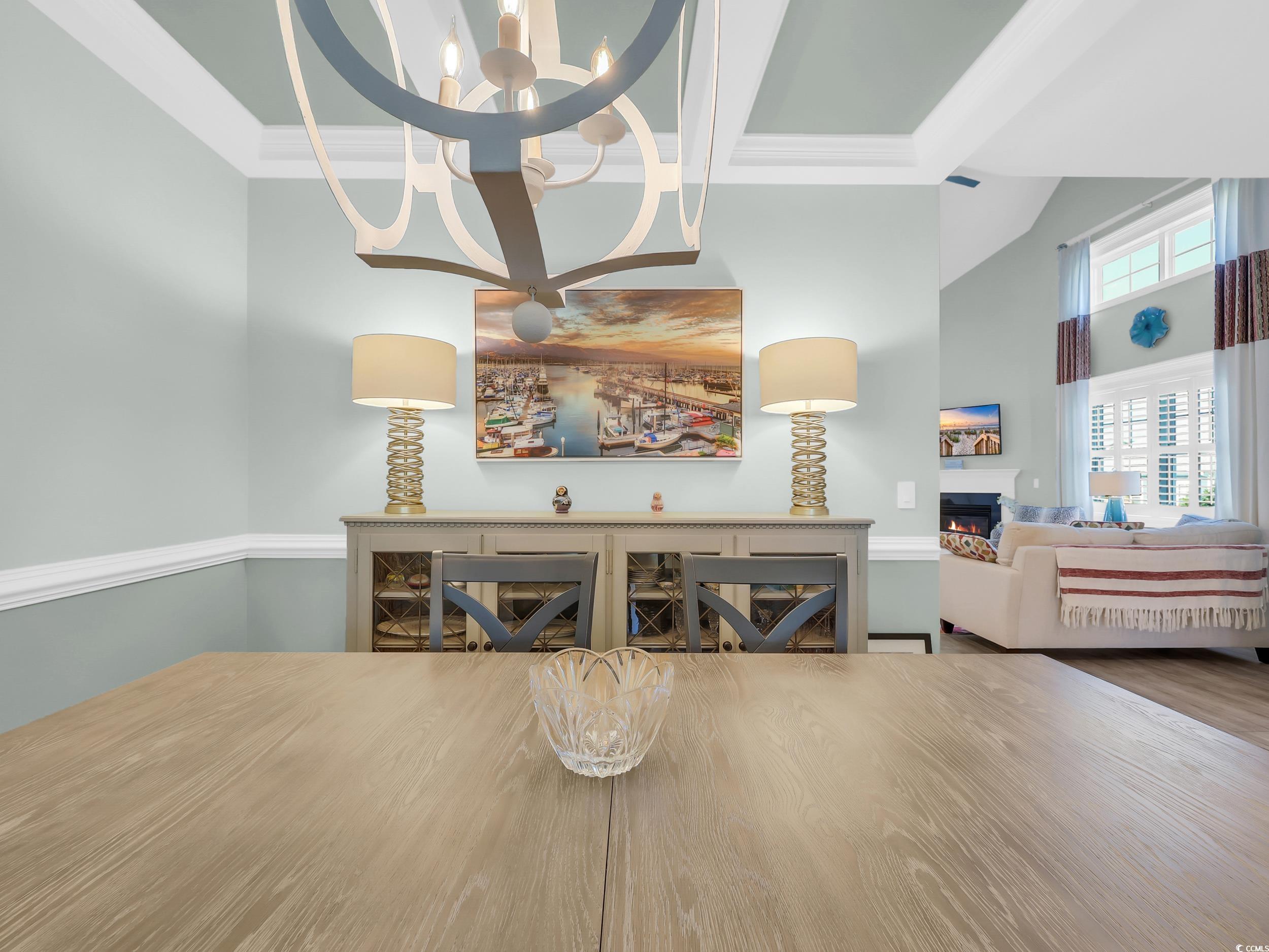 Welcome to 1135 Doubloon Dr. in the highly desired community of Robbers Roost in North Myrtle Beach! This 5 bedroom, 3.5 bathroom home with Sunroom/Carolina Room extension is overflowing with features and accents that make it unique and enticing. As soon as you enter the foyer you immediately notice several features including the dining room with coffered ceiling, stairwell, and living room leading into the kitchen. This open floorplan continues into the open kitchen/living room area with fireplace feature wall and wood beam mantel, natural gas cooktop, granite countertops, under mount lighting, gourmet kitchen with wall oven microwave combo, range hood and plenty of cabinet storage with a massive kitchen island. In addition there is a reverse osmosis water purification system to ensure pure drinking water in the kitchen and a Kinetico whole home water softener & declorinator. LVP flooring throughout the home with carpeting in the bedrooms for maximum comfort and tiling in the bathrooms. Tray ceilings in the primary bedroom as well as a double vanity in the primary bathroom continue the trend of luxury in the home. The backyard oasis features a private screened porch that leads right onto the pond and fountain for gorgeous and relaxing views. 2.5 car garage for extra storage with built in cabinetry, painted walls, epoxy flooring, tankless gas water heater. Home is run on natural gas for your cooktop, heat, tankless water heater. This home also comes equipped with a whole home generator which powers everything in the home including two AC systems. Robbers Roost is located close to shopping, Publix, Walmart, Home Depot, Golfing, Bars, Restaurants, Main Street Festival Events by just a short drive or golf cart drive. As a resident of Robbers Roost you can enjoy the community pool, sidewalks, and easy access to everything located in the Heart of North Myrtle Beach. Golf cart or walking distance to restaurants, bars, the Beach, banking, North Myrtle Beach School District all with Low HOAs!