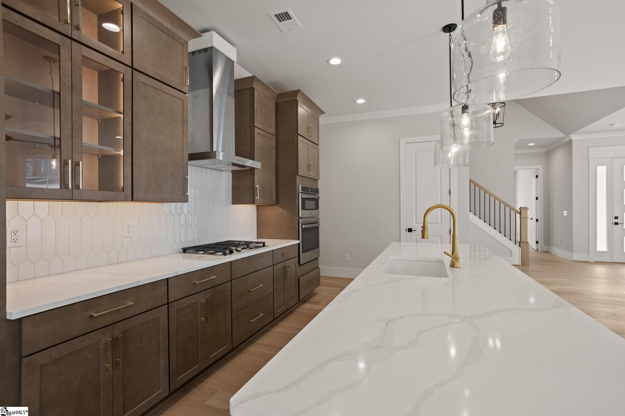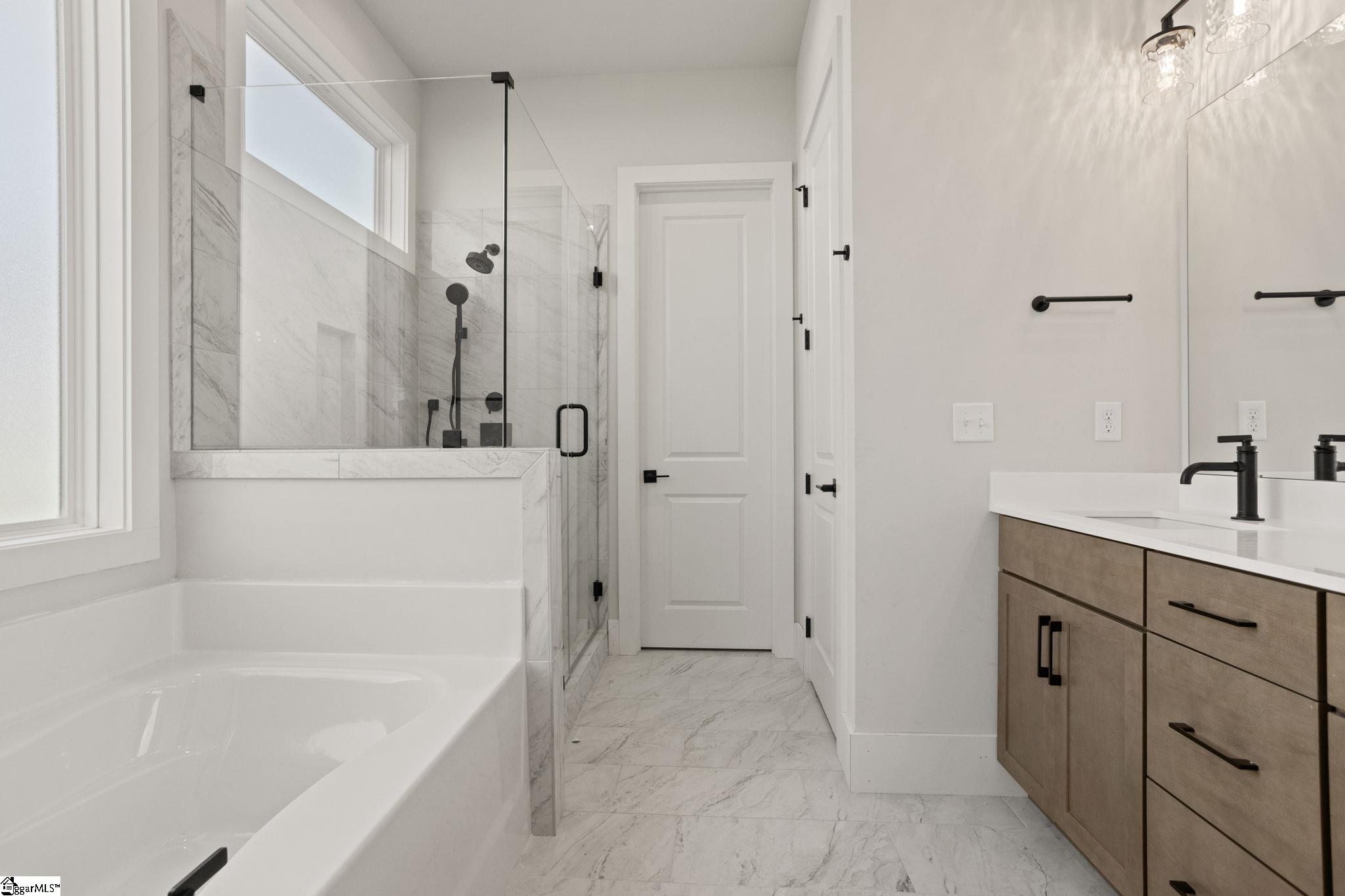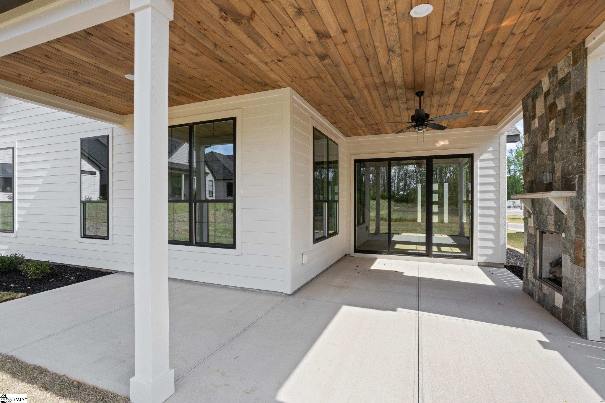 Welcome to Manegate Cottages: A brand-new Rosewood Community neighborhood in Greer, South Carolina. The Polar floor plan offers four bedrooms and three full baths! The primary suite and an additional bedroom and full bath are on the main level. The 10' ceilings and large windows offering an abundance of natural light welcome you into this open and airy home! The living and dining rooms all flow seamlessly into the large and open kitchen. The kitchen features an extra long quartz island, upgraded cabinets for plenty of storage, a timeless backsplash and a walk in pantry. The spacious primary bedroom's bath includes a double vanity with upgraded cabinets, a gorgeous separate tub and beautifully tiled shower. You will notice the gorgeous hardwood flooring flows throughout the living areas, primary bedroom and second bedroom. The focal point of the living area is the gorgeous floor to ceiling tile surrounding the gas fireplace! The living room flows directly out to the large covered patio, also with a stunning gas fireplace that provides extra living space year round! Upstairs you'll find two large bedrooms with a full shared bath with upgraded cabinets and a tiled shower and garden tub combination. Centrally located upstairs is an open loft area with remote controlled skylights for extra natural light. This is a perfect space for an extra den or office! All homes in Manegate Cottages will have lawn and landscape maintenance included in the monthly HOA fee. Manegate Cottages is a thoughtfully designed Rosewood Community offering modern homes with open floor plans, top-tier finishes and low-maintenance living at its finest. Conveniently located between Greenville and Spartanburg and and only a short drive to the Five Forks shopping area of Simpsonville or the Greenville - Spartanburg International Airport!