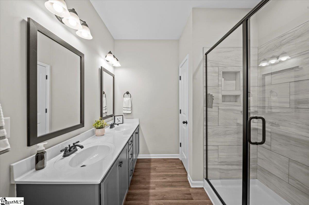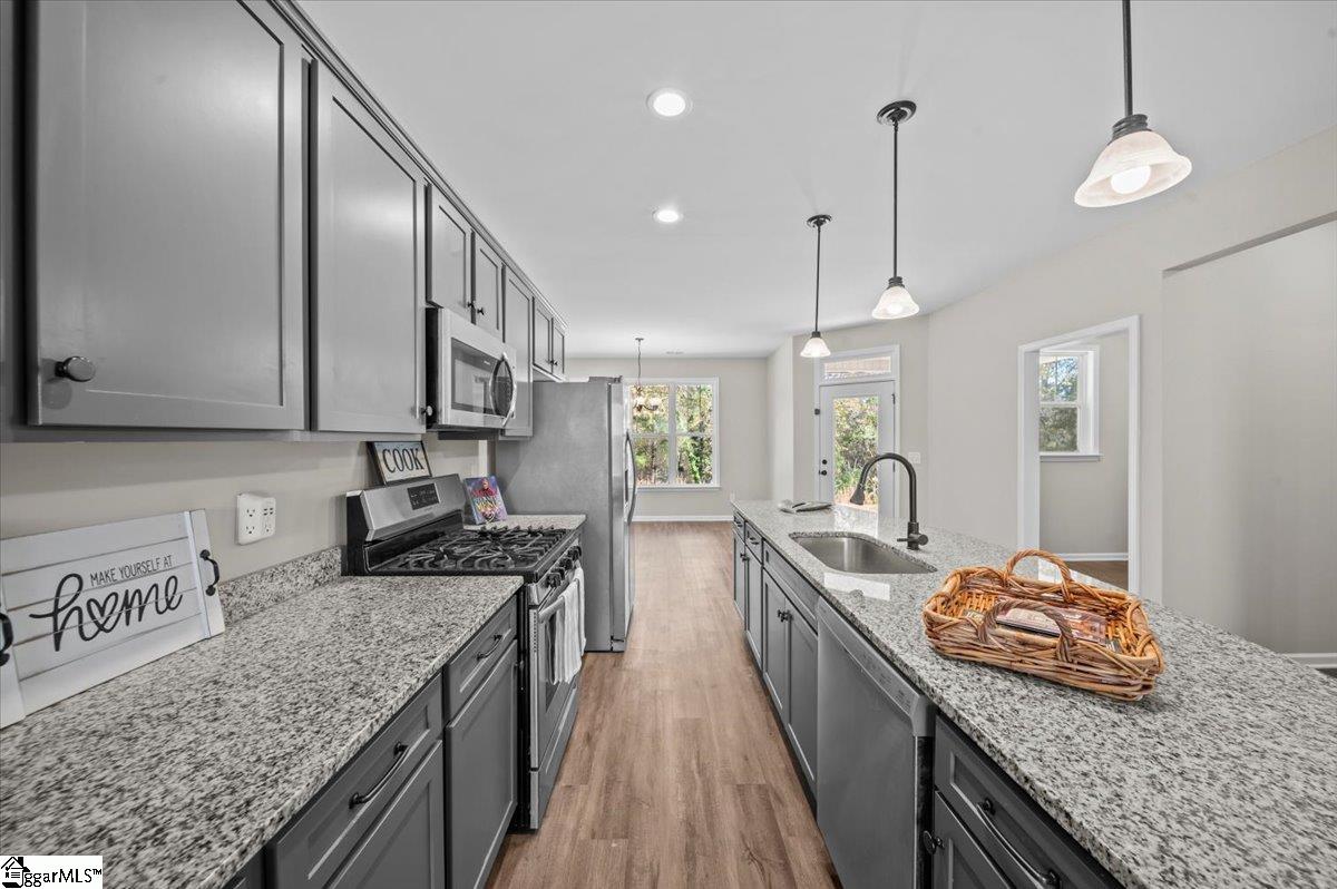 Lake Location! Lake Location! Lake Location! This interior lake lot is minutes from the water! With its improved price, it can't be beat! Welcome to this beautifully designed single-family, like-new home, nestled on a serene interior lot near lake Hartwell, just 1/2 mile from a boat ramp. This two-story gem boasts four bedrooms, two and a half baths, has no HOA or restrictions, and a layout that combines comfort with stylish practicality. Step inside and you’ll find a spacious office right off the kitchen, perfect for working from home or managing household tasks in a quiet space. The kitchen flows seamlessly into an open great room and dining area, making it a perfect hub for gatherings and everyday living. The primary bedroom is conveniently located on the main level, featuring a generous walk-in closet, an en-suite bath with dual vanities, a garden tub, and a private water closet, which provides easy access to all of the home’s main amenities. Upstairs, there’s a versatile flex room—ideal for a playroom, media area, or extra entertaining space. Additionally, there are three spacious bedrooms, each with a generous closet for storage, and a centrally located full hall bath. Additional attic storage is conveniently located off the upstairs bedrooms. Outside, there is a covered porch leading to the backyard, which offers a lovely level area, perfect for outdoor activities, as well as an additional wooded section that backs up to a serene private farm, offering both tranquility and privacy. This home truly offers a blend of elegance and everyday convenience, conveniently located near lake Hartwell for easy access to lakeside activities, as well as a short distance to Downtown Anderson or to access I-85. This modern, well-built home would be the perfect place to call your "Home Sweet Home"!