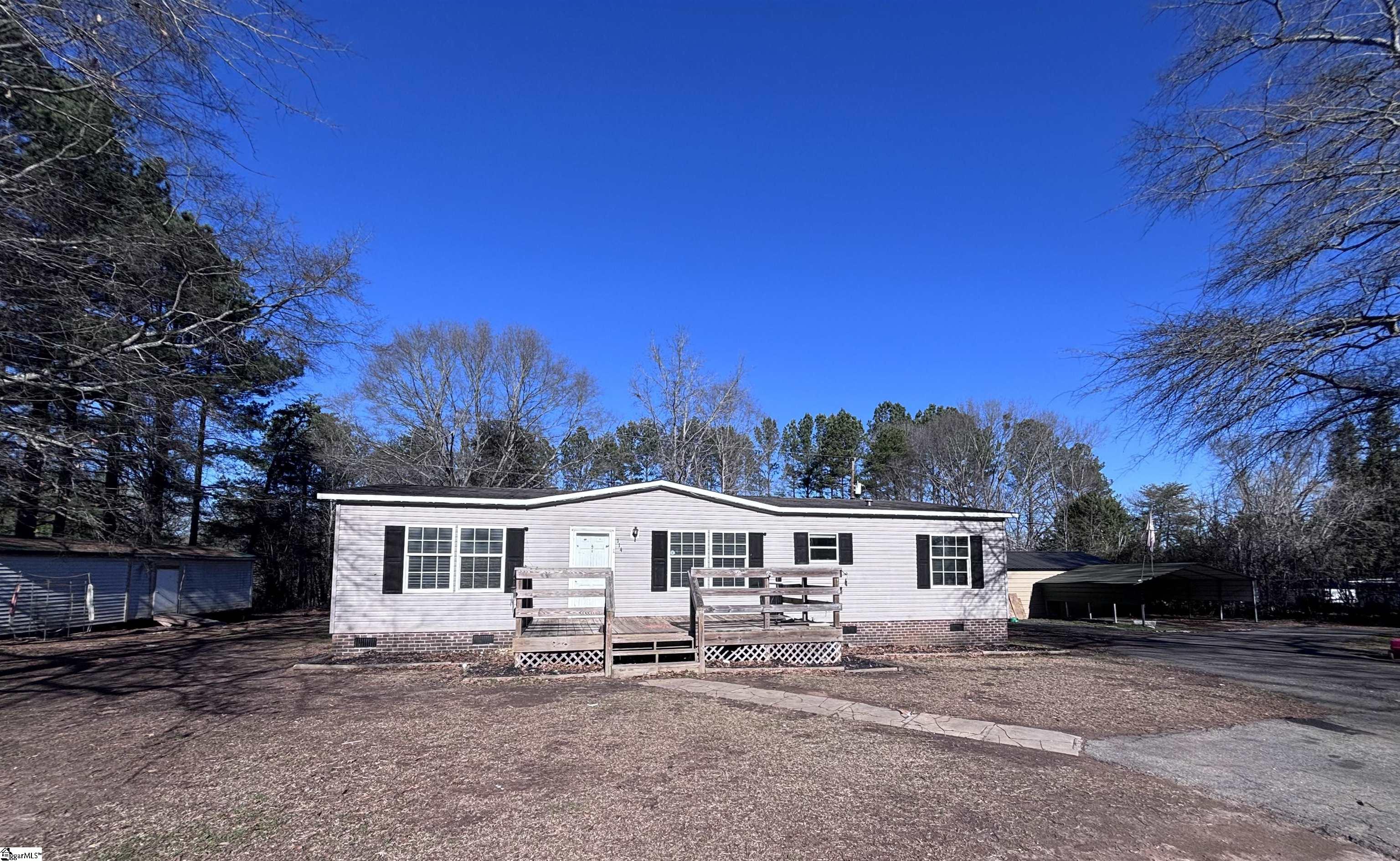 Looking for an affordable home on a permanent foundation with no HOA, on over an acre of land, with a large detached workshop and garage space, with an additional huge storage building with electricity that could easily be used for storage, home office, small business, man cave, or whatever you can imagine for the space. Located on a quiet rural road in Chesnee SC, however you are just over an hour to Charlotte NC, less than an hour to Greenville SC, less than 5 minutes to shopping and restaurants, but have peace and serenity on your unrestricted and over an acre lot. There is also a double carport, great for parking your boat, RV, or other recreational vehicles. The home itself features a spacious kitchen with stainless steel appliances, a split floorpan with master bedroom on the main level with a bathroom en suite and sizable walk-in closet. The two other bedrooms offer a great space as well with a shared full bathroom. The living area is a great space and the gas fireplace serves as a focal point. The back yard is huge and mostly level and features a massive back deck perfect for entertaining guests and cook outs. While the home needs some updates, with a small renovation this could be your dream home! Be sure to schedule your showing today as this home is priced to move. *Home warranty included*