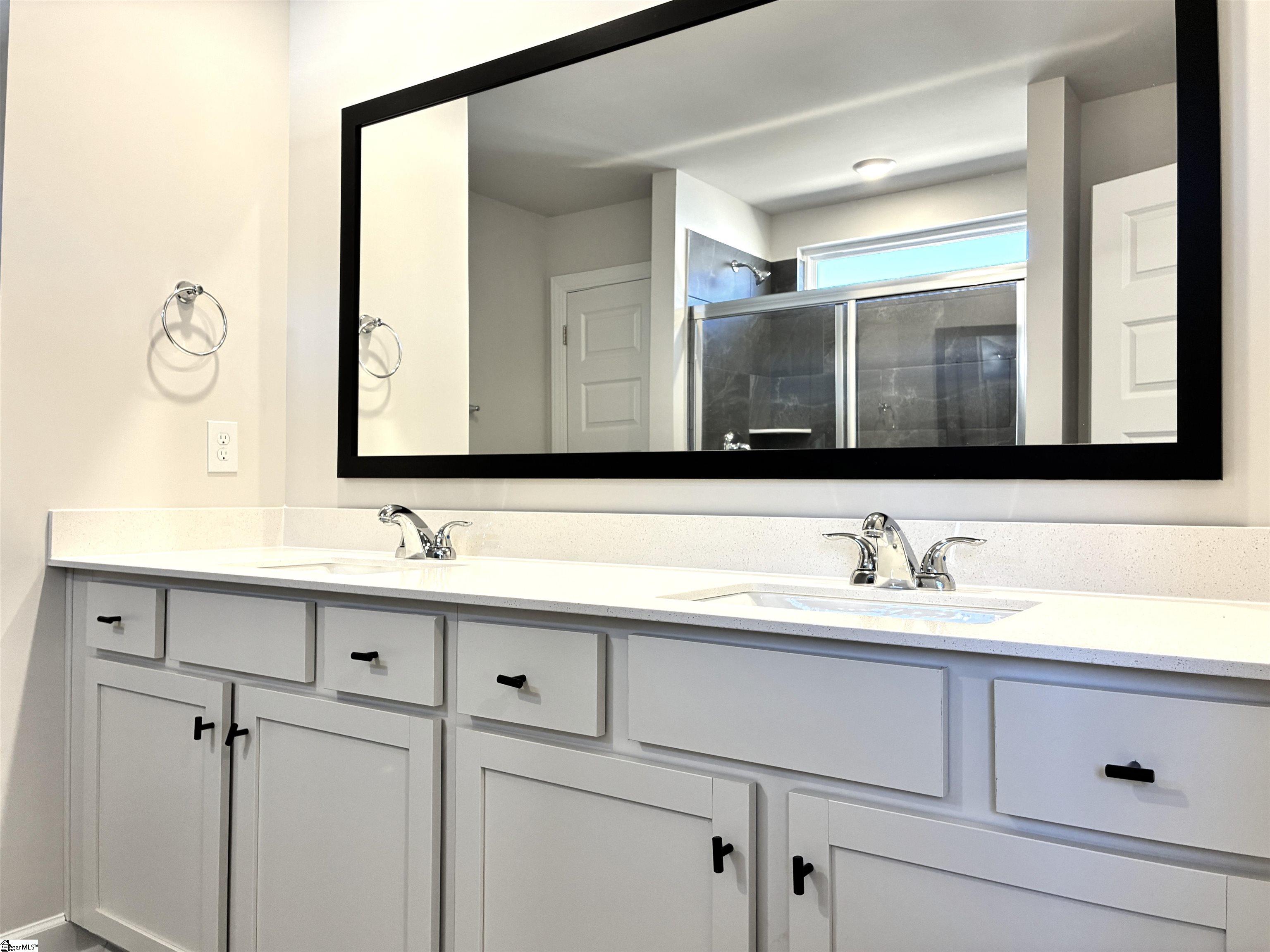 This home has a walk-up Self-Tour option. Move in Ready. Welcome to your Chicago style custom-curated home. This spacious Kensington plan by Cothran Homes has a lovely living room with fireplace that leads right into the open concept kitchen and dining area. Fulton Shell shaker style cabinets, Matt Black cabinet hardware, Carrara White Quartz countertops, over island pendant lights, under cabinet lighting and spacious center island make this charming and inviting kitchen the place to be. Enjoy cooking on your GE Stainless gas range and whip up a meal so tasty your family will be talking about it for days. Kitchen also includes GE Stainless above-the- range microwave, dishwasher and refrigerator. 3 Bedrooms, 2 ½ baths, includes 5” wide Polaris Ashen Brown luxury vinyl plank flooring throughout 1st floor main living areas and Shaw Midway Plaza Pebble Creek carpet with 8lb pad in second floor bedrooms and loft. Spacious Owner’s bedroom with LED disk lights, Minka ceiling fan, tray ceiling and walk- in closet. Stunning en-suite includes Sandstone Graphite tiled walk-in shower, Fulton Shell double vanity with Frost White Quartz top, Matt Black hardware, white undermount sinks and linen closet. Second floor Loft is perfect to set up as a Study/Den for those cozy family movie nights. Second floor laundry room includes Washer/ Dryer hookup and shelving for all your laundry accessories. The rear covered porch is the perfect spot to do some outdoor entertaining. And last, but not least, Sherwin Williams City Loft interior wall paint, 2” White Blinds, living room LED disk lights and Minka ceiling fan add the perfect final touches to complete this move-in -ready home.