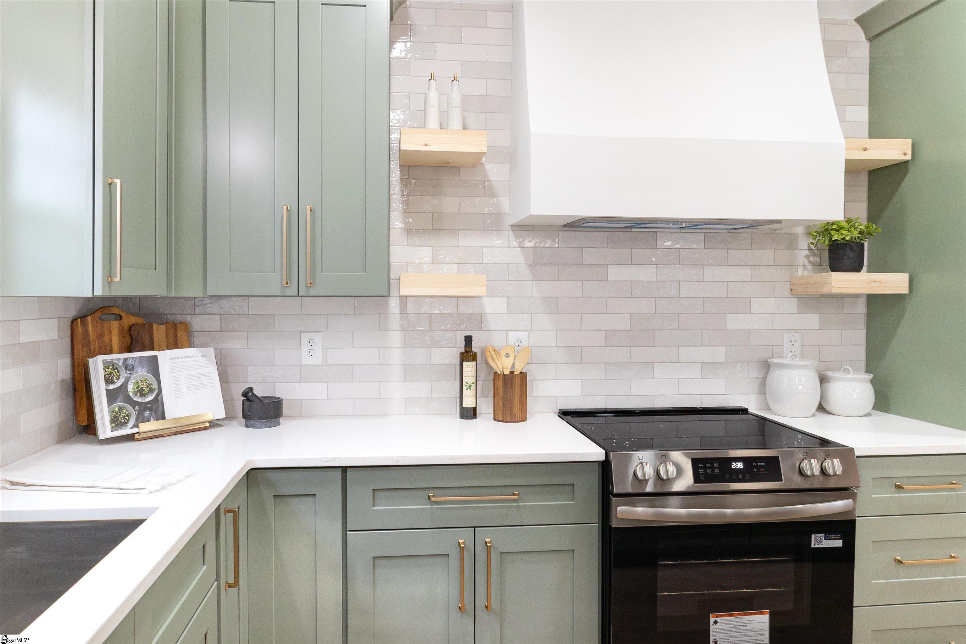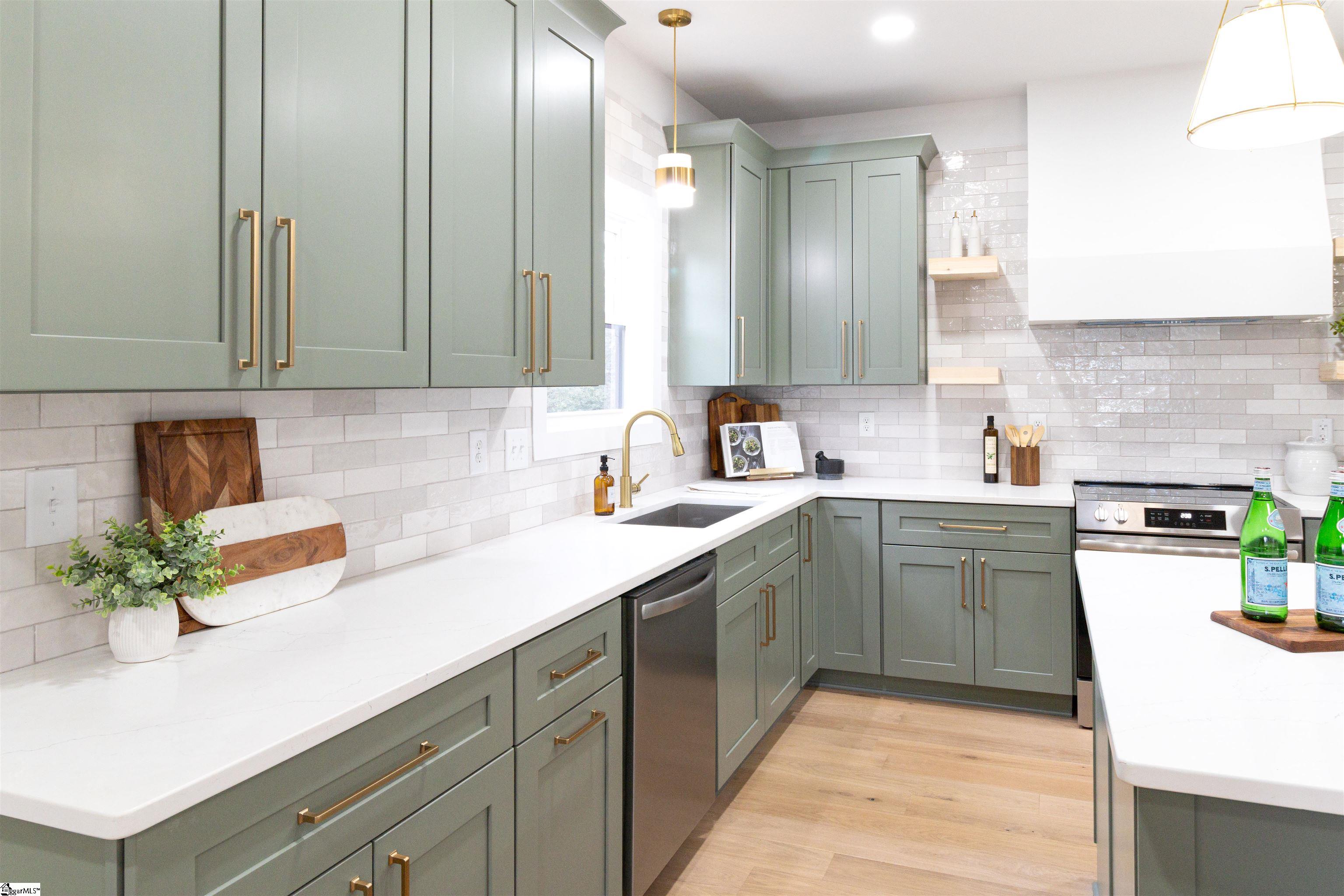 Discover modern luxury and thoughtful design in this striking 3-bedroom, 2.5-bathroom home, perfectly situated less than five minutes from Downtown Greenville. The exterior has a crisp white fiber cement board siding, black window frames, and a welcoming front door. This home offers an effortless flow between its sophisticated living spaces, featuring light-filled rooms, wide-plank flooring, and beautiful finishes that create a serene, contemporary atmosphere throughout. The designer kitchen that balances bold style with premium functionality, featuring sage-green cabinetry, brushed gold hardware, and a massive center island that seats four comfortably. The open-concept main floor transitions seamlessly from the gourmet kitchen to a spacious dining area and a living room bathed in natural light. For those seeking a quiet escape, the screened-in back porch provides a private sanctuary with views of the private fenced-in yard, perfect for year-round relaxation and outdoor entertaining. The second floor is intelligently designed for modern living, featuring all three bedrooms and a conveniently located upstairs laundry room to simplify your daily routine. The primary suite is a true retreat, highlighted by a tray ceiling and a spa-like ensuite bathroom with a double quartz vanity, gold fixtures, and a glass-enclosed walk-in shower. With East North Street’s local dining within walking distance, this home offers the rare opportunity to enjoy a peaceful, high-design retreat without sacrificing immediate proximity to Greenville’s best amenities. Call your favorite local agent for a private showing.