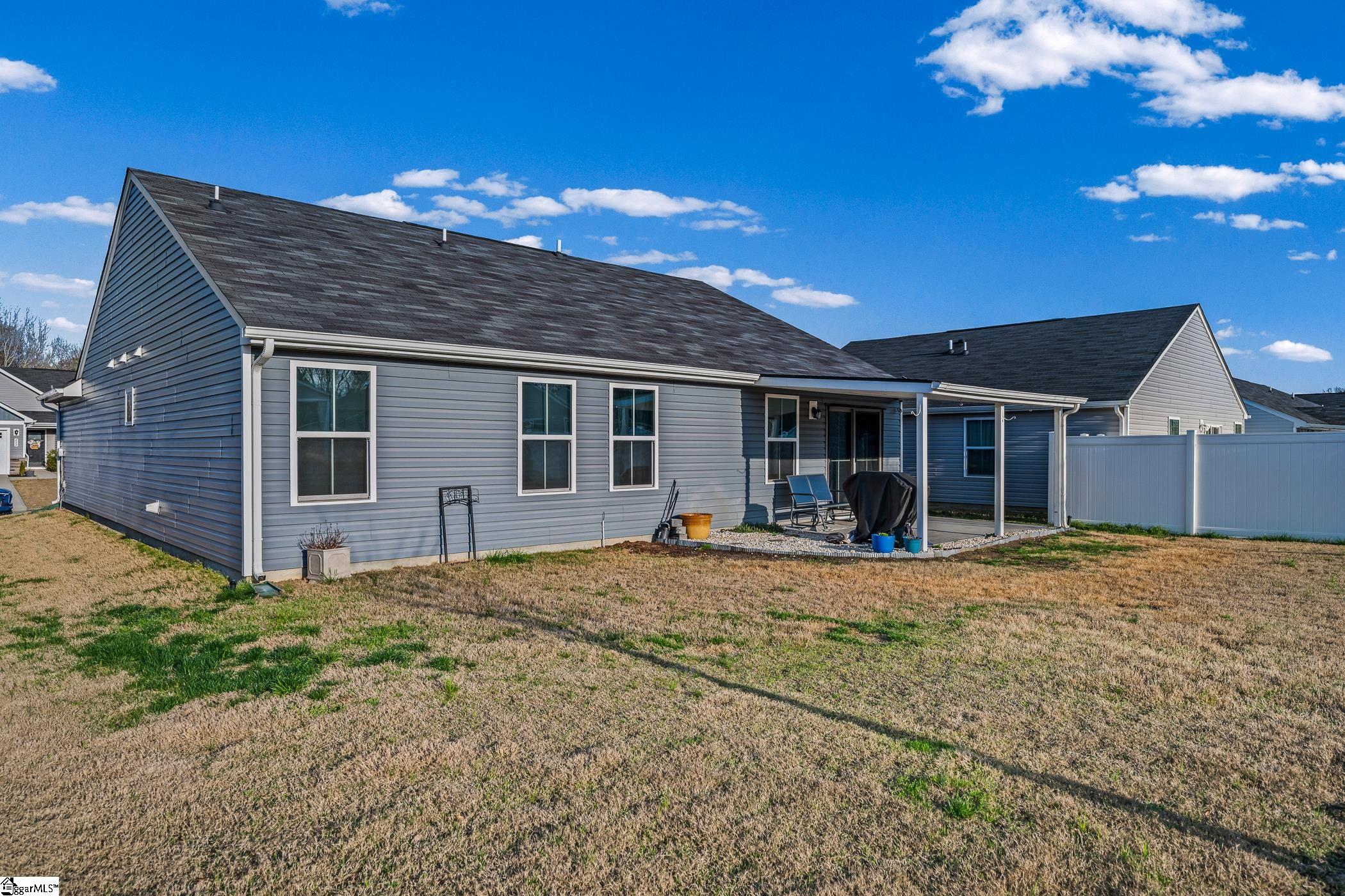 Tucked just minutes from the charm of historic downtown Fountain Inn, this beautifully maintained one-story home at 114 Sylvester Street blends comfort, convenience, and low-maintenance living. Built just five years ago, the home features a bright, open floor plan that creates an easy flow between the kitchen, dining, and living areas, perfect for both everyday living and entertaining. The kitchen is the heart of the home, highlighted by a center island with granite countertops, ample workspace, and seating for gathering with family and friends. With three bedrooms and two full baths, the layout offers both privacy and functionality. Step outside to enjoy the covered back patio, an inviting space for morning coffee, relaxing evenings, or weekend cookouts. Designed for easy living, the HOA includes lawn maintenance, giving you more time to enjoy the surrounding community rather than worrying about yard work. Located near downtown Fountain Inn, you’ll love being close to local restaurants, shops, schools, and businesses, while still enjoying quick access to Highway 385, making commuting to Greenville, Simpsonville, and Laurens simple and convenient. Whether you’re looking for a primary residence or a smart investment in one of the Upstate’s growing communities, 114 Sylvester Street offers modern comfort in a prime location.