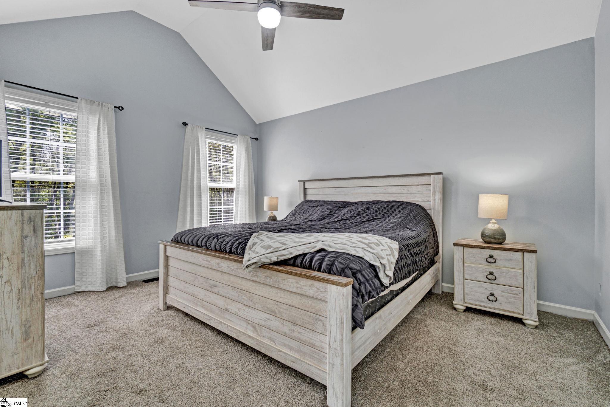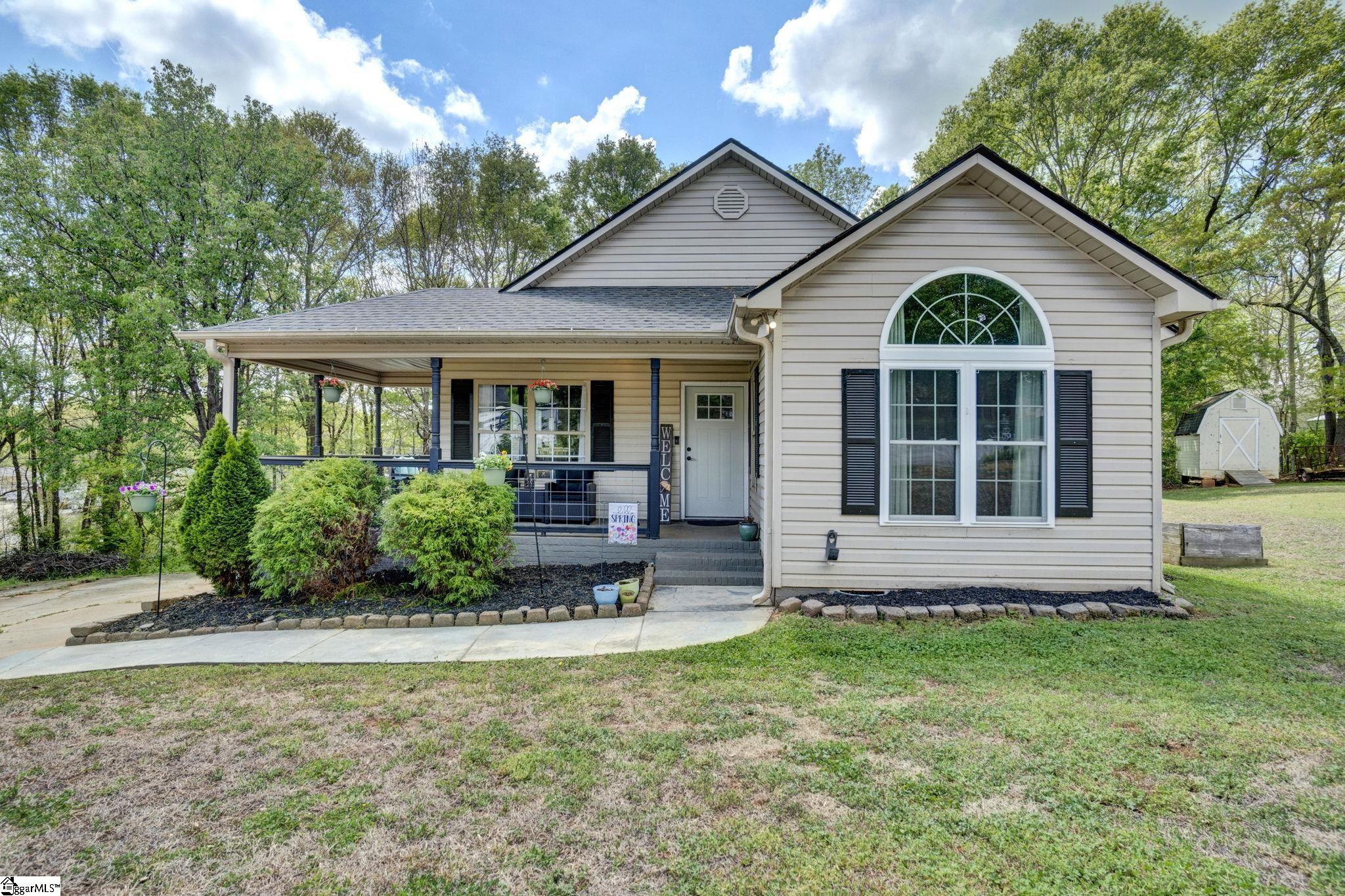Welcome home to this charming 3 bedroom, 2 full bath home with approximately 1,250 square feet, perfectly situated on a quiet cul-de-sac lot. Outdoor living is a highlight here, featuring a large covered front and side porch plus a spacious deck — the perfect place to relax with friends or enjoy weekend barbecues. Inside, the cathedral ceilings create an open, airy feel and a flexible floorplan that’s ideal for both everyday living and entertaining. The great room features a cozy gas log fireplace and flows seamlessly into the dining area. The well-equipped kitchen offers granite countertops, painted cabinets, a convenient pantry, and plenty of prep space for cooking and hosting. The primary bedroom features vaulted ceilings, multiple windows for natural light, a walk-in closet, and a full bathroom with double sinks and a tub/shower combo. The secondary bedrooms are generously sized and share a hall bathroom. Located just a short drive to I-26 and I-85, this home is convenient to schools, area colleges, parks, restaurants, and entertainment — offering both comfort and convenience in a peaceful setting.