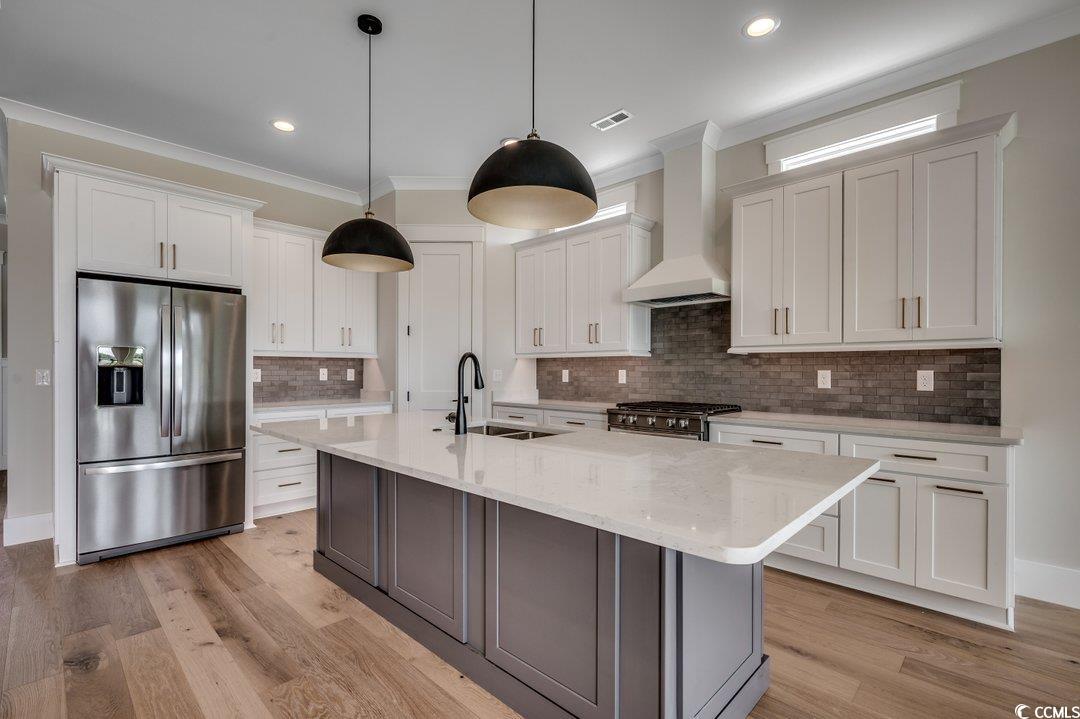 New Construction Home with Luxury Finishes will be located in the prestigious gated community of Waterbridge. The lot is conveniently close to the amenities center and backs up to a wooded area. The listing pictures are from a similar home built by same custom builder. This upcoming 5-bedroom, 4.1-bath custom home will combine quality craftsmanship with upscale features throughout. Built by a reputable local builder with over three decades of experience, this home offers a bright open layout filled with natural light and stylish details. The great room is anchored by a fireplace and accented with a custom beamed ceiling. The kitchen will feature a walk-in pantry, island, stainless steel appliances, and quartz countertops. The main-level owner's suite includes a luxurious bath and spacious closet, while an additional downstairs bedroom offers flexibility for an office or gym. Upstairs includes a large bonus room, three more bedrooms, two full baths, and walk-in storage. Residents of Waterbridge enjoy access to a resort-style pool, clubhouse, fitness center, tennis, and boat storage—all just minutes from the beach and local attractions. The seller is related to the listing broker and is a SC/NCLicensed real estate agent. All information is deemed accurate and correct but buyer is to verify.