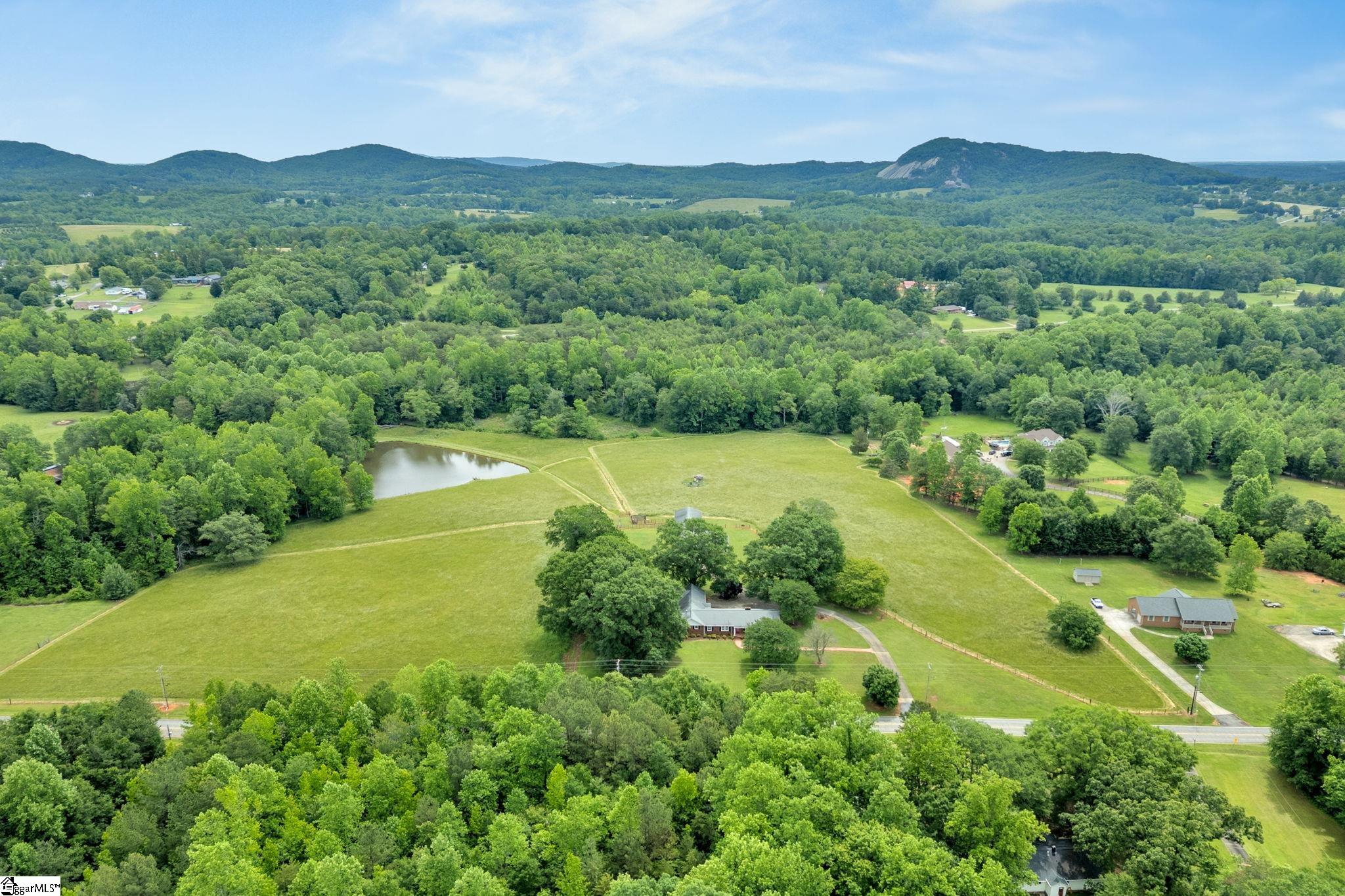 A Rare Opportunity to Own a Legacy Farmstead Just Minutes from Downtown Pickens Experience your own personal slice of heaven with this remarkable 20+ acre farm, offering rolling, already fenced pastures, mature shade trees, and a beautifully expanded brick ranch home—all nestled just minutes outside of downtown Pickens. This property was a pristine, working farm not too many years ago, and today it stands ready for its next chapter. The land itself is a standout feature. Gently rolling pastures provide immediate utility for equine or bovine use, while the lower portion of the property features a 2± acre spring-fed pond and a flowing creek exiting the property—an invaluable water source for any farm. Whether you envision livestock, fishing, or simply enjoying the peaceful sights and sounds of nature, you control how the land is used. The creek flows toward a wooded section of the property, inviting exploration, with a mowed path already in place for your convenience. If your vision includes a multi-generational estate or family compound, this property offers numerous potential building sites while still preserving ample usable pasture. With no HOA, you have the freedom to build, improve, and live as you choose. At the heart of the property sits a brick and vinyl ranch home surrounded by stately plantation-style oak trees that form a natural canopy of shade during hot summer months. The original home dates back to the mid-1950s and was expertly expanded in the mid-1990s, creating two large living areas, a third full bath, and a massive attached two-car garage. Today, the home offers three bedrooms and three full baths, beautiful hardwood floors throughout, and two attached garages—one single-car and one two-car—both with epoxy-painted floors. A large concrete courtyard driveway provides easy access to the garages from both rear and side entrances. While the home has been well cared for, a buyer may wish to address some cosmetic updates, including appliances or cabinetry. The seller welcomes inspections and is unaware of any issues but has priced the property at $975,000 with full consideration for cosmetic TLC and is offering it AS IS—a rare opportunity at this value. Beyond the main residence, the property truly shines in its infrastructure and versatility. A 45' x 13' drive-through garage with tall doors on both ends currently houses a large Ford farm tractor (which may convey with an acceptable contract). This space is equally ideal for RV, boat, or large equipment storage. Just off the rear is a 35' x 25' covered open-air concrete area, perfect for equipment, livestock needs, workshop use, or even shaded picnic gatherings. In addition, a small one-bedroom, one-bath cottage with an attached 30' x 24' workshop / two-car garage offers tremendous potential. Most recently used as an office, the structure is in need of restoration, but with some investment, it could become an income-producing rental, ranch hand quarters, caretaker’s residence, or a detached in-law suite—an exceptional asset for multi-generational living. When you consider the extra buildings ready for immediate use, thousands of dollars in fencing, a spring-fed pond and creek, pristine pastures, mature trees, multiple building sites, and 20+ acres of usable land, this property clearly supports million-dollar-plus value. The location only adds to the appeal—central and convenient for schools, grocery shopping, and daily needs, while also offering easy access to the best of the Upstate and beyond. Approximately 30 minutes to Lake Keowee, lake jocassee, or Table Rock State Park, and close to Clemson, Easley, and Travelers Rest. Enjoy fine dining and entertainment in downtown Greenville within 35–40 minutes, or take a scenic drive to Asheville, NC in about an hour and a half. Nestled below the Blue Ridge Mountains, this is a dream setting for nature lovers, outdoor enthusiasts, and those seeking space, privacy, and long-term vision. Make this a must see!!
