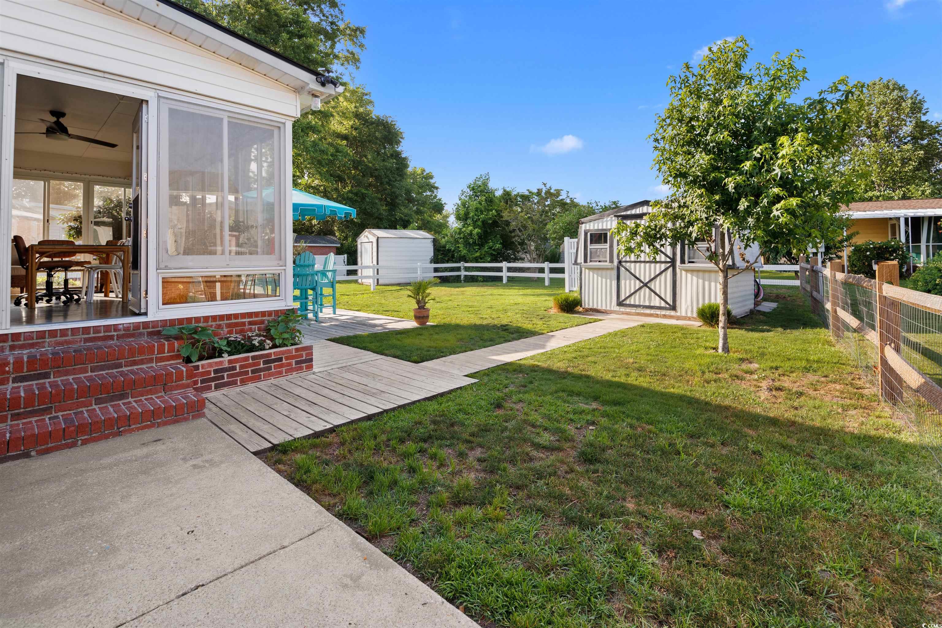 Welcome to your coastal retreat in North Myrtle Beach! This beautiful All-brick 2 bedroom, 2 bath home is just minutes from the beach, offering the perfect blend of relaxation and convenience. Nestled in a vibrant community with a pool, clubhouse, and designated parking for your boat, trailer or RV, this home is ideal for beach lovers and outdoor enthusiasts alike. Inside, you'll find spacious bedrooms and comfortable living spaces. Enjoy the warmth and natural light of the inviting sunroom, ideal for morning coffee or evening unwinding. Outside, a fenced backyard and a storage shed add functionality and privacy. Golf cart optional. With a low HOA this property is perfectly located near top dining, shopping, and entertainment spots. Whether you're looking for a primary residence or a beachside retreat, this one checks all the boxes! Don't miss your chance to live the beach life!