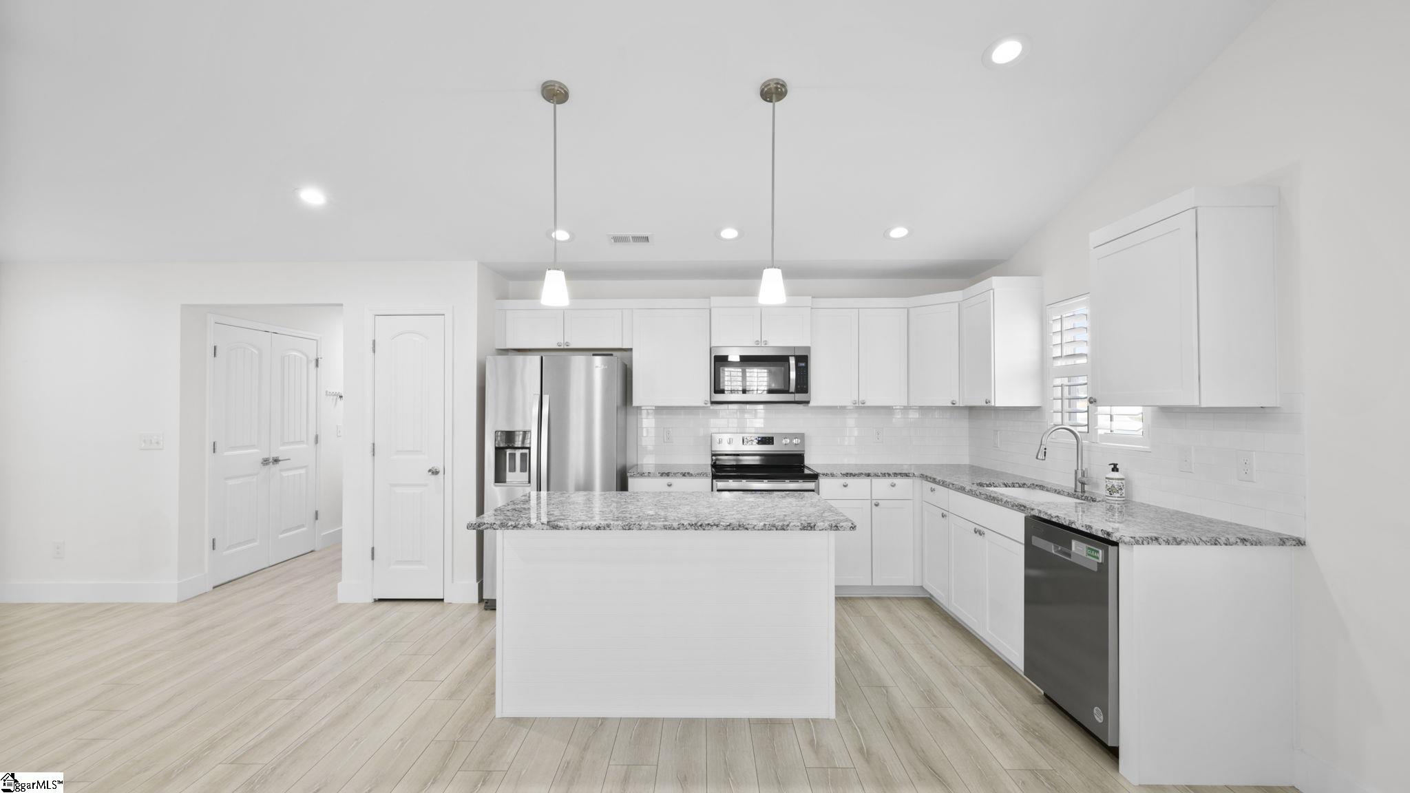 Built in 2024, this thoughtfully crafted home tells a story of modern living designed with intention, comfort, and freedom in mind. From the moment you arrive, the landscaped grounds create a welcoming first impression, setting the tone for a home that feels both polished and peaceful. Step inside and notice how natural light filters through custom plantation shutters, highlighting an open floor plan that invites connection. The living and dining spaces flow effortlessly together, anchored by a cozy fireplace that becomes the heart of the home—perfect for quiet evenings or gathering with friends and family. The kitchen is where everyday living shines. Whirlpool stainless steel appliances, including a side-by-side refrigerator and self-cleaning oven, pair beautifully with a double quartz sink and granite countertops. Thoughtfully designed cabinetry with sliding shelves and built-in racks keeps everything within reach, making both daily routines and entertaining feel effortless. The main-level owner’s suite offers a private retreat at the end of the day. Designed for comfort and ease, it features a spacious walk-in closet and an upgraded bath with a glass-enclosed shower, built-in seat, and refined finishes that create a spa-like atmosphere. A split bedroom plan provides flexibility and privacy for guests, hobbies, or additional living space. Outdoor living is just as inviting. A covered patio overlooks a fenced yard that backs to the woods, offering a serene backdrop and a sense of calm that’s hard to find. Whether enjoying a quiet morning coffee or winding down in the evening, this space feels like a personal escape surrounded by nature. Practical details are thoughtfully woven throughout the home. First-floor laundry adds convenience, attic storage is easily accessible with disappearing stairs, and gutters with leaf guards offer low-maintenance living. The 12x24 outbuilding with a built-in workbench provides space for projects, storage, or creative pursuits. Parking and flexibility are well-planned with a two-car attached garage, an attached 12x24 carport with approximately seven-foot clearance, an extra paved parking pad, and a concrete driveway. One of the most valuable features of this property is the freedom it offers—no homeowners association and no known restrictions—allowing flexibility in how the property is enjoyed and used. This home is more than a collection of features. It’s a place where thoughtful design, modern upgrades, and a peaceful setting come together to support the way life is meant to be lived—comfortable, intentional, and unhurried.