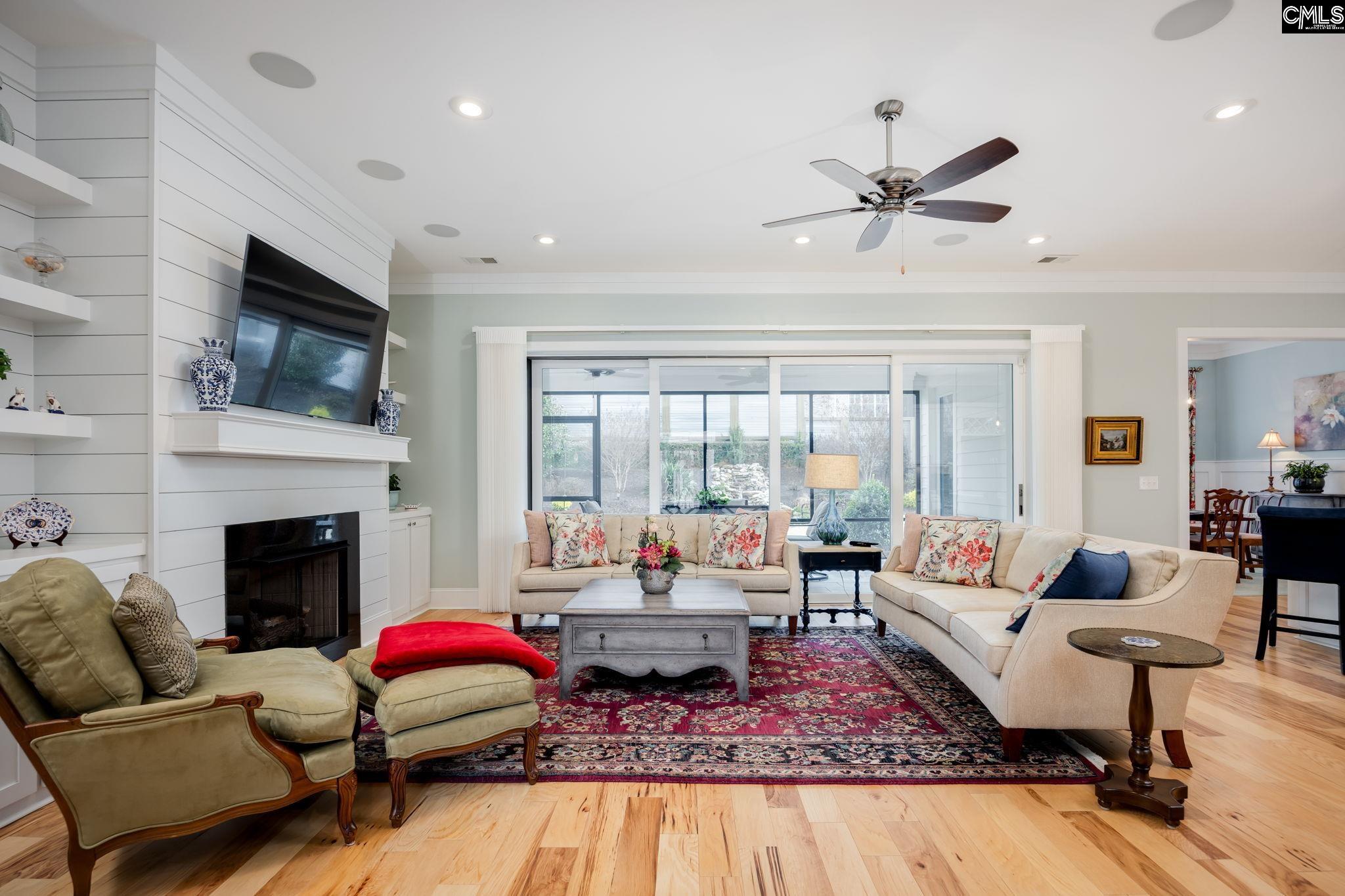 Wow! This 5BR/3.5BA home in the sought-after Vinyards District of Saluda River Club shows like a model and sits on a prime corner lot! Enjoy a tiled front porch, 2-story foyer with wainscoting, and open floor plan with hickory engineered floors throughout the entertaining areas. The great room features soaring ceilings, recessed lighting, ceiling fan, gas fireplace with shiplap, built-ins, Surround sound system, portable Sonos speaker and approx 16’ glass doors that fully open to the screened porch—perfect for indoor/outdoor living! The stunning kitchen offers upscale Jenn Air appliances, huge island with seating and cabinet access on both sides, gas range with Aqualift self-clean oven and warming drawer, wall oven/microwave, walk-in pantry, and under-sink instant hot water system. Formal dining room opens to screened porch.Main-level primary suite has two walk-in closets and a spa-like bath with oversized frameless shower, Moen rain system with dual heads, granite double vanities & makeup counter. A second bedroom suite w/private bath, powder room, and laundry with cabinets, sink, and granite complete the main floor. Upstairs offers three bedrooms (one used as office), private closets, shared bath, and a loft alcove ideal for a desk.Enjoy the spacious tiled screened porch with ceiling fans, Sonos audio speaker, TV, and views of a professionally landscaped fenced yard, pond and waterfall w/lighting, grilling pad, and irrigation. Two-car garage plus golf cart bay—all with epoxy floors and openers. Extras include plantation shutters, upgraded lighting and mirrors, ring doorbell, 3 hose bibs, and termite bond. HOA maintains front yard and sprinkler.Saluda River Club—voted “Best Community in America”—offers 85 acres of green space, walking trails, kayak launch, playground, dog park, two pools, two clubhouses, fitness center, fire pits, and Village Green amphitheater. Zoned for Lexington One schools; near River Bluff High, I-20, Lexington Medical, and just 10 miles to downtown columbia. Listed below recent appraisal! Disclaimer: CMLS has not reviewed and, therefore, does not endorse vendors who may appear in listings.
