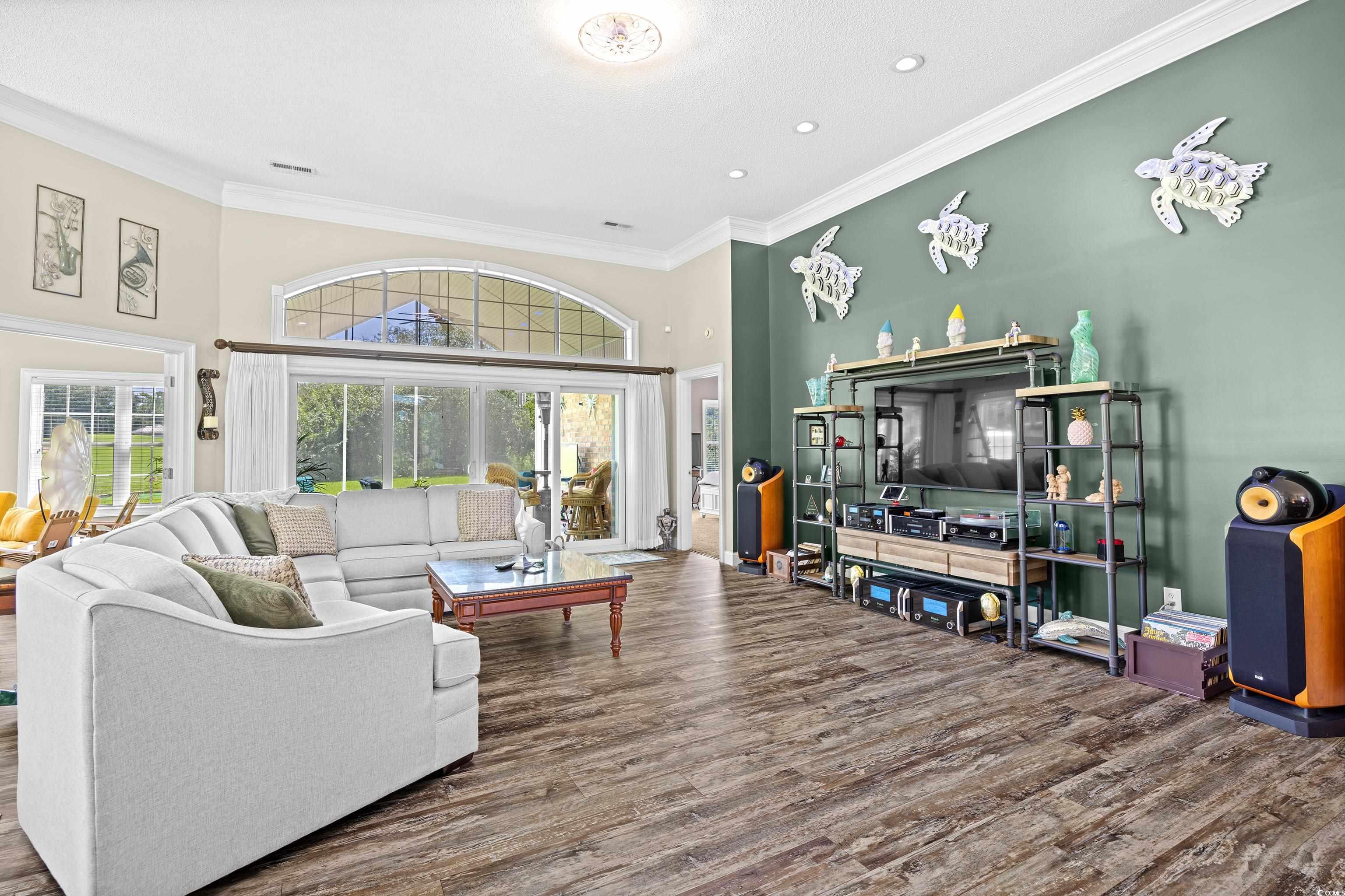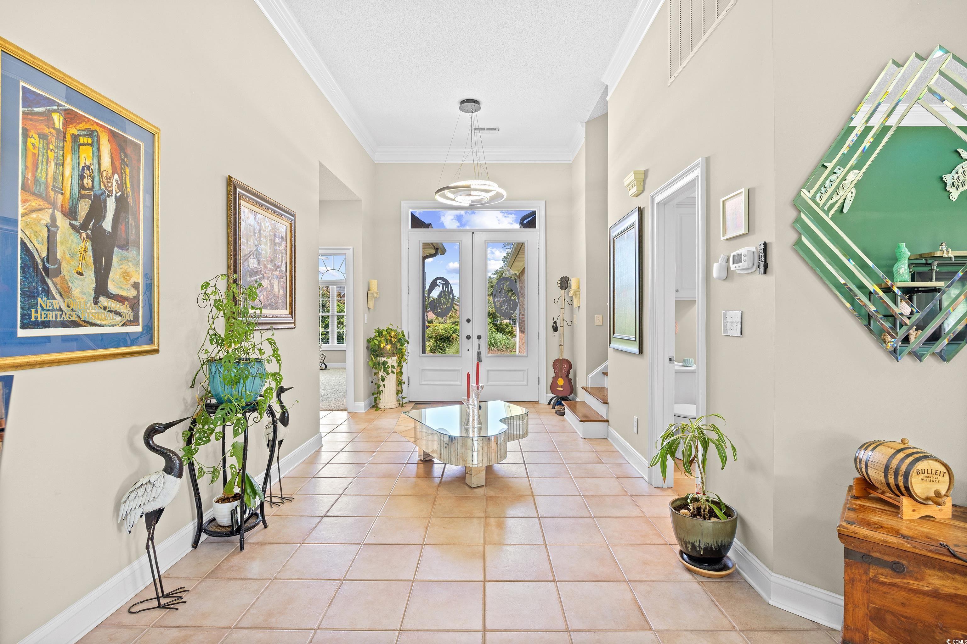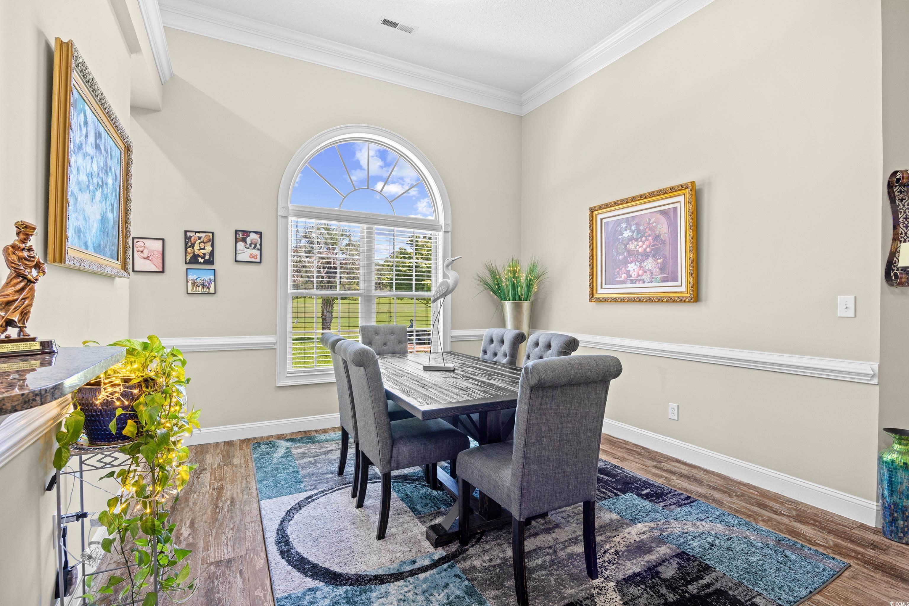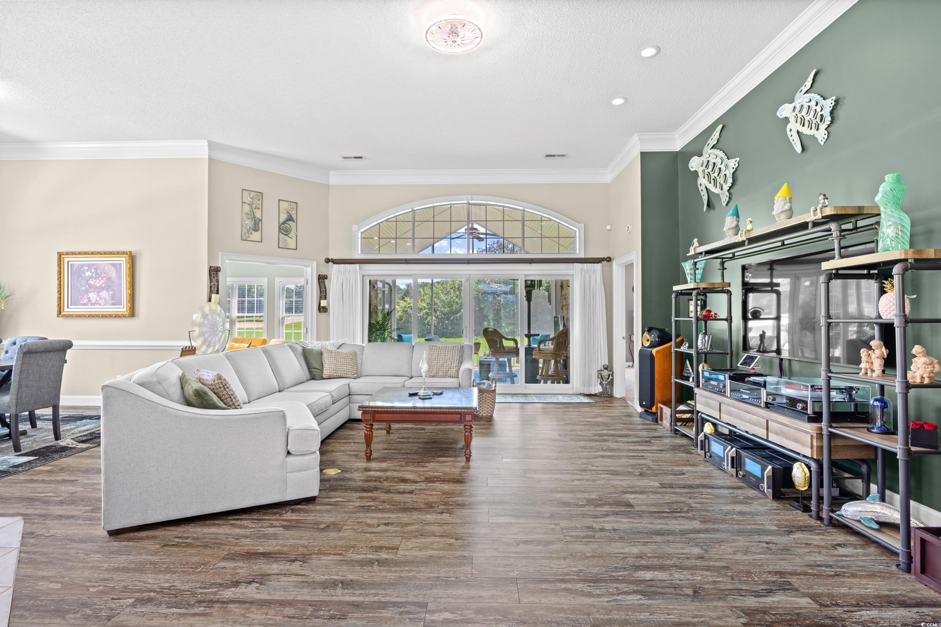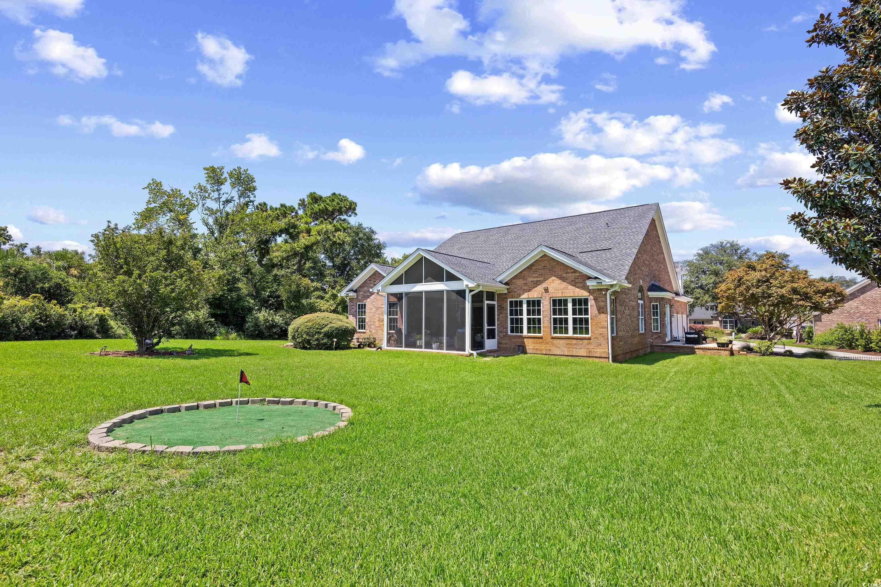 Nestled on a .45 acre cul-de-sac lot w/golf course views, this 2909 htd. sq. ft. brick home blends functional design w/high-quality upgrades. The open-concept floor plan connects the living room, kitchen and dining area. A double-door Carolina room & a screened porch w/new screens, provide versatile spaces for relaxation & entertaining while overlooking a beautiful backyard. This 4 bedroom, 3.5 bath home includes a three-car side-load garage and features two private master suites. Throughout the home, luxury plank flooring adds warmth and durability. The kitchen has been refreshed with a soft color palette, stainless steel appliances, & a thoughtful layout, with the main level laundry conveniently positioned between the garage & kitchen. Meticulously renovated over 16 months by its owner, an architecture professional of 43 years, the property boasts a new roof, fresh interior paint, & upgraded electrical and plumbing systems. Additional upgrades include underground gutters, new landscaping an 80 gallon water heater, updated lighting, fixtures, upgraded irrigation pump & sprinkler system, & a 12-ft, four panel rear door opening to the screen lanai. Security & convenience are top priorities with exterior cameras & lighting, a whole home security alarm, a backup generator bypass switch, a garage workbench w/ sink, & off-street parking for up to 10 cars. The private yard features a 1200 gallon concrete & slate waterfall fish pond and the location on the 13th green of the Willbrook Plantation golf course. House can be sold furnished. Included with this home is access to Litchfield-by-the-Sea private beach available for you.