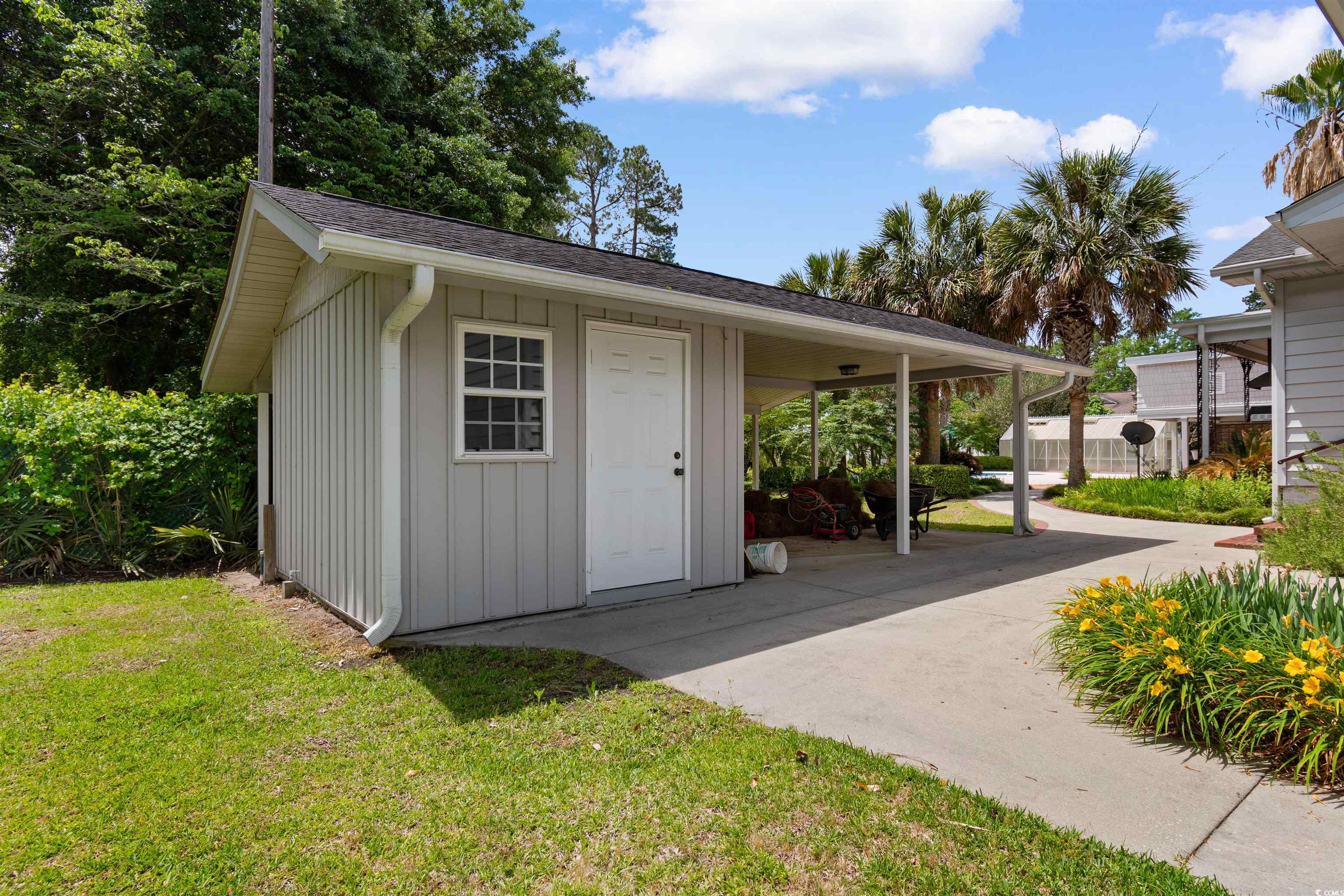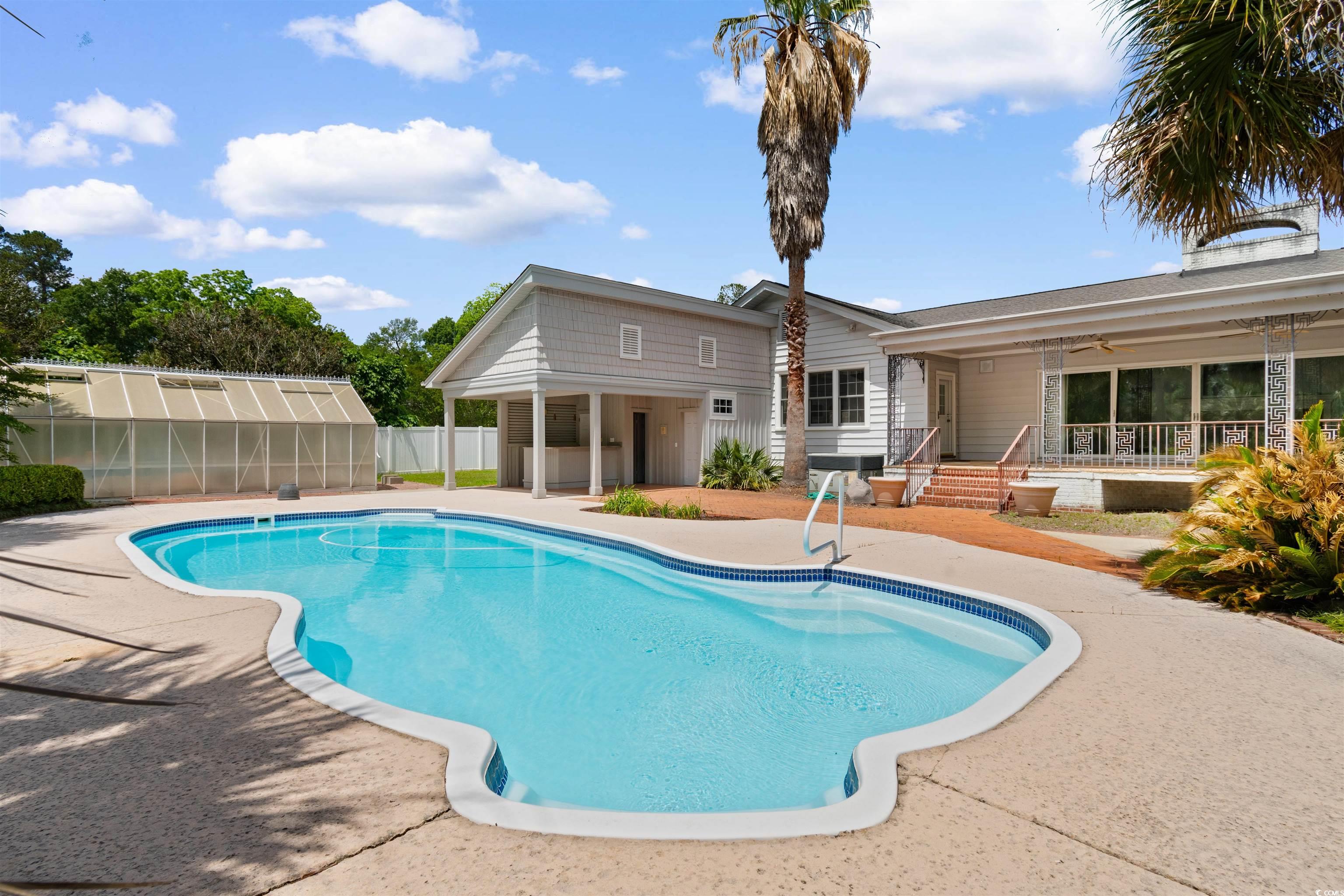 Welcome home to 115 Ford Ave Mullins! This single story residence has everything you need for those that delight in spending time outdoors. Enjoy the open air space with a pool, pool house, green house and covered porch that includes a built in gas grill. This 4 bedroom, 3.5 bathroom property has a spacious 3,800 square feet and is situated on a 3 acre parcel. Inside will not disappoint. Step into a beautiful foyer that leads to a large formal living room with fireplace. This room is set up perfectly as an office with plenty of builtins to include a desk. The formal dining room boasts hardwood floors and flows into the generously appointed kitchen. Storage is no issue here. Cabinets are on every wall and a working island has extra storage. There is an adjacent butlers pantry with wine cooler making a great prep area for entertaining guests. The family room has a stunning stone fireplace with builtins. The tile floors flow from the kitchen and are easy maintenance. The back wall is sliding glass doors leading the the covered porch with tranquil views of the back yard. The master bedroom has a private access to porch. It is oversized giving ample space for all your furnishings. The ensuite has a tile shower, separate tub, double vanity and partially tiled walls. Two bedrooms share a Jack and Jill bathroom and oversized walk in closet. The fourth bedroom has a private bathroom. This home has many closets with two being lined in cedar. There is a private half bathroom off the laundry room. Beautiful hardwood floors in all bedrooms, formal living room and dining room. Outside is where the fun continues. Grilling, swimming, playing games, and making memories is all you'll want to do! There is a pool house with attached bar area for snacks and pool parties. Guests can enjoy two separate full bathrooms. There is an extra closet for storing equipment. A detached two car garage (24x60) is located on the property. It has a bathroom on private septic. A storage shed with covered area is perfect for keeping your toys dry. The yard is maturely landscaped with large palms. This home is perfect for both entertaining and spending some quiet time relaxing. It is a spectacular property that is ready for new owners to enjoy!