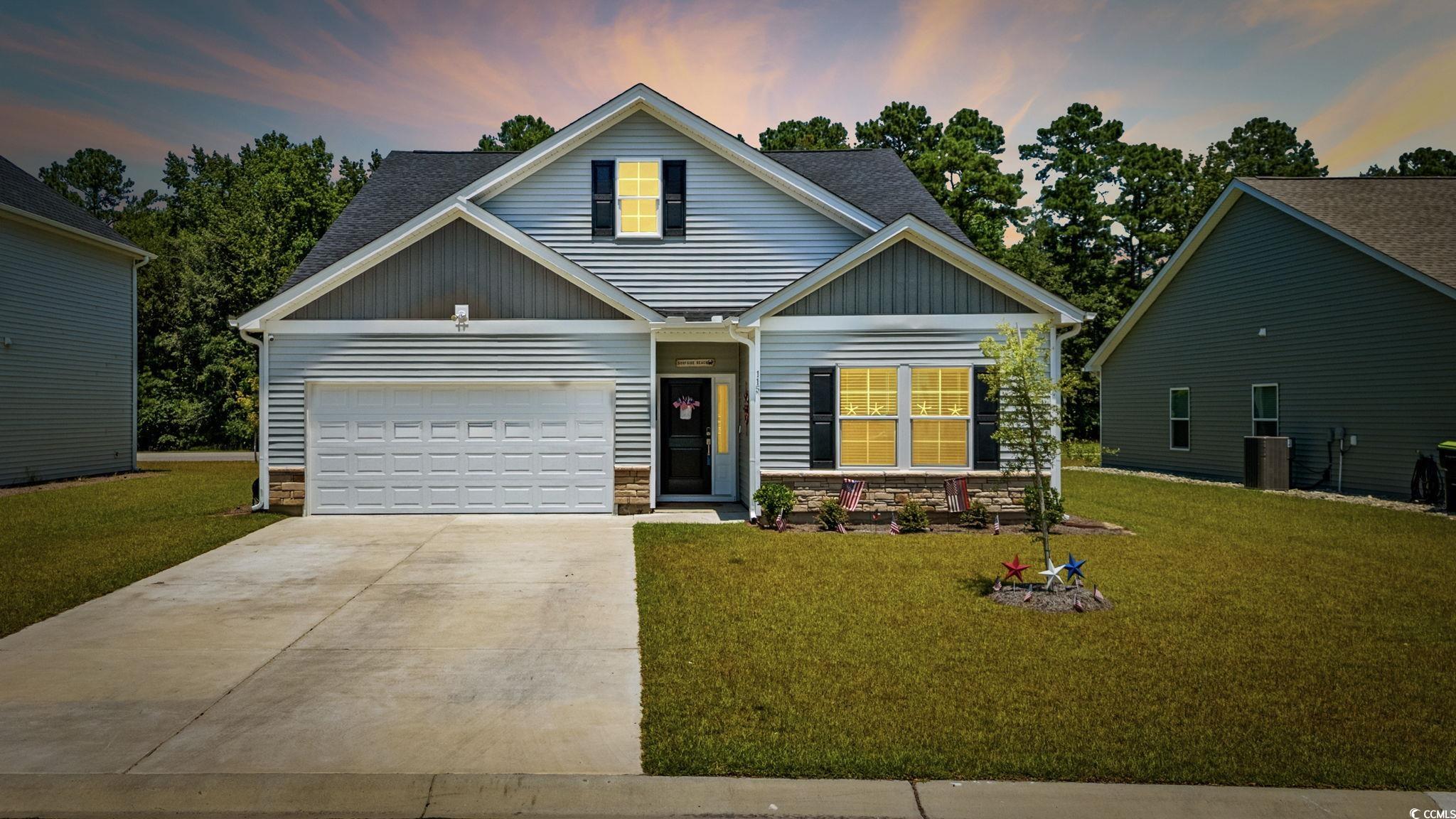 *** FOR INFORMATION ABOUT OUR PREFERRED LENDER AND THE INCENTIVES YOU MAY QUALIFY FOR, PLEASE ASK YOUR AGENT TO REVIEW THE AGENT COMMENTS FOR ADDITIONAL DETAILS. *** A Patriotic home on a hero's street. This 2024 built Gwinnet floor plan by Mungo is the most desirable floor plan you could imagine. 4 bedrooms in total with the primary master suite downstairs, as well as a guest suite and full bath upstairs. You have space, options and privacy while keeping everyone close! The open modern kitchen with granite countertops, and massive island looks out over your spacious living room with tray ceiling and LVP. Off the Living room is the primary master bedroom with tray ceiling, walk-in closet, and en-suite bathroom. **Here's where things get spicy** The full master bathroom leads to a massive second closet and because of its size, it is currently utilized as an office area. From the closet/office you have direct access to the laundry room making every load of laundry feel like you've unlocked a CHEAT CODE. The laundry room also has direct access to the foyer with built in drop zone. Bedrooms two and three are split off from the master bedroom and share the second full bathroom. Upstairs is the guest suite with full private bathroom great for multi generational households, house hacking or anyone just needing their own space. Out back is your covered screened in porch for relaxing after fun-filled days at the beach! Located in the award winning Carolina Forest H.S. district, Lyden Village is located just 10 MILES to having your toes in the sand in extremely desirable Surfside Beach. A short drive on Hwy 544 either takes you to Coastal Carolina University and charming downtown Conway to the west, OR premiere grocery stores, boutique shopping, and attractions to the east. Hop on Hwy 31 down to the Marsh Walk of Murrells Inlet or up to North Myrtle Beach/Wilmington. This section of the beach is seeing its share of development with exciting things coming, and is fantastically located with easy access to anywhere on the Grand Strand and more. This is a great opportunity for primary, investment property, or second home, with a low HOA that covers the trash service and protects your asset. Book your showing for this FOREVER HOME today!
