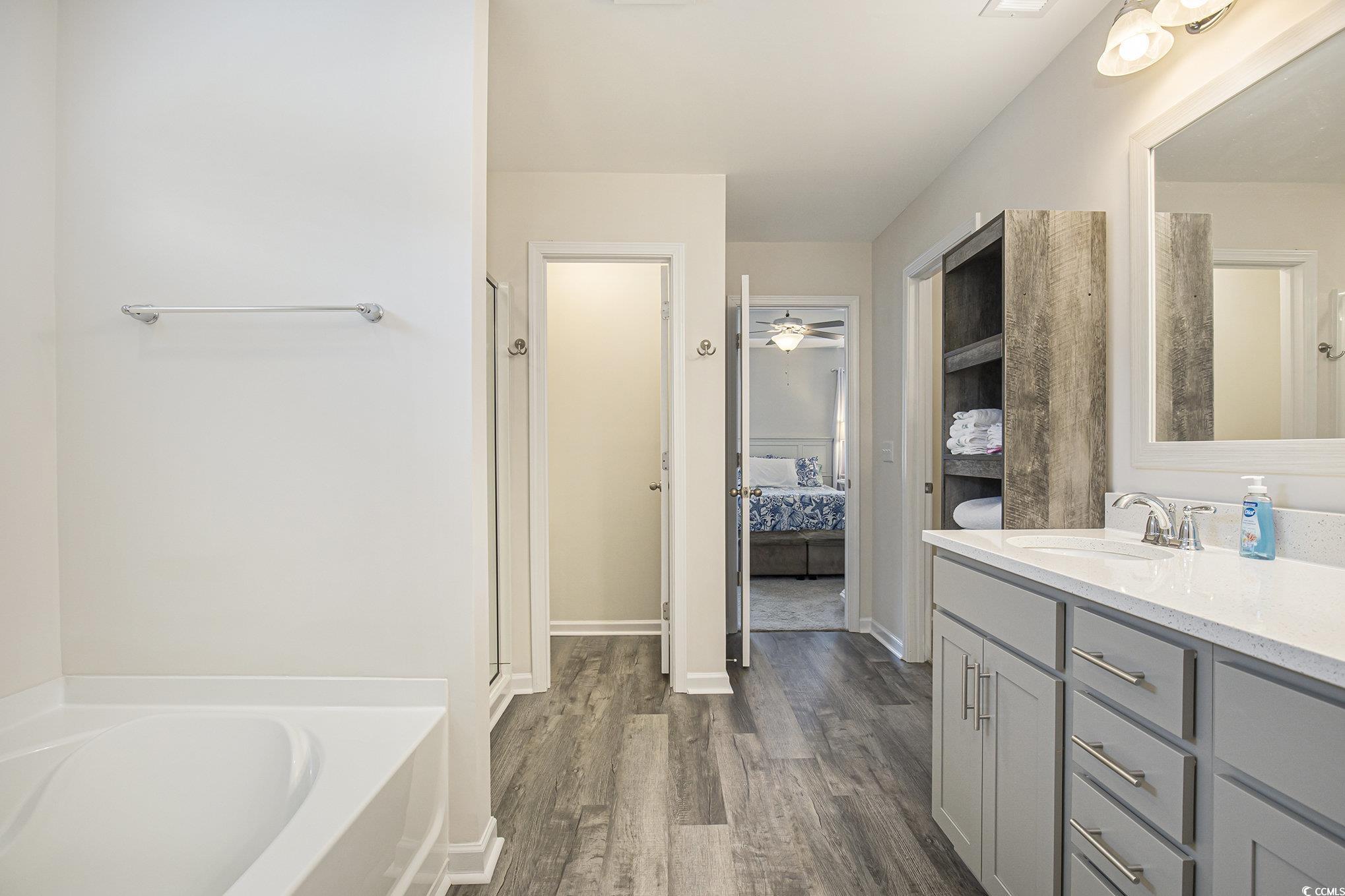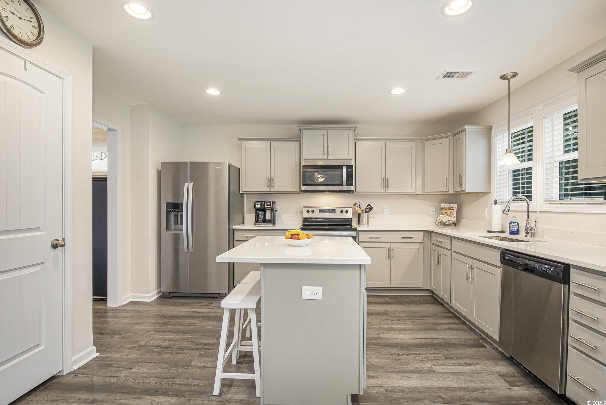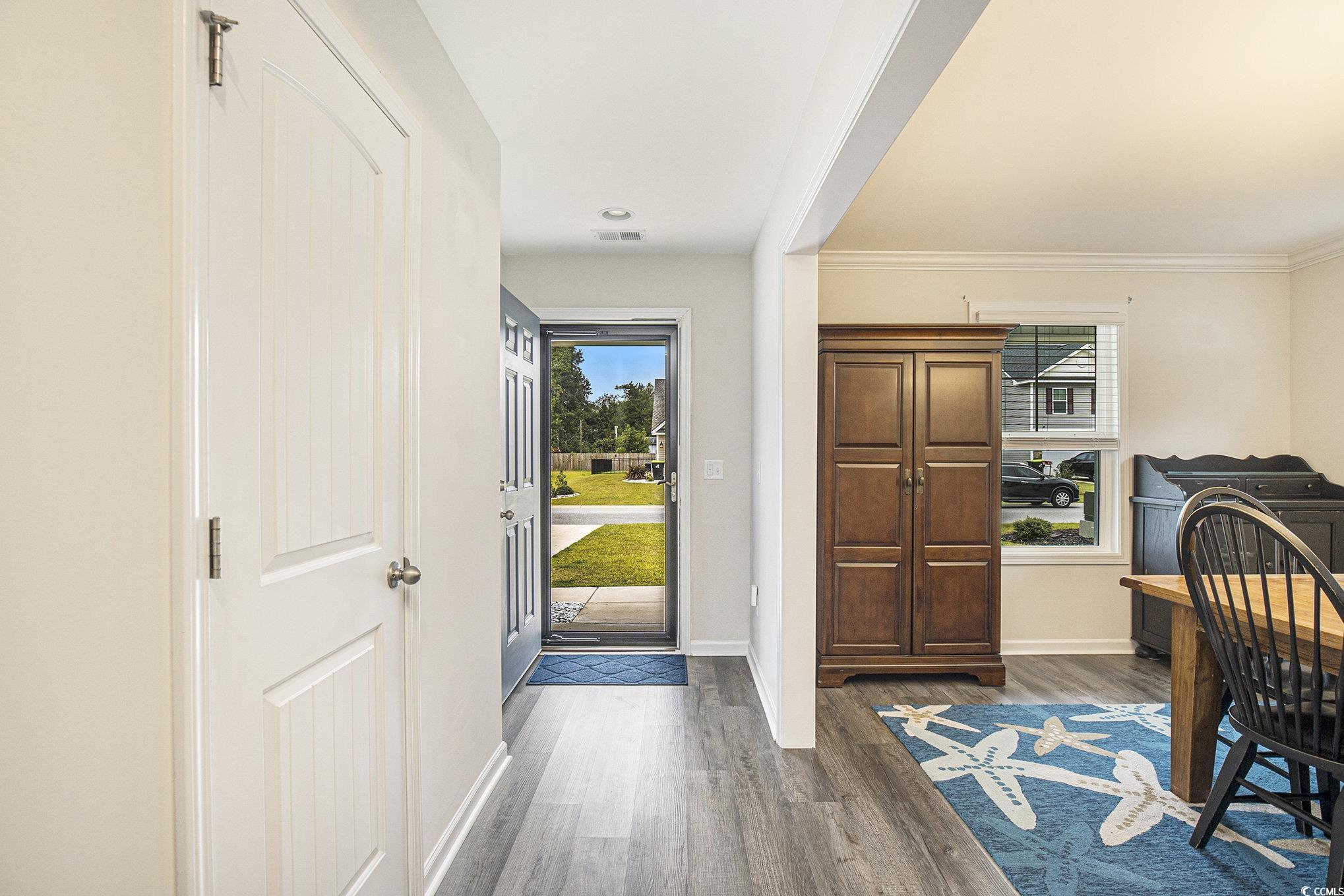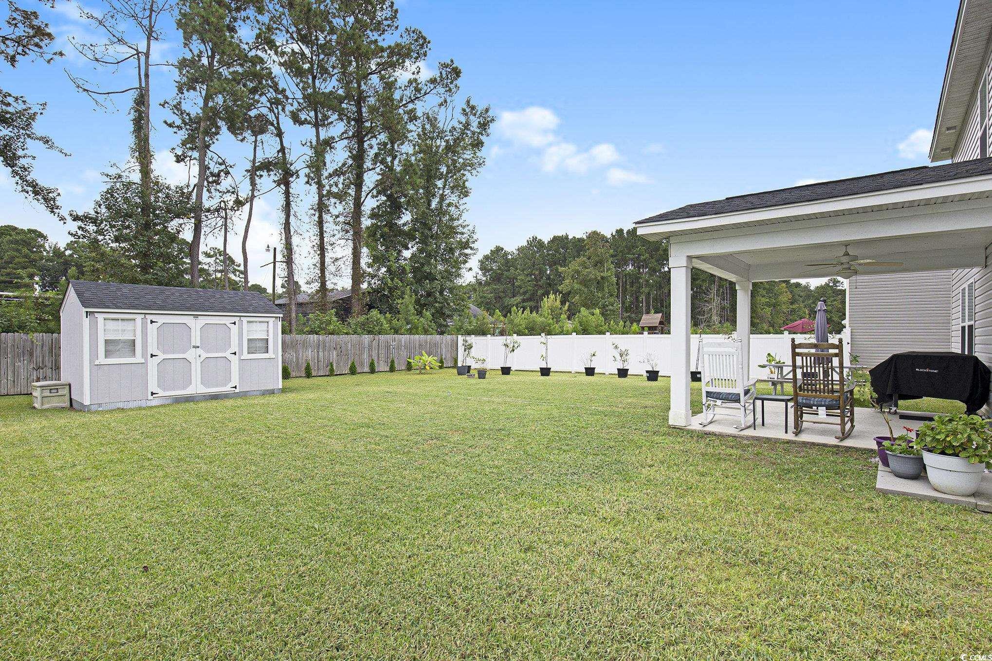 Welcome to this charming Davenport A model Smart home nestled in the Kingston Bluff community! This beautifully crafted 4-bedroom, 2.5-bath home combines thoughtful design with modern comfort, offering the perfect blend of style and functionality. Step inside and be greeted by a bright, open floor plan accented by Galveston Oak luxury vinyl flooring, soft neutral tones, and timeless finishes throughout. The heart of the home is the spacious kitchen, featuring quartz countertops, stainless steel Energy Star appliances, and plenty of room to gather. The inviting family room flows seamlessly into the dining area, making entertaining easy and enjoyable. Upstairs, the spacious primary suite awaits with a tray ceiling, two oversized walk-in closets, and a spa-like ensuite with dual quartz vanities, a garden tub, and a separate shower. Three additional bedrooms, a second full bath, and a convenient second-floor laundry room provide comfort and practicality for everyday living. Enjoy peaceful evenings on your covered porch, or take advantage of the 10x14 insulated shed for extra storage or hobbies. Additional features include exterior Rain Byrd irrigation system, plantation blinds throughout, pre-wired ceiling fan connections in secondary bedrooms, Ring doorbell and a security camera, double driveway, and energy-efficient upgrades such as a 14 SEER HVAC system. Privacy fencing is allowed in this neighborhood. Situated on a quiet street in a quaint neighborhood, this home offers the perfect balance of privacy and convenience. You’ll love being just minutes from the beautiful Grand Strand beaches, world-class golf courses, boat launches, shopping, dining, entertainment, and Historical Downtown Conway. (Only 4 miles to the Red Bluff Waccamaw boat ramp and 18 minutes to the Cherry Grove pier at the Atlantic Ocean.) With easy access to Hwy 22 and Hwy 31, plus nearby hospitals (Seacoast McLeod Health and Grand Strand Regional), everything you need is right at your fingertips. **Ask agent about potential lender incentives. This Kingston Bluff gem is move-in ready and waiting for you to call it home!