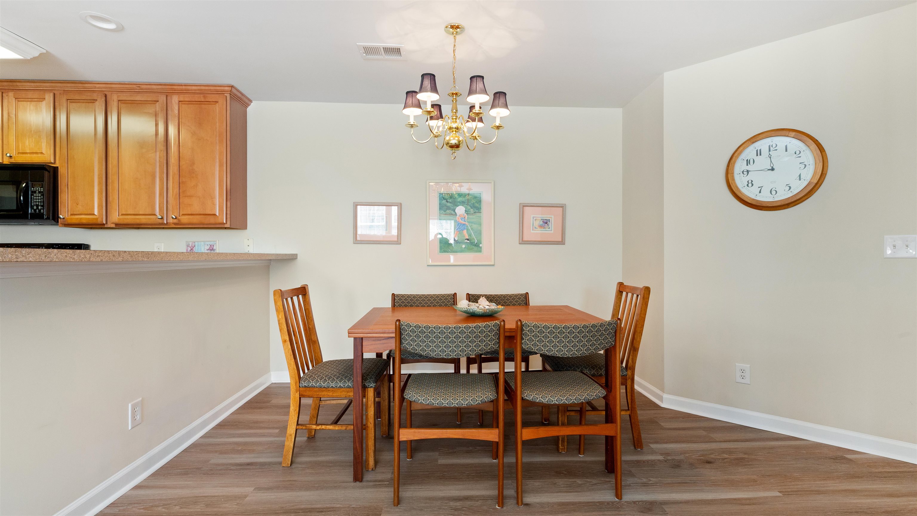 Coastal charm and abundant natural light welcome you to this beautiful 3-bedroom, 2-bath end-unit condo at The Grand Vistas at The International Club, a highly sought after community in Murrells Inlet. With its desirable southeast-facing orientation, this home is filled with soft morning sunlight—perfect for enjoying your coffee on the screened front porch while taking in the peaceful start to the day and the relaxed coastal atmosphere. The living room features a vaulted ceiling with a ceiling fan and a bright, open-concept layout that flows effortlessly into the dining and kitchen areas, creating an airy space filled with natural light and relaxed coastal charm. Luxury vinyl plank flooring flows seamlessly through the entire condo, adding both style and durability. The kitchen includes a breakfast bar and an extra spacious walk-in pantry, making it both functional and inviting for casual dining or entertaining. The generous sized primary suite offers a private retreat with two walk-in closets, a linen closet, and an ensuite bath with dual sinks and a tub. Two additional bedrooms share a full shower/tub bathroom, providing comfortable space for guests or family. Additional highlights include in-unit laundry and exceptional storage, including a large owner’s walk-in closet. As an end unit, the condo enjoys extra light and privacy, creating a bright and breezy coastal vibe. Residents also enjoy access to a community pool and clubhouse. Located just minutes from the Murrells Inlet Marsh Walk, Huntington, Garden City and Surfside beaches. Shopping, dining, entertainment, hospitals, schools, and golf courses are all nearby. Myrtle Beach Airport is just 9 miles away. Brookgreen Gardens is also a quick drive away. This home perfectly blends convenience with the relaxed lifestyle of the South Carolina coast.