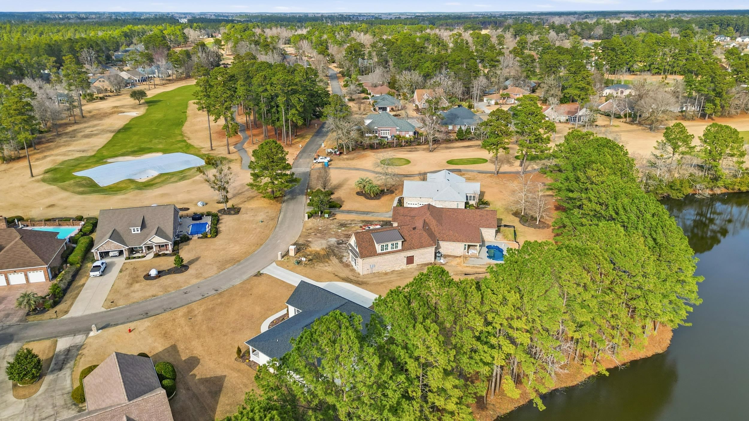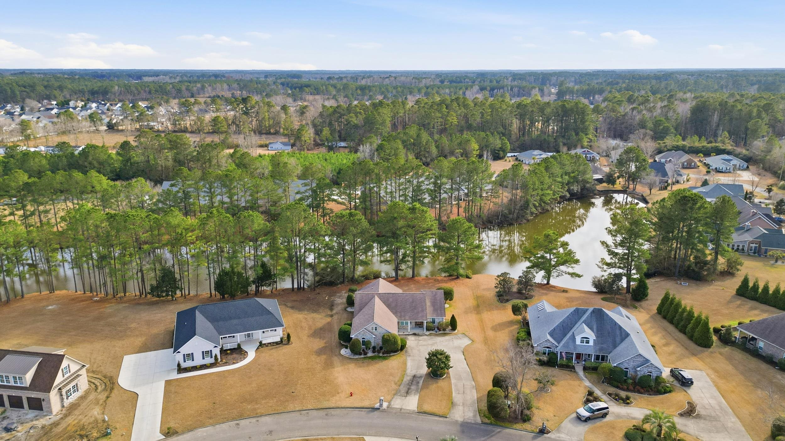 This brand-new, all-brick beauty delivers standout design, thoughtful upgrades, and a setting that feels like a private retreat. Nestled in the highly sought-after Long Bay Golf Community, this 3-bedroom, 2-bath split bedroom home sits on over half an acre and showcases serene pond views that elevate everyday living. Crafted by a respected local builder known for quality and precision, the home is filled with refined details from the moment you step inside. The spacious living room impresses with tray ceilings and a cozy electric fireplace, creating a warm, inviting focal point for gathering and relaxing. The chef-inspired kitchen is a showstopper, featuring custom-built cabinetry, granite countertops, stainless steel appliances, a large island, and generous storage—perfect for both entertaining and daily life. The primary suite feels like a private sanctuary with tray ceilings, two expansive walk-in closets, dual vanities, a soaking tub, and a beautifully tiled walk-in shower. Additional upgrades include levered door handles throughout and epoxy-finished garage floors, blending durability with polished style. Step outside to the large front porch, ideal for morning coffee, evening conversations, or simply soaking in the peaceful surroundings. With its blend of craftsmanship, comfort, and picturesque views this home offers a rare opportunity to enjoy new construction living in one of the area’s most desirable golf communities. Note: Some photos have been virtually staged.