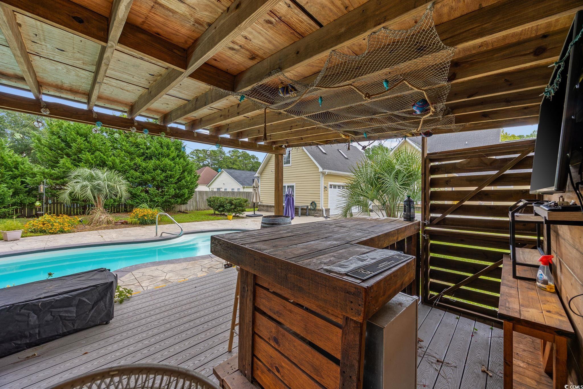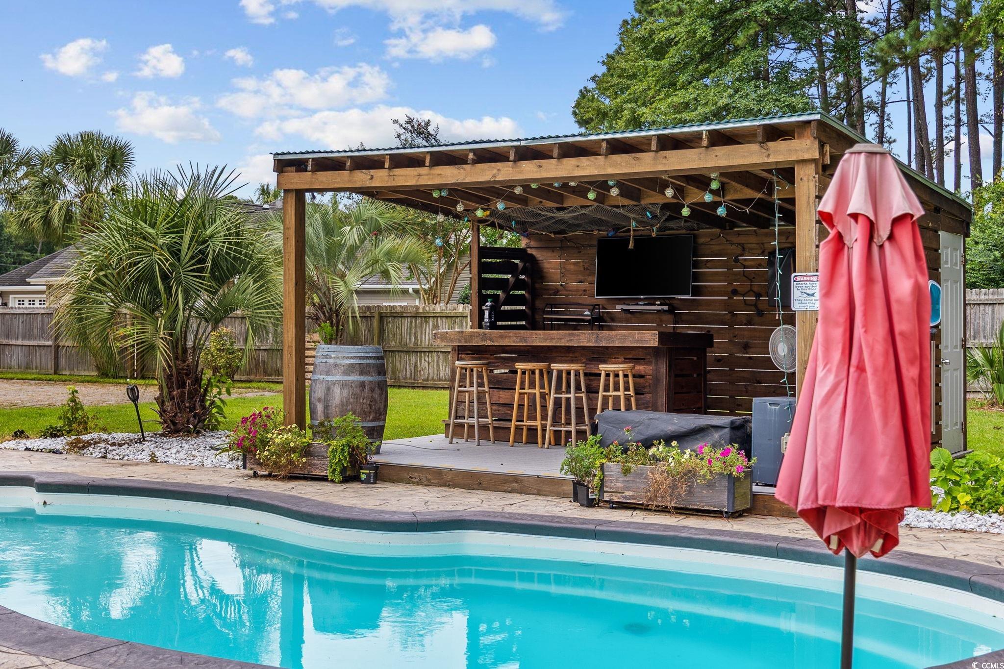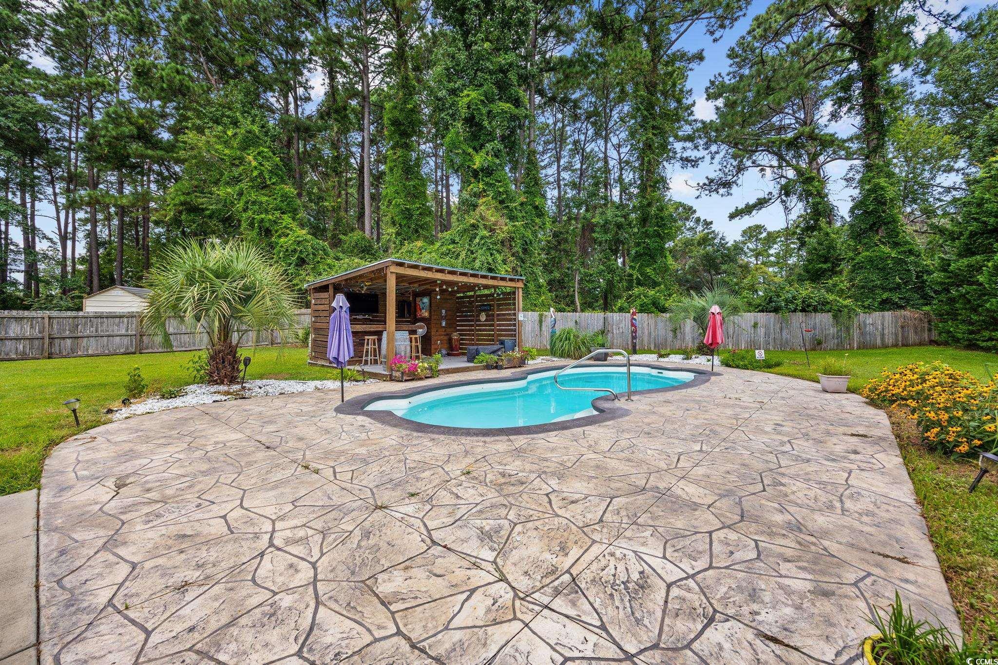***PRICED WELL UNDER MARKET*** Experience the perfect blend of Southern elegance and modern convenience in this rare Lowcountry gem, ideally located just minutes from the Intracoastal Waterway. Resting on nearly half an acre, this exceptional home features an open, light filled floor plan with soaring vaulted ceilings and a sought-after first floor master suite complete with generous walk-in closets and a beautifully renovated bathroom. A detached two-car garage offers a private apartment above, featuring a bedroom, full bath, and living area ideal for an in-law suite, Airbnb income, or private guest retreat. Outside, your personal oasis awaits with a sparkling pool, lush landscaping, and a tiki bar designed for unforgettable gatherings. Perfectly situated in Cypress Bay Estates, you’ll be just steps from the Little River waterfront home to the Big M Casino boat, fishing charters, and charming waterfront dining and only minutes from North Myrtle Beach’s shopping, entertainment, and easy Hwy 31 access. With the NC border and pristine beaches just a short drive away, this home offers both relaxation and accessibility. Don’t miss the chance to make it yours schedule a private showing today and discover the best of Coastal Carolina living.