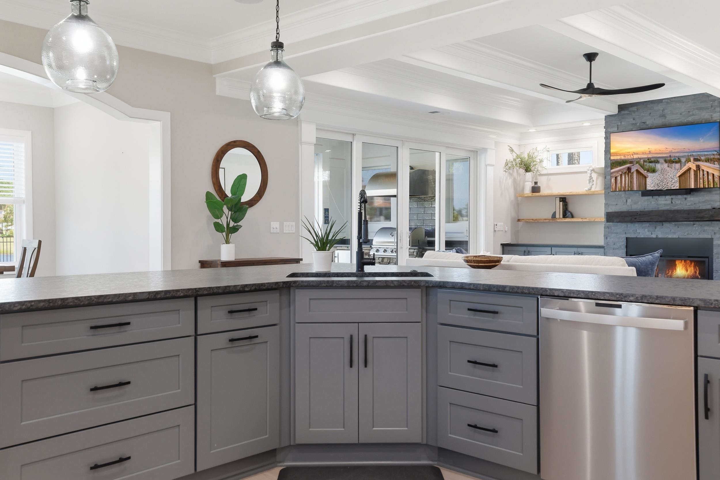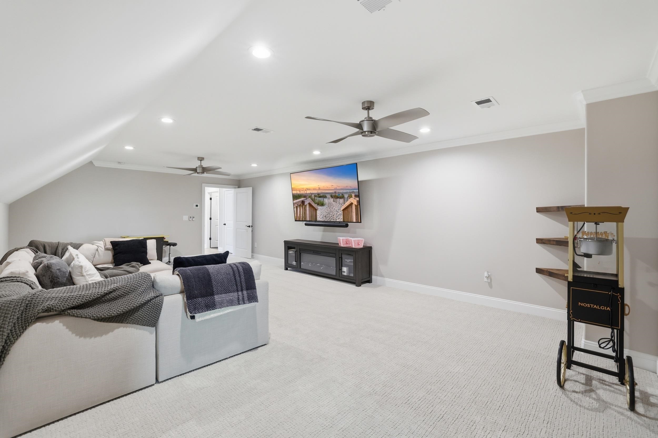 This thoughtfully designed custom home is located in the highly sought-after Waterbridge community. Built in 2022 and meticulously maintained, 1179 Fiddlehead Way offers an exceptional blend of elevated design, functional living, and resort-style private and community amenities—all set against a serene lake backdrop. From the moment you enter, you’re welcomed by a beautiful foyer featuring a barrel ceiling, setting the tone for the craftsmanship and attention to detail found throughout. Soft maple flooring flows seamlessly through the main living areas and into the primary suite, while matte black finishes, custom trim work, bullnose corners, and 8-foot doors throughout the home add a modern, sophisticated touch. Four designated bedrooms provide plenty of space for the whole family. You’ll find a spacious primary suite on the main level, along with a secondary bedroom and full bathroom—ideal for guests or multi-generational living. The primary suite is a true retreat, offering a large custom closet thoughtfully designed with built-in storage and organization, along with a spa-like bathroom featuring a generous custom-tiled shower, double vanity, and private water closet. The heart of the home is designed for both everyday living and entertaining. The kitchen is anchored by a large L-shaped island, finished with durable honed granite, that comfortably seats four. Cook with ease on gas cooktop and enjoy ample prep space on the white quartz countertops along the perimeter. Under-cabinet lighting, a custom-stained wood hood, a large pantry, and ample cabinetry set the standard. Just off the kitchen, a bright dining area is filled with natural light and showcases beautiful lake views. Grab a drink from the adjacent wet bar and relax in the modern yet cozy living room, which features a stunning fireplace with a modern stone surround and custom black mantle, flanked by custom shelving and base cabinetry. Eight-foot sliding glass doors open seamlessly to an all-seasons room—perfect for enjoying indoor-outdoor living year-round. Upstairs, two additional bedrooms provide privacy and flexibility, complemented by a large bonus room—approximately 350 square feet—and an adjacent flex space perfect for a home office, gym, or media room. Down the hall, a spacious recreation room features yet another wet bar and a powder bath for guests. French doors lead to a covered balcony with modern cable railing, offering an additional outdoor entertaining space with stunning aerial views of the backyard retreat and tranquil lake. The home is equipped with a four-zone sound system spanning both levels and exterior spaces, as well as security cameras, adding both convenience and peace of mind. The outdoor space is nothing short of exceptional. A custom pool with a water feature—capable of both heating and cooling—takes center stage. Unwind in the hot tub, gather around the fire pit overlooking the lake, or entertain with ease in the outdoor grilling area complete with a retractable electric screen, creating the ultimate four-season experience. Custom outdoor lighting sets the mood for evening entertaining, and the home, pool, and hot tub lighting can all be programmed to change colors with the seasons. The pool can also be heated or cooled with ease from your phone—enjoy it year-round. Situated directly on the lake, this home offers true waterfront living—launch your kayak right from your backyard and enjoy peaceful mornings or sunset paddles on the water. The side-load, two-car garage is equally impressive, featuring epoxy flooring, a slat wall system, tower cabinetry, and storage racks designed with organization in mind—a neat freak’s dream! Located within one of Myrtle Beach’s premier gated communities, residents of Waterbridge enjoy resort-style amenities including the largest residential community pool in South Carolina, tennis courts, pickleball courts, bocce, and a community dock. This is a must-see—schedule your showing today!