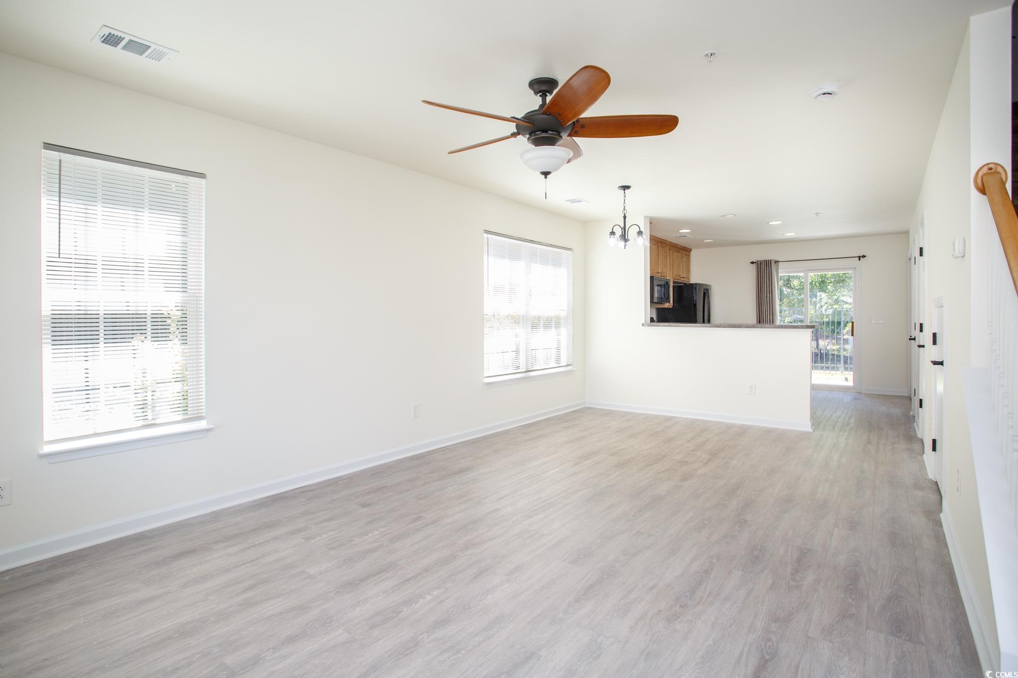 This beautiful two story, 1188sf, 2 bedroom, 2 full bath and 1/2 bath townhome in North Myrtle Beach in the coveted Merritt Park townhome complex is nestled against the Carolina woods in the southern part of Little River. All the stores and restaurants along 17 in North Myrtle Beach are nearby. You can be on the beach sunbathing within minutes (4 miles). Rt. 31 is a mile away for your convenience to Myrtle Beach and Little River. The North Myrtle Beach Park and Sports Complex is 1/2 mile away. This end unit provides two more windows on one side and affords more privacy as an end unit. Beige exterior vinyl siding with charcoal colored architectural shingles accented by black shutters provides a stark contrast. Community pool with bathrooms and spa nearby. Living room, dining room, kitchen, laundry room, pantry and 1/2 bath downstairs. A full bath in EACH of the two bedrooms upstairs is a plus for your conveniency and privacy. Unit is freshly painted with new luxurious vinyl plank flooring downstairs and in the upstairs bathrooms. New one-inch vinyl cordless blinds throughout. New Altura 52" ceiling fans with remote control in the family room and bedrooms. Hickory cabinets in the upstairs full bathrooms and in the kitchen accented with black appliances including a new microwave. Kitchen sink and bathrooms equipped with new fixtures. All new door hardware throughout. Behind the unit boasts the best view of the pond of any of the 86 units in Merritt Park. Turtles and fish are often frequented by friendly visitors such as mallard ducks, geese and an occasional great blue heron for your nature viewing pleasure. HOA fee includes water, sewer and trash service, basic cable, landscaping and pest control.