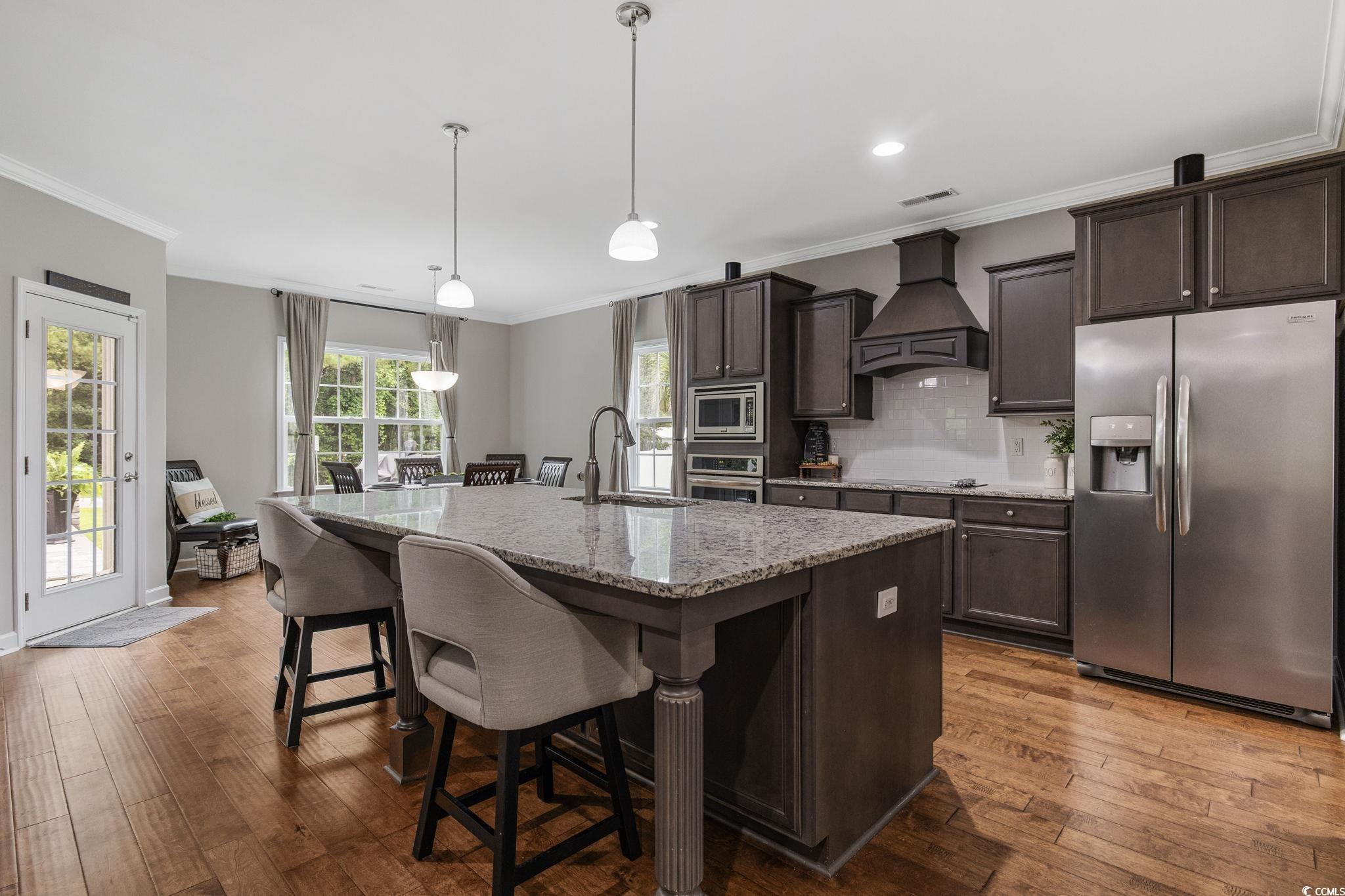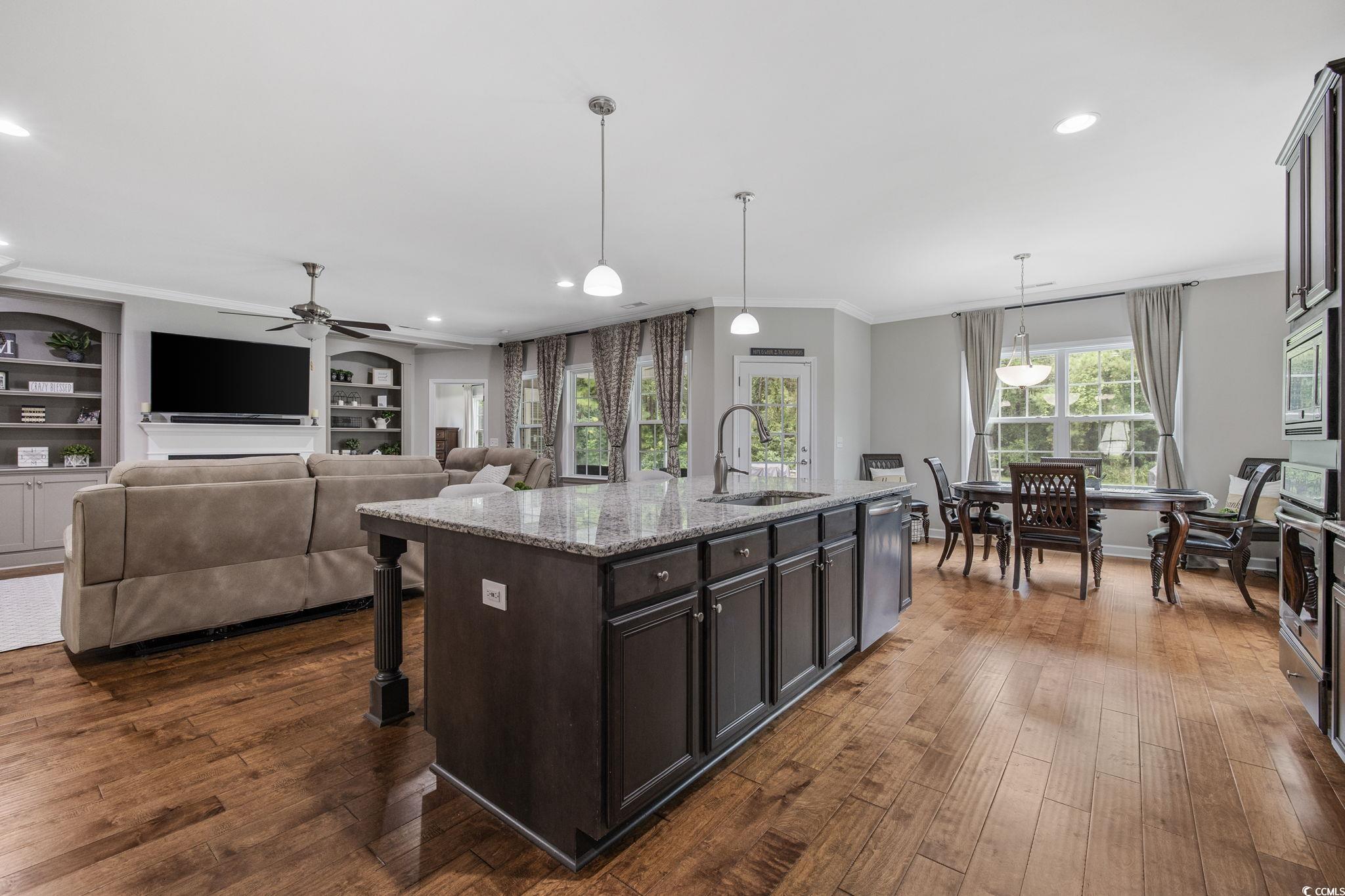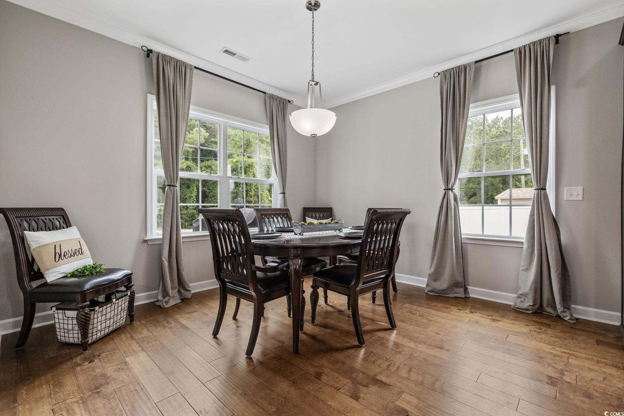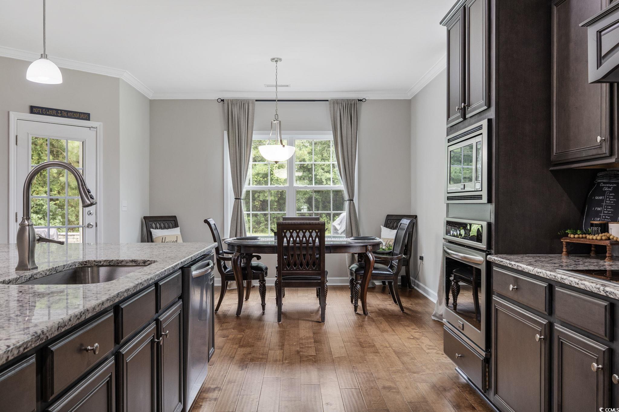 Welcome to 116 Belclare Way, a beautifully maintained 4-bedroom, 2-bath home with a LOW HOA. Located in the desirable Arbor Glen community, this spacious residence offers an attached two-car garage, a formal dining room perfect for entertaining, plenty of space for the family. Inside, you’ll find hardwood floors throughout the main living spaces, a living room with custom built-ins and a fireplace, and a kitchen with granite countertops, stainless steel appliances, a range over the flat-top stove, a large double-door refrigerator, an island with a breakfast bar, and an eat-in breakfast area. A door from the dining area leads out to the patio for easy indoor-outdoor living. The primary suite boasts a tray ceiling, walk-in closet, a private door leading to the patio, and an ensuite bath with a custom tile shower and glass doors. One of the additional bedrooms features a custom trim wall, while another bath offers two sinks, a vanity, and a tub/shower combo. The separate laundry room is equipped with ample cabinet space and washer/dryer hookups. Outdoor features include an enclosed back porch where you can enjoy natural light year-round offering a peaceful spot to relax, a custom stone patio with views of the large backyard that backs up to a lush forest and an extra-large backyard. Arbor Glen residents also enjoy access to a refreshing community pool, making it easy to enjoy the warm Carolina days. Don’t miss your chance to make this charming, feature-rich home yours!