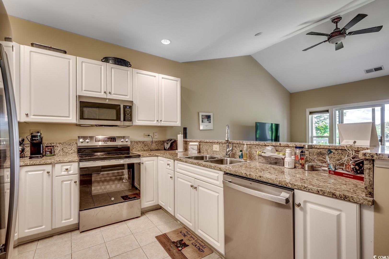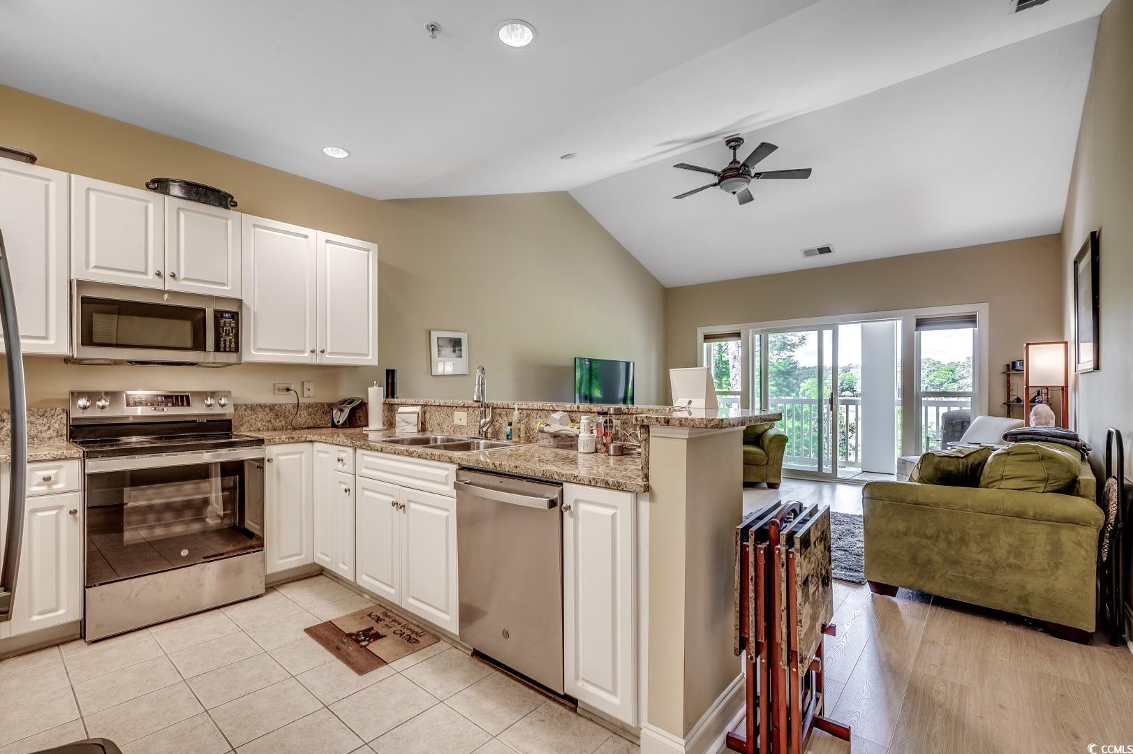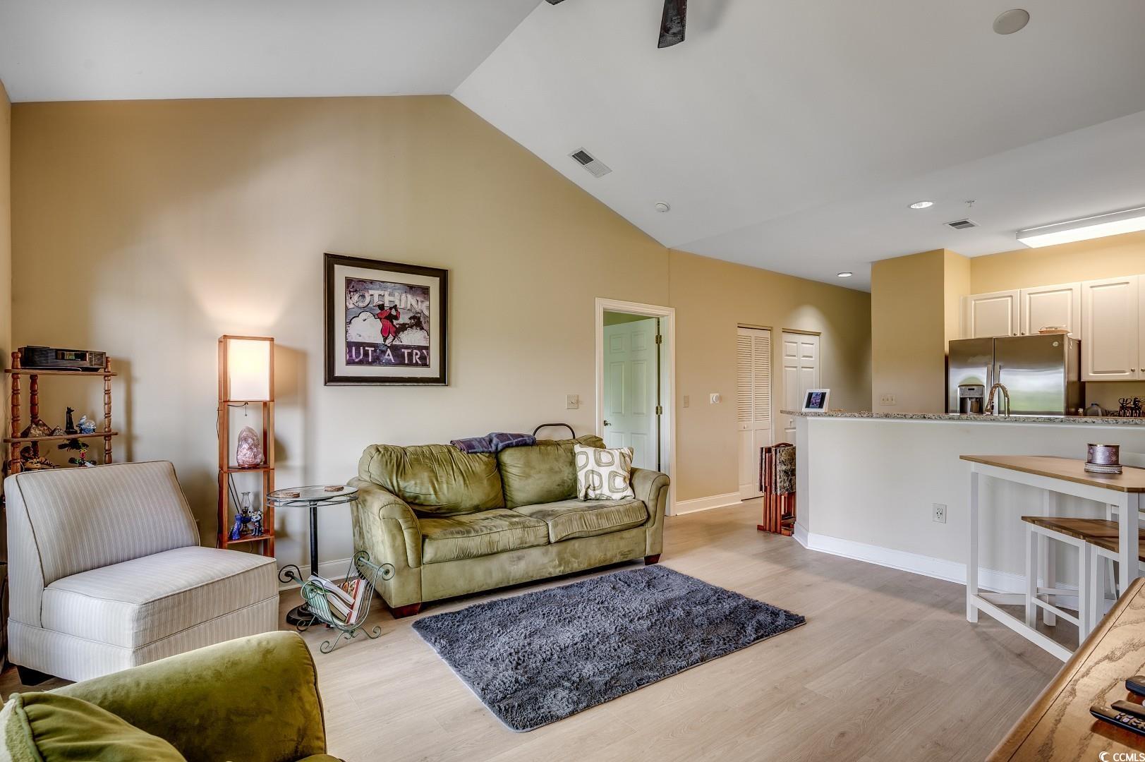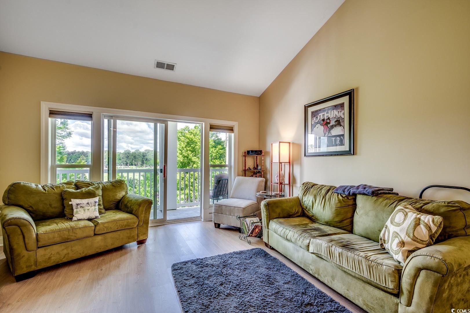Welcome to this stunning 2-bedroom, 2-bath condo featuring an open-concept floor plan with soaring vaulted ceilings, creating a spacious and airy feel. The modern kitchen boasts elegant white cabinets, sleek granite countertops, and ample storage, perfect for both everyday living and entertaining. Natural light floods the living space and master suite, highlighting the breathtaking views from your private balcony overlooking the golf course and serene pond. Enjoy the perfect blend of comfort and style in this beautifully designed condo. Schedule your showing today!