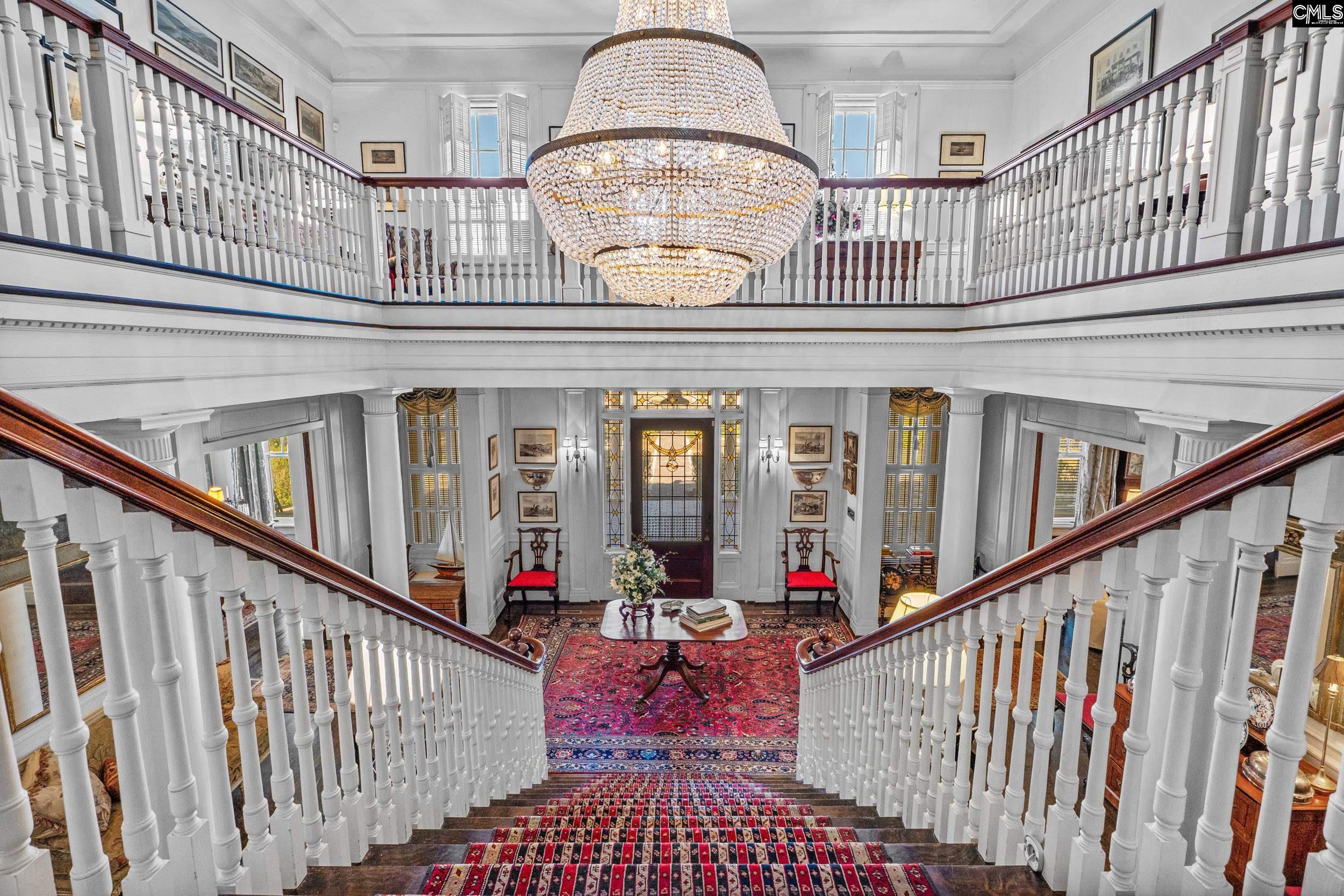 Introducing the historic John T. Stevens House, Circa 1918. This distinguished 5 bedroom, 3.5 bath, brick Colonial Revival, is located in the heart of Historic Kershaw, SC. Nestled on more than an acre, with an in-ground pool, detached garage and magnificent gardens. The house was originally built for prominent businessman John T. Stevens, but is also referred to as the 'Dr. Blackwell House', who has been the owner since the early 1970's. Most of the signature design elements remain intact, including leaded glass features, elaborate plaster moldings, quarter-sawn oak floors with teakwood borders, a fireplace in almost every room, grand tuscan columns and porte-cochere. There is even the original central vacuum system installed in the early 1920's! Inside, the main level showcases a grand foyer and sweeping staircase crowned by a crystal chandelier. Formal entertaining spaces include double parlors on each side of the entry, a large dining room, a cozy sitting room located just off the kitchen, and sunroom. The large eat-in kitchen has today's modern conveniences including Thermador appliances, gas cooktop and double ovens, and separate pantry. The primary suite is on the main floor and includes the main sleeping room plus a 2nd bedroom room that is connected by a dressing room and bath in between. This room could serve as a nursery, office, or even a 6th bedroom. The split staircase leads to 4 generously sized bedrooms, each with a shared jack-and-jill style bath. Several of the rooms have access to the the upper outdoor balconies overlooking the land. The gardens, originally designed by a New York landscape firm responsible for several notable Charlotte estates, feature arbors heavy with muscadines, native plantings, and pathways that reflect the estate’s longstanding beauty. A pool, positioned within the footprint of the original formal gardens, remains on the property and offers an opportunity to be refinished. (Currently empty and needs a new liner and inspection.). With its rich provenance, preserved architectural details, and timeless gardens, the John T. Stevens House stands as one of Kershaw’s most important and cherished historic residences. Di