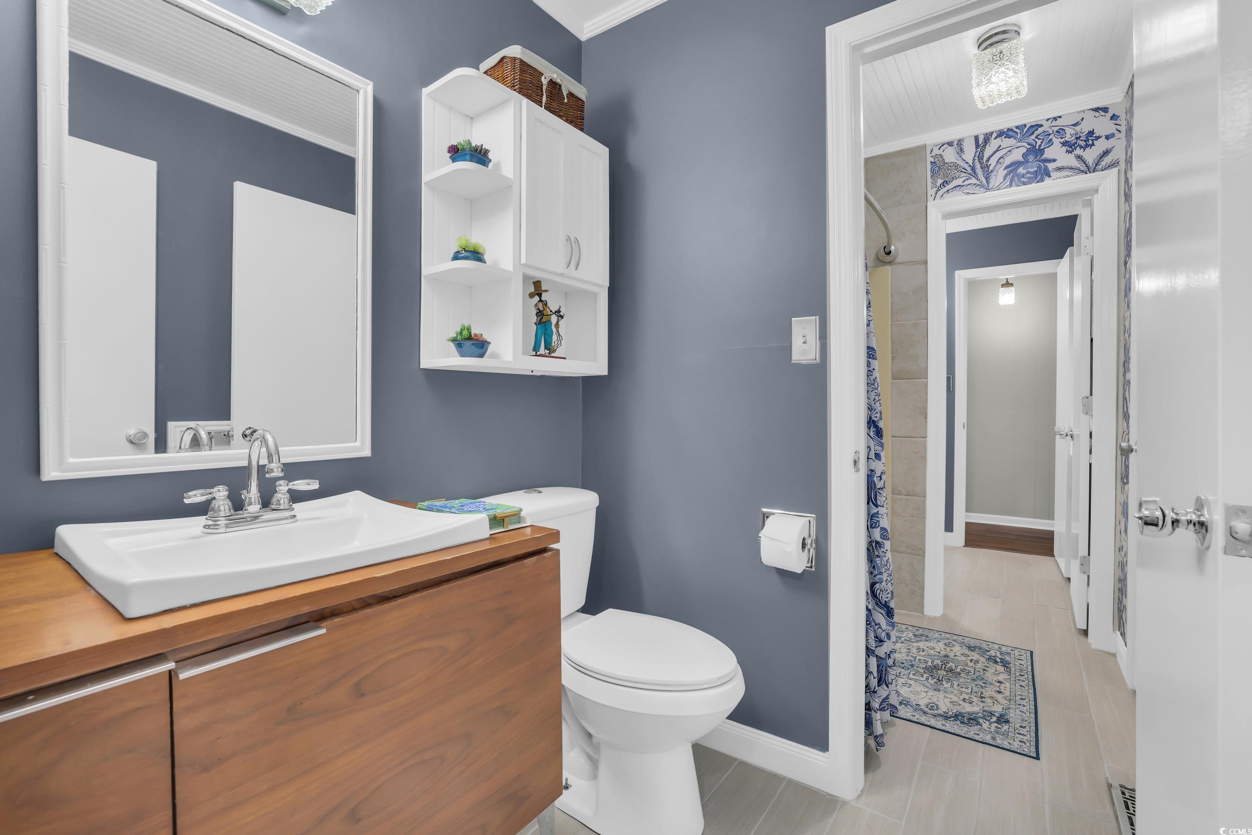 It’s All About That Space: Located on three combined lots totaling more than an acre in the heart of Pawleys Island’s Hagley Estates, this sprawling single-level brick home blends mid-century charm with modern updates and plenty of room to live, work, and play. With three bedrooms, two and a half baths, expansive views of the Founders Club golf course, and a standing-seam metal roof that adds character and underscores the home’s eclectic style, the property feels private and tucked into a natural setting surrounded by mature indigenous trees. Step inside and you’ll feel the retro influence right away. The foyer, with its slate flooring and skylight, opens to the dining room and a sunroom filled with floor-to-ceiling windows. The home’s sunken living room—a true seventies classic “conversation pit”—is the standout. With exposed beams, a brick fireplace and beam mantel, and large windows that pour in natural light, it’s a space designed for relaxed, communal gatherings that never go out of style. Sliding doors here open to a brick patio overlooking the backyard and golf course beyond. The kitchen offers a balance of style and function, with granite countertops, subway tile accented with detail, white cabinetry, and a built-in wine cooler. A breakfast nook flows easily into the sunroom, where panoramic golf views and year-round comfort make it the perfect spot for both everyday living and entertaining. The primary suite serves as a private retreat with sliding doors to a brick patio, a walk-in closet with shelving, and a bath with a walk-in shower, floating vanity, and linen storage. Two guest rooms with oversized casement windows share a Jack-and-Jill bath with updated vanities and a shower/tub combination, creating a thoughtful layout for family or visitors. A spacious laundry and mudroom with utility sink, cabinetry, and a half bath connects conveniently to the two-car garage, where a climatized office has been neatly tucked into one corner—perfect for working from home, hobbies, or extra storage. The true highlight of this property is the land itself. With three combined parcels, there’s space to dream big—whether you envision a garden, workshop, guest cottage, or simply extra room to park a boat or RV. A detached shed adds to the property’s flexibility and function. Life in Hagley Estates is laid-back and unhurried. With a voluntary POA, residents enjoy freedom to use their property their way, along with community access to the Waccamaw River boat landing and easy connections to the Intracoastal Waterway and the Atlantic. Add in quick access to shops, restaurants, and Pawleys Island beaches, and this home offers both character and convenience in one of the area’s most beloved neighborhoods.